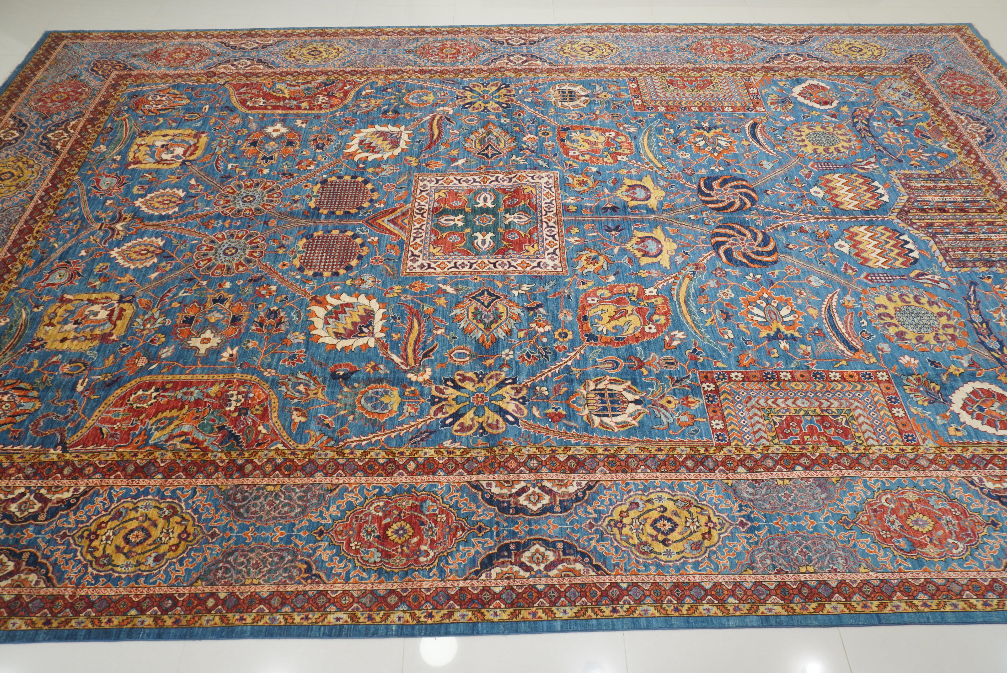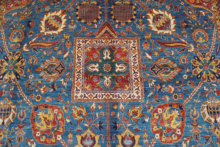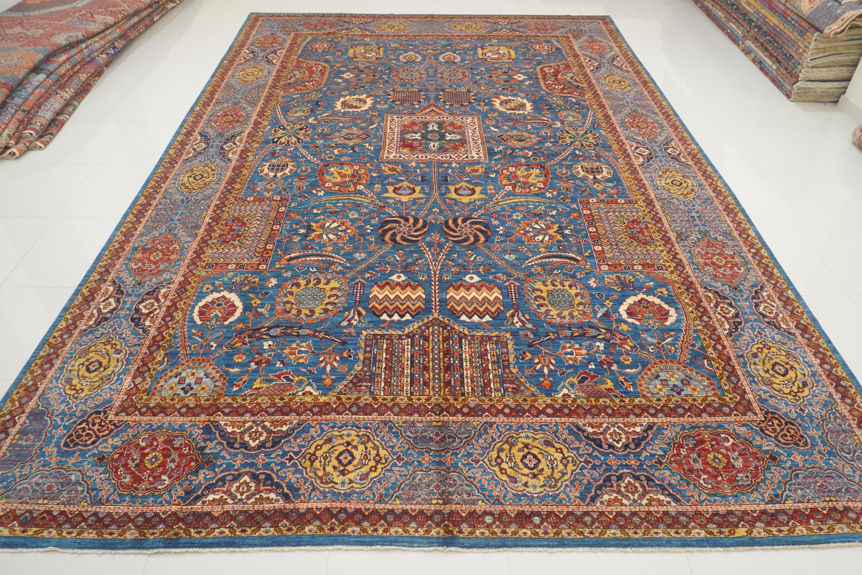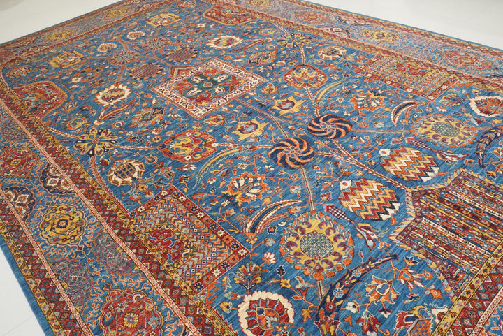 12x18 Blue Mughal Afghan Hand knotted Oriental Rug
