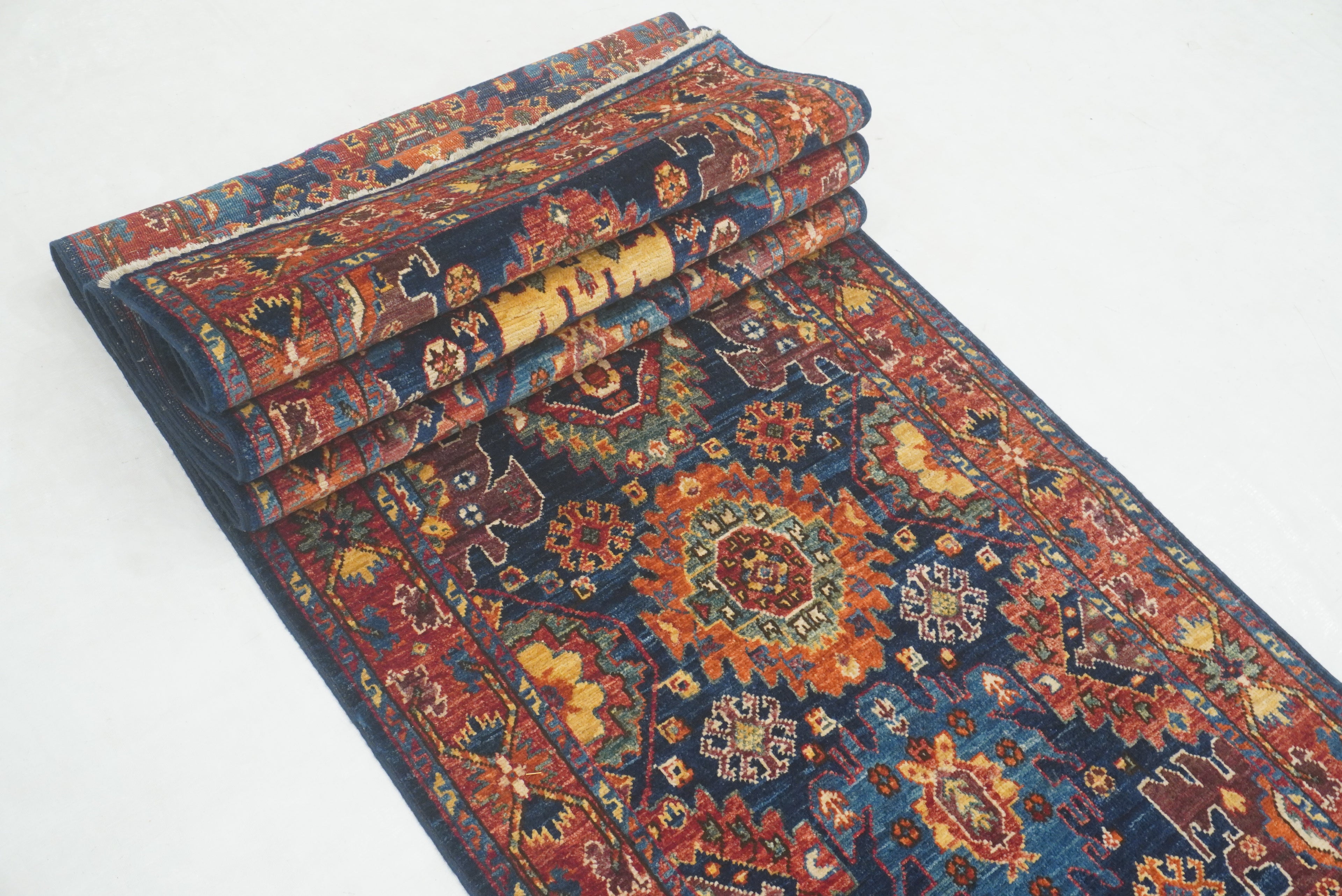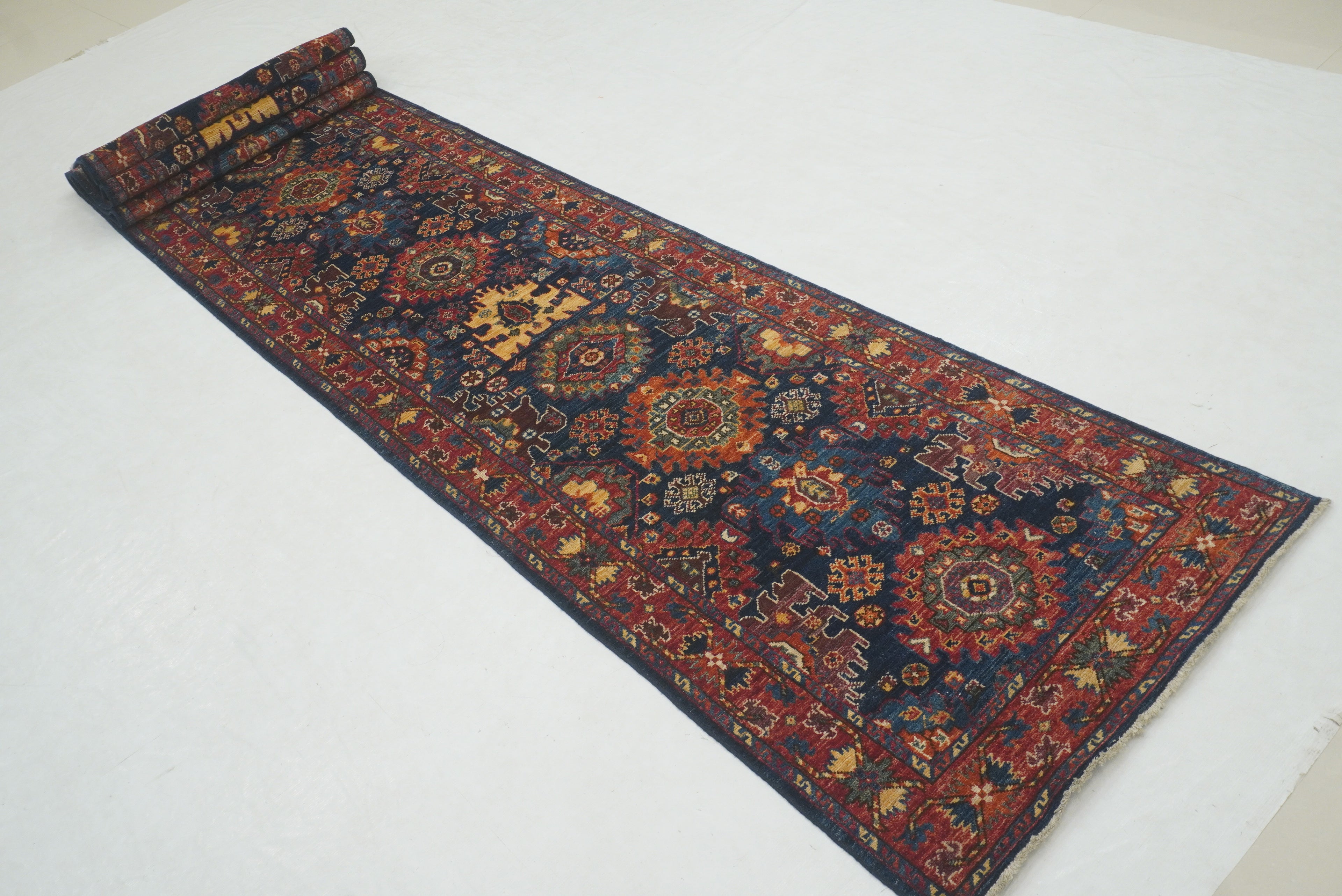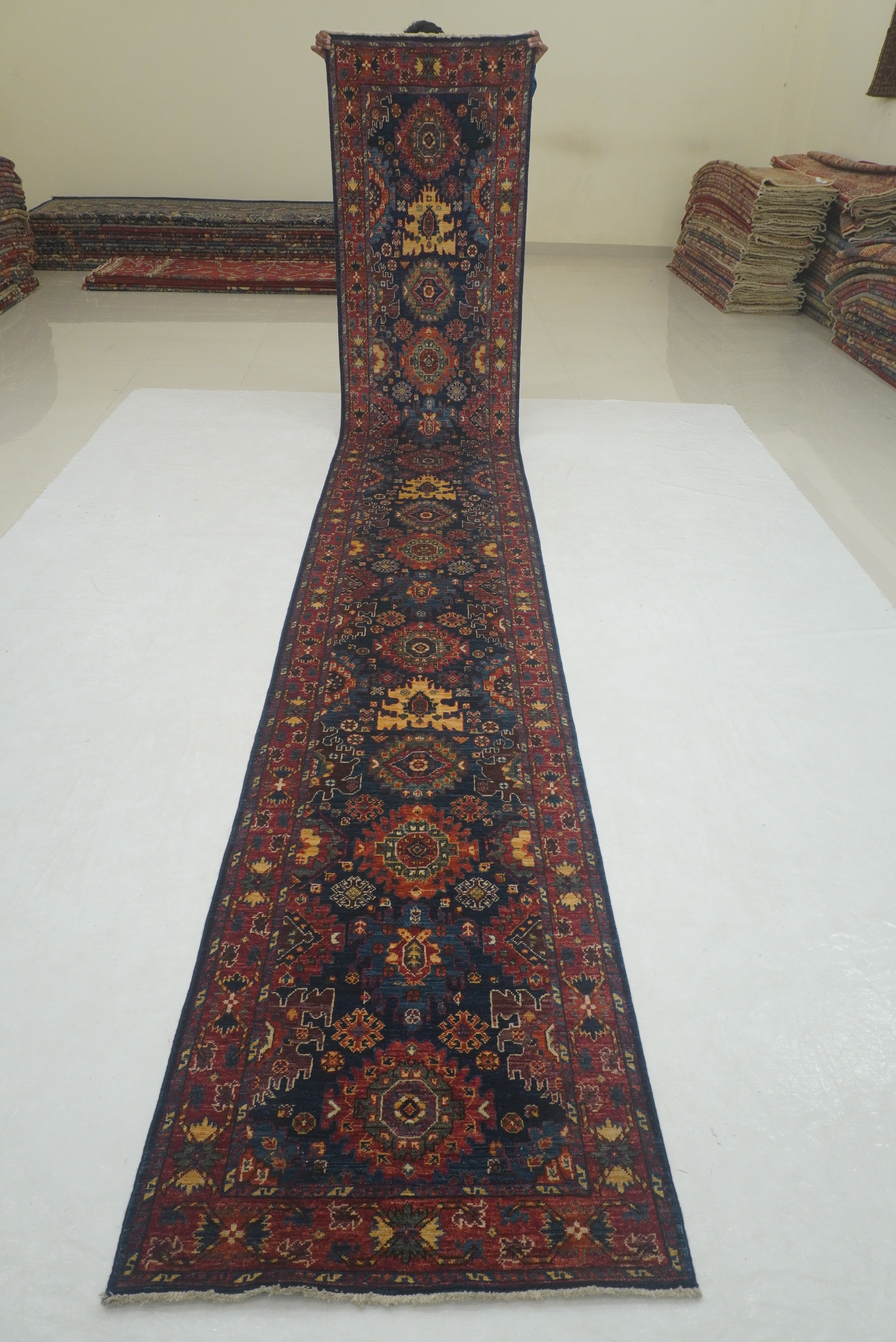 17 ft Navy Blue Baluch Afghan Hand Knotted Oriental Long Runner Rug