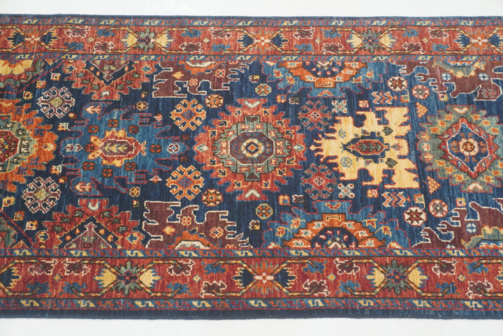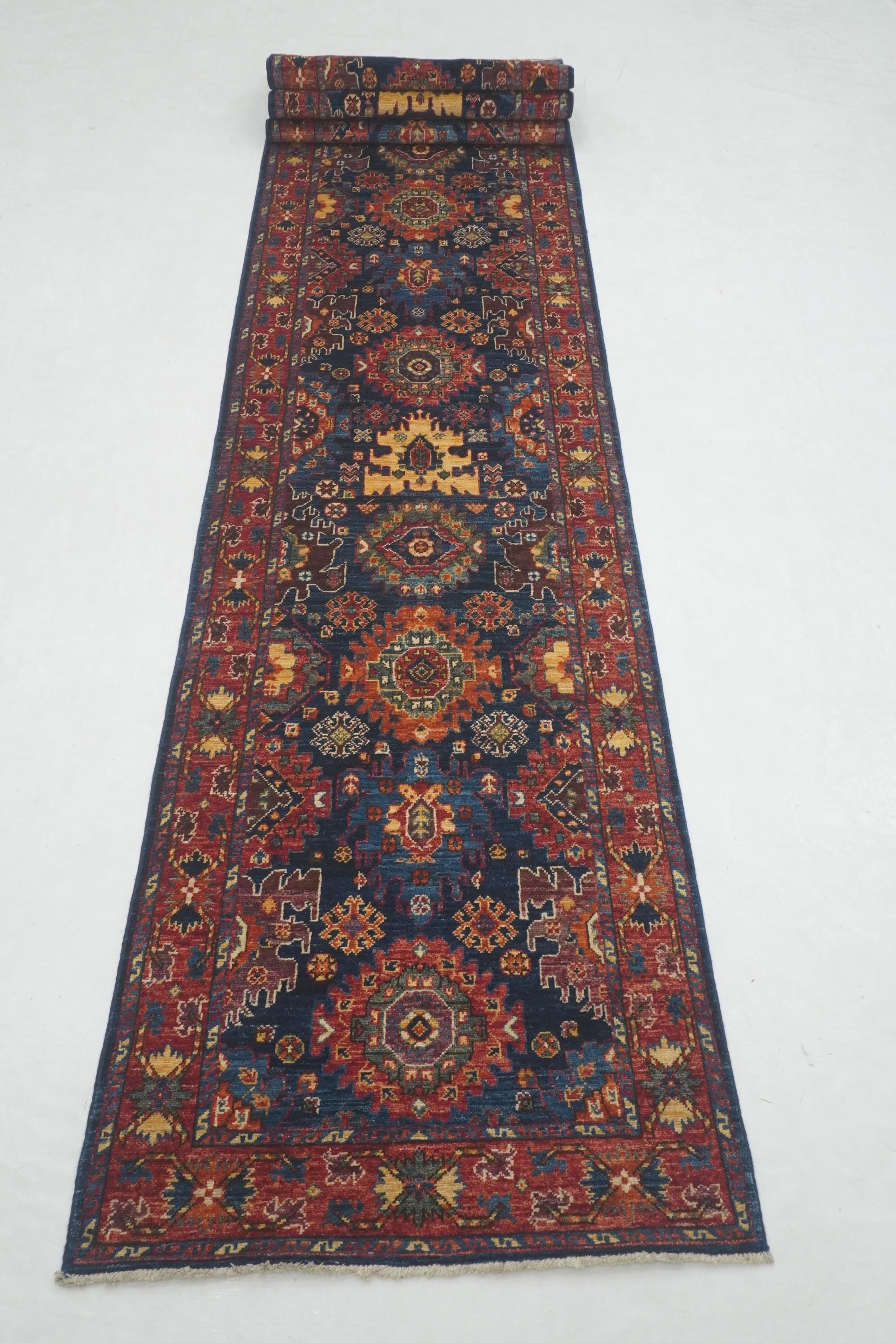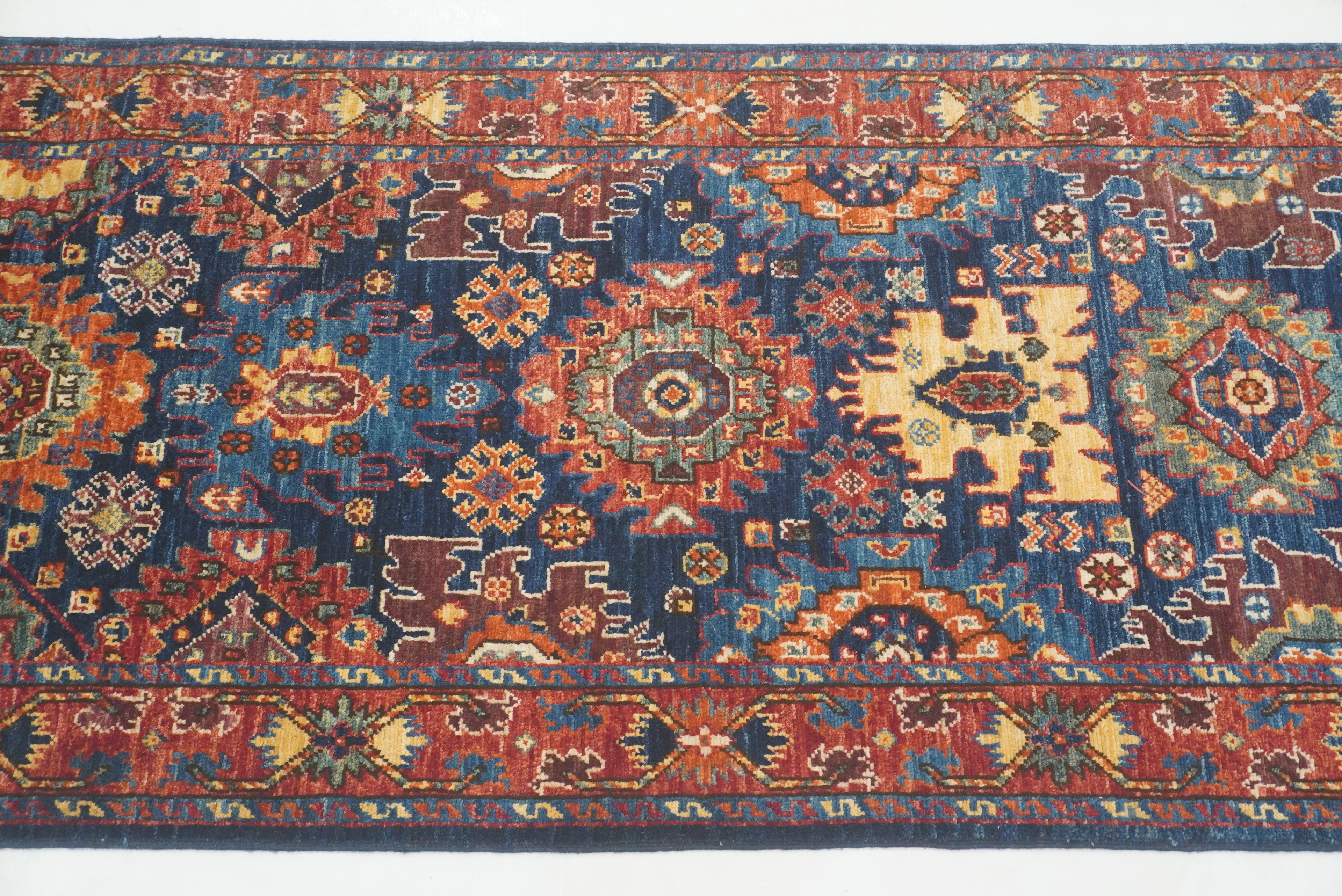 17 ft Navy Blue Baluch Afghan Hand Knotted Oriental Long Runner Rug