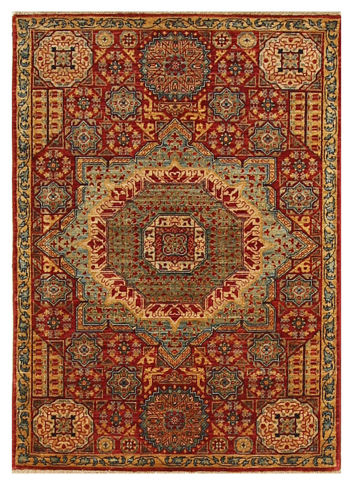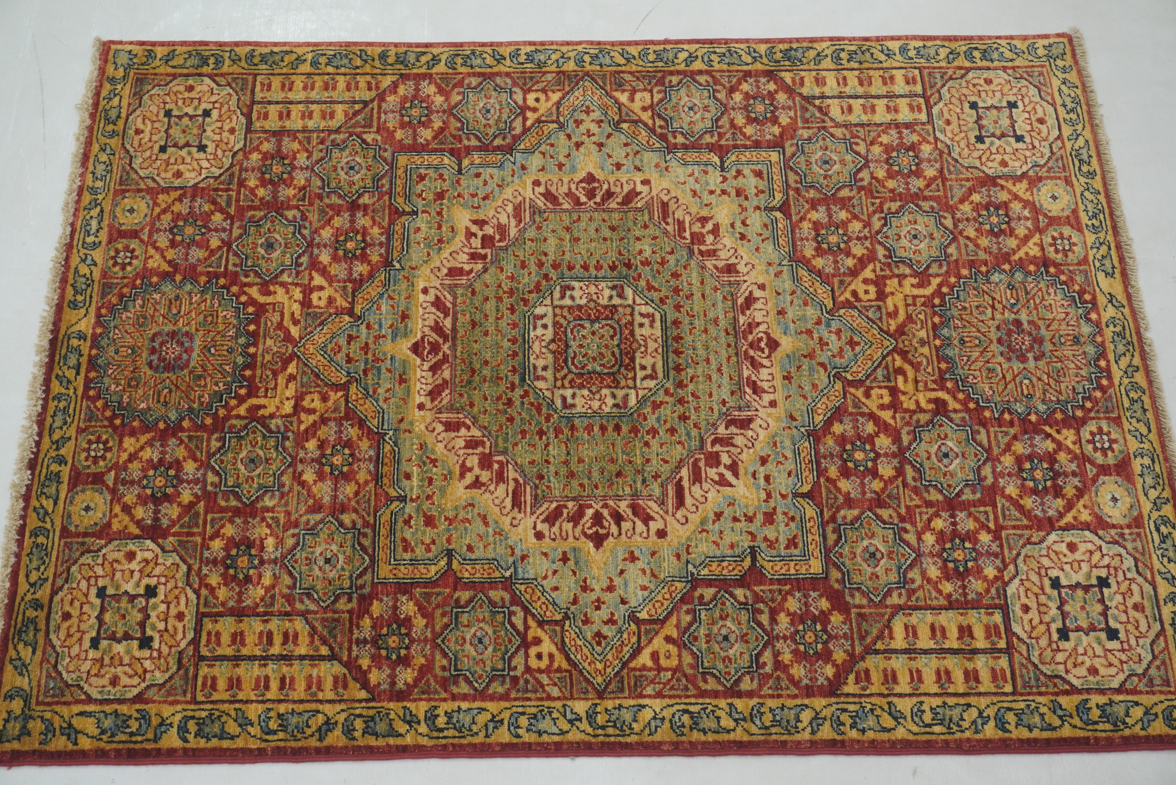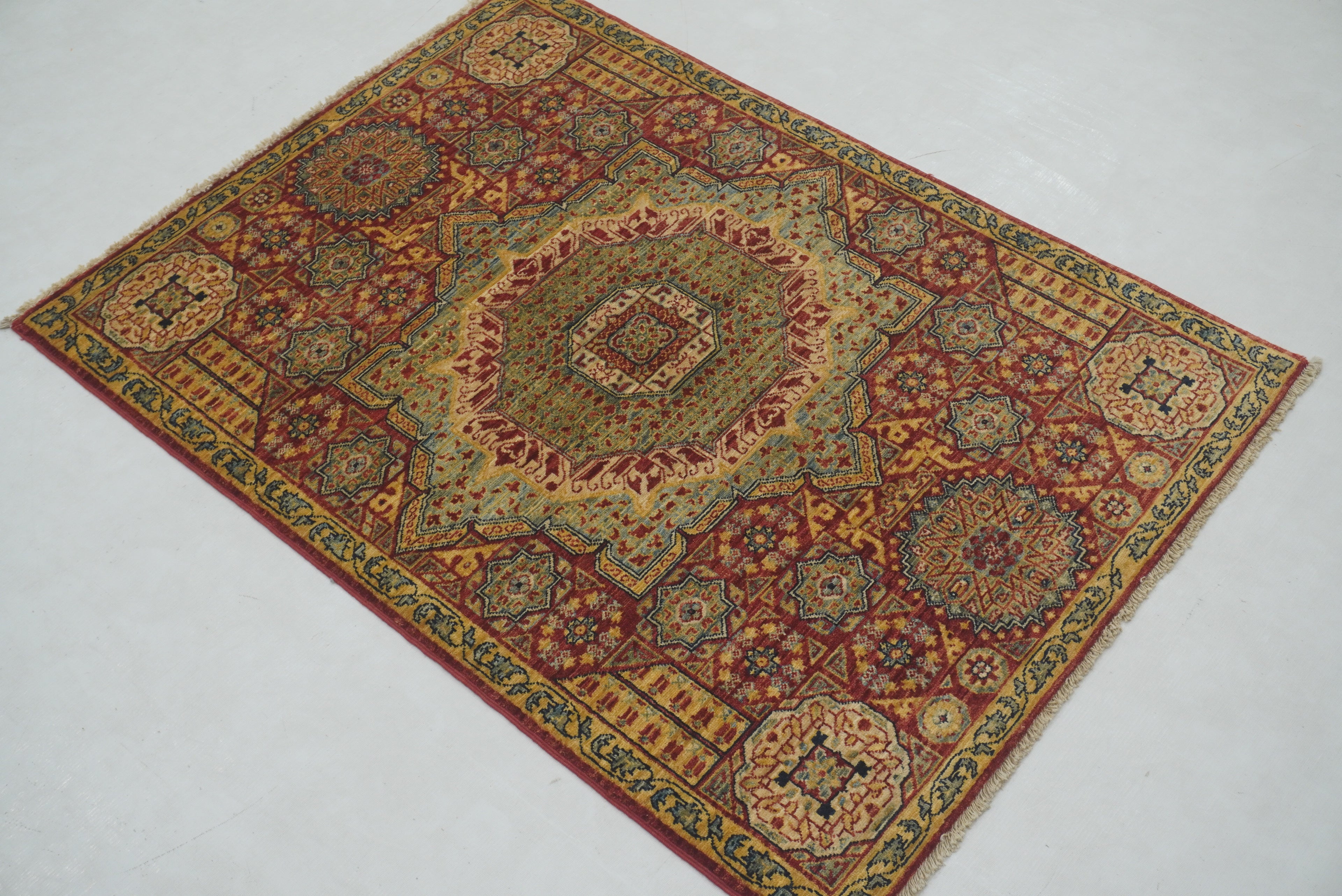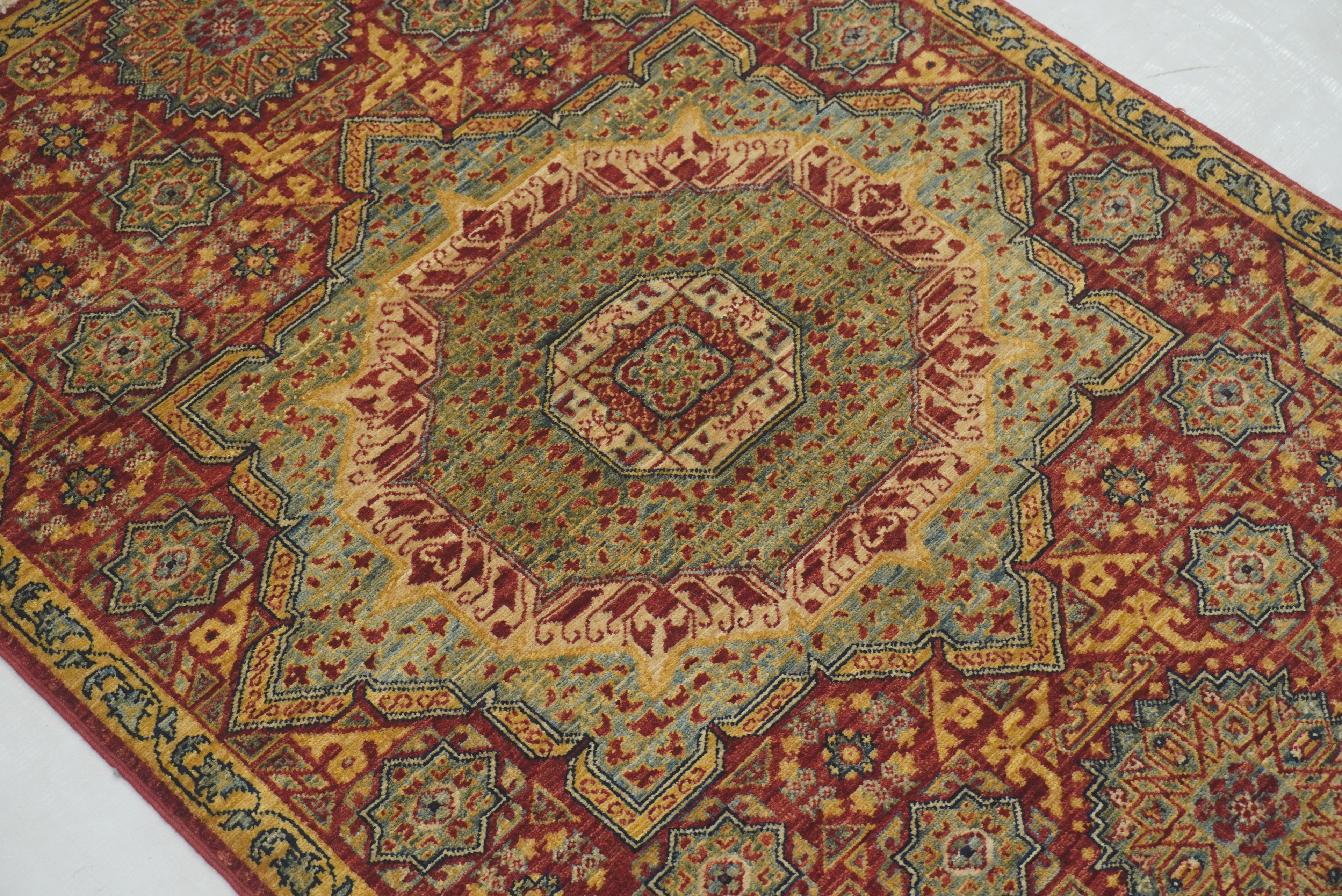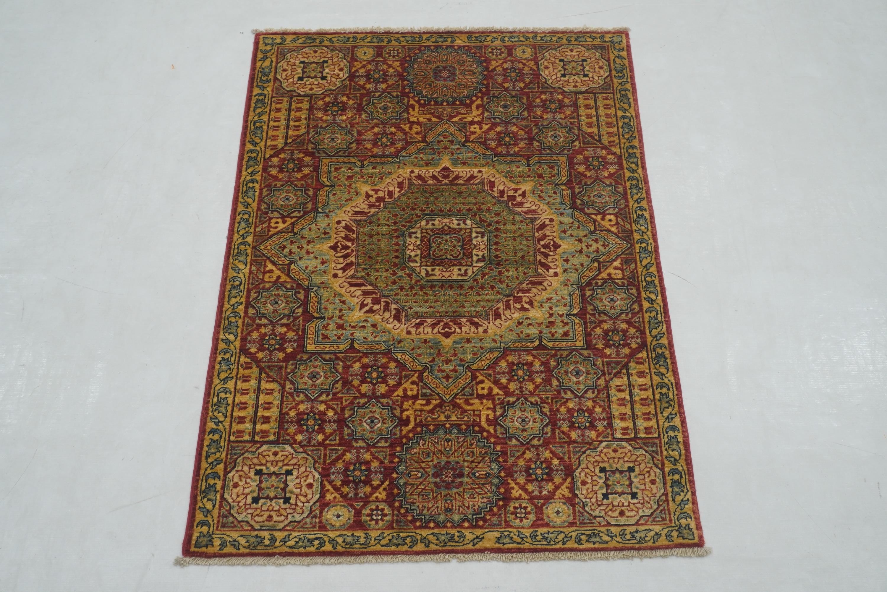 2'10"x4' Red Mamluk Hand knotted Medallion Turkish Rug