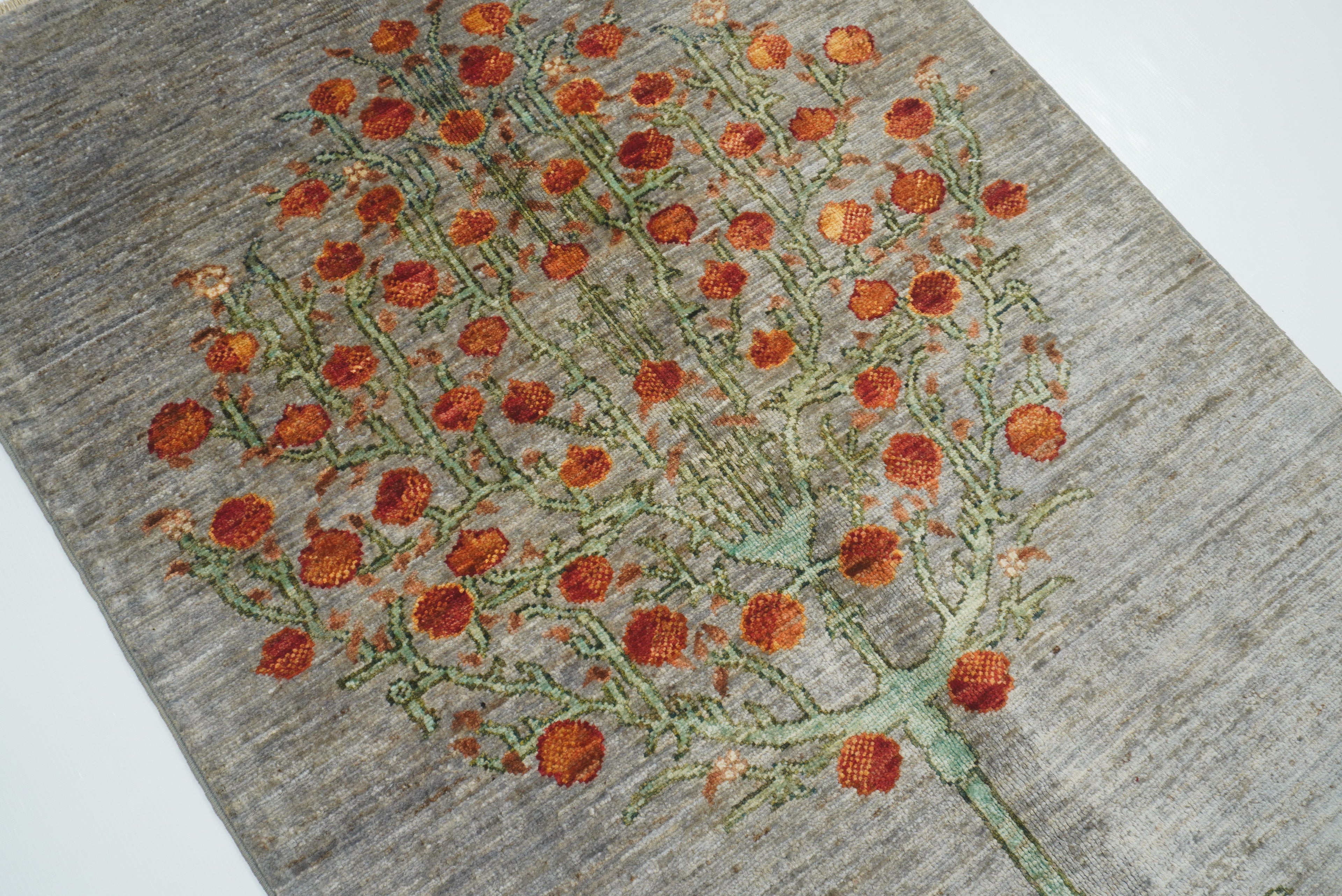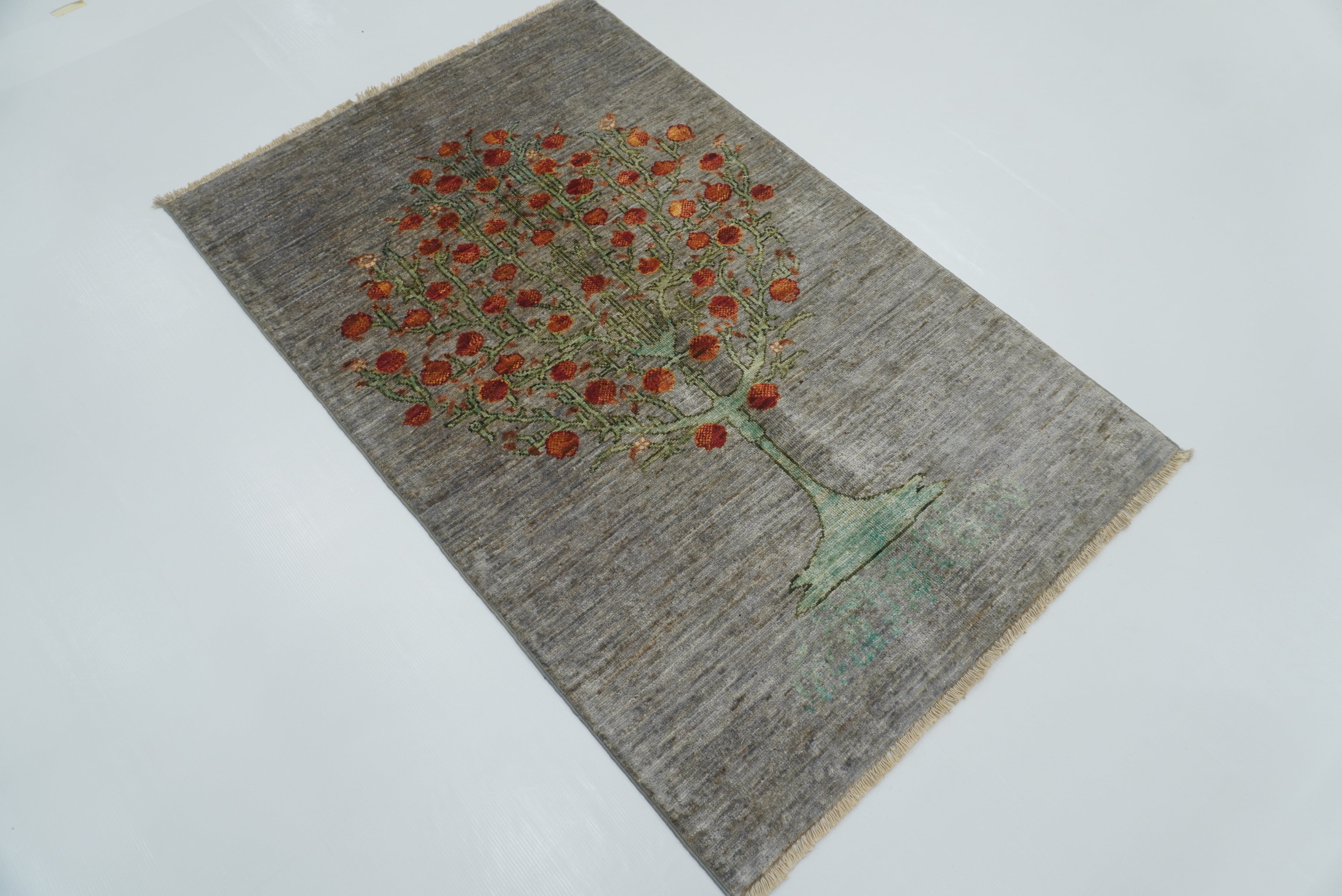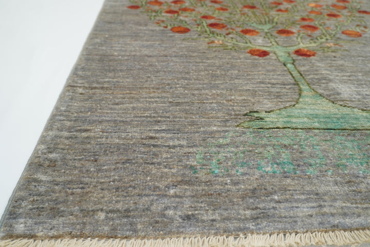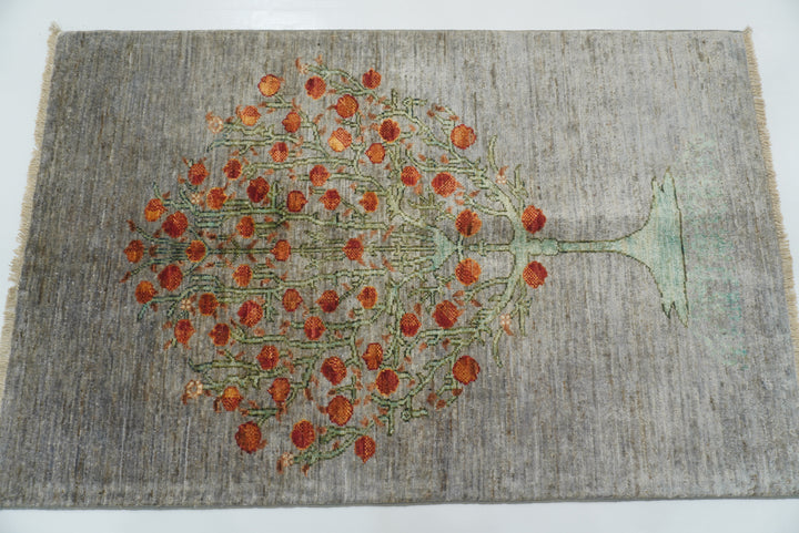 2'10"x4'5" Gray Gabbeh Afghan Tree of Life Hand-Knotted Rug