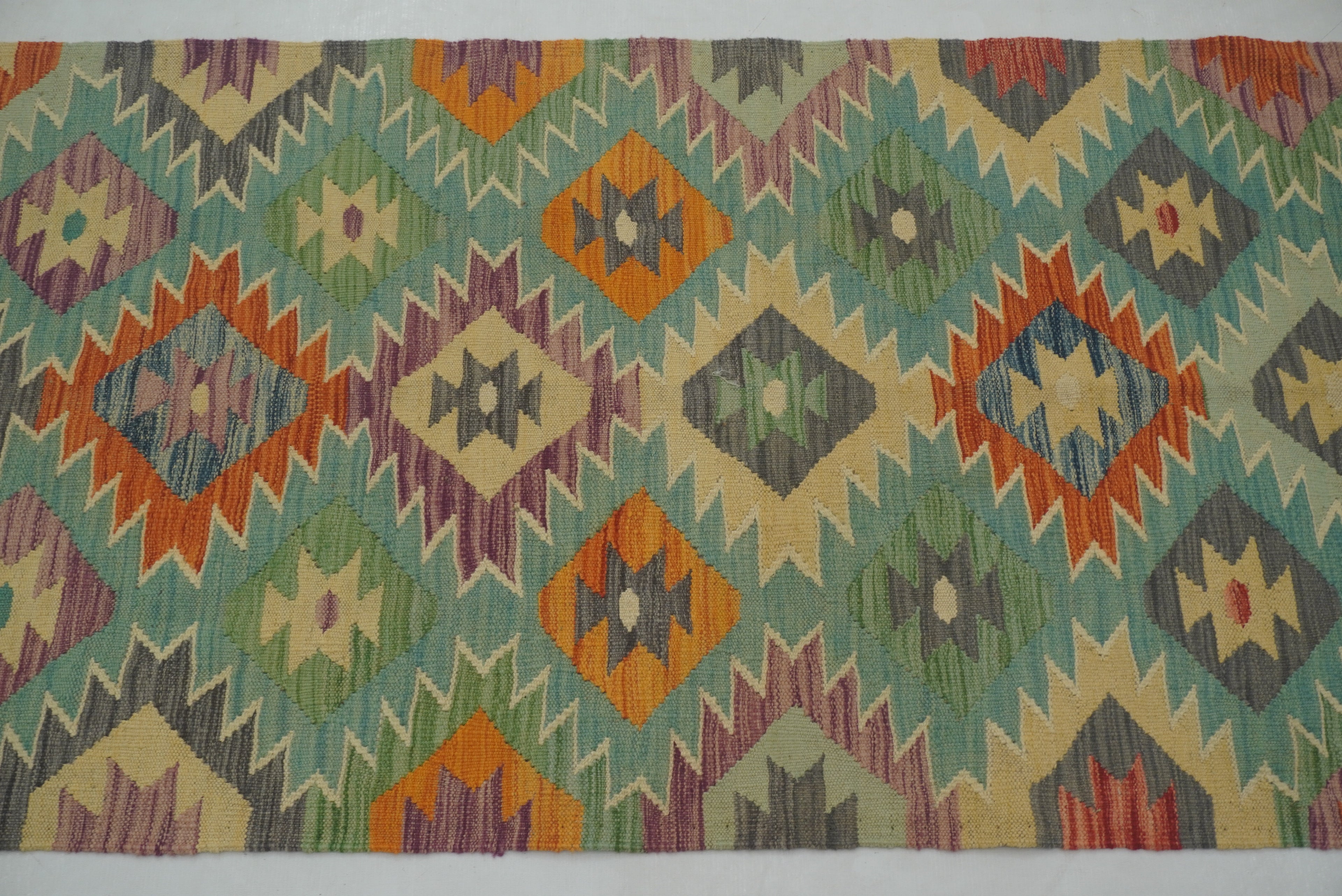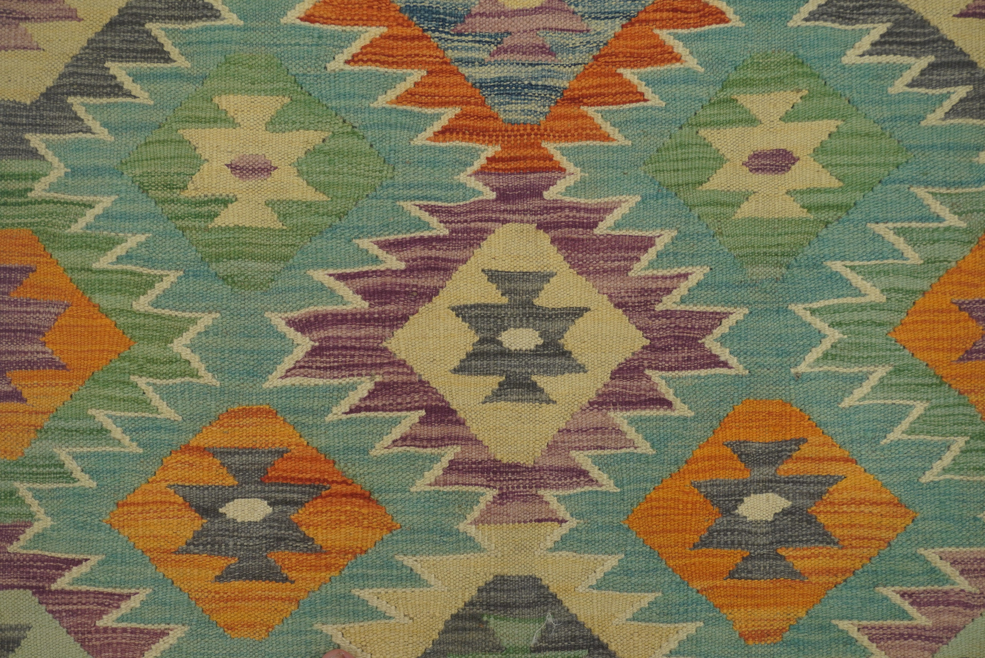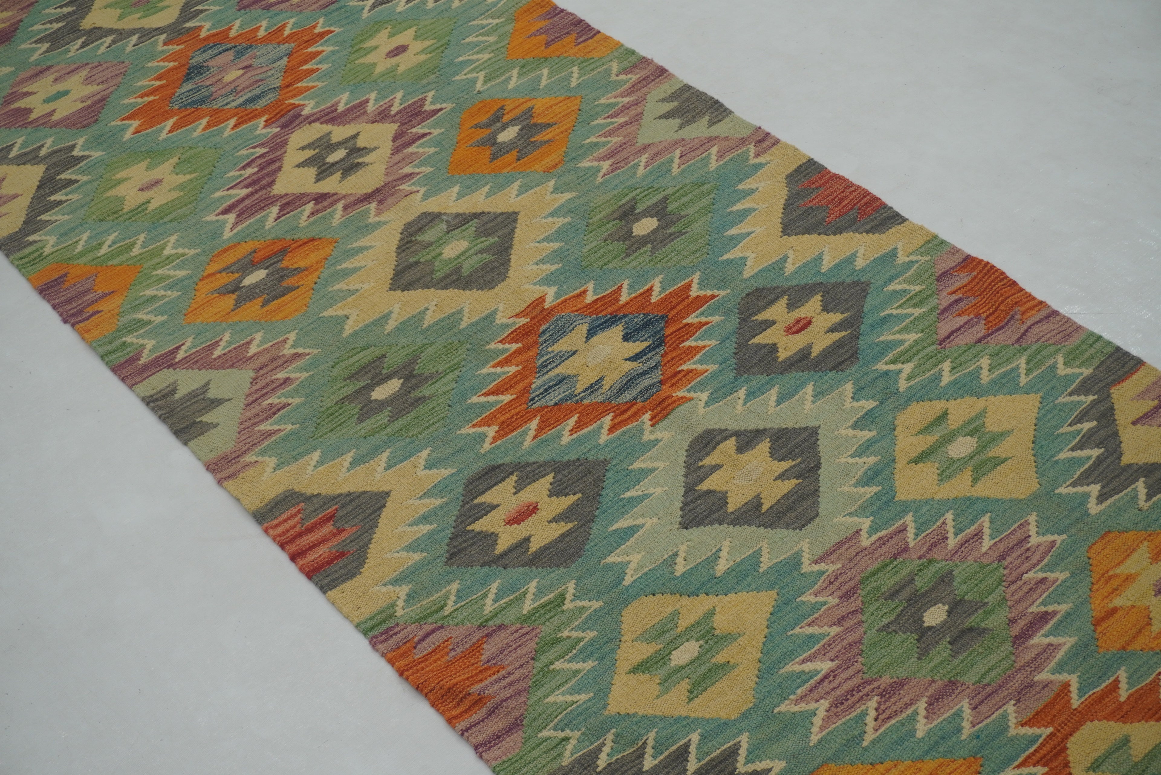 2'10"x9'7" Blue Kilim Afghan Hand woven Runner Rug