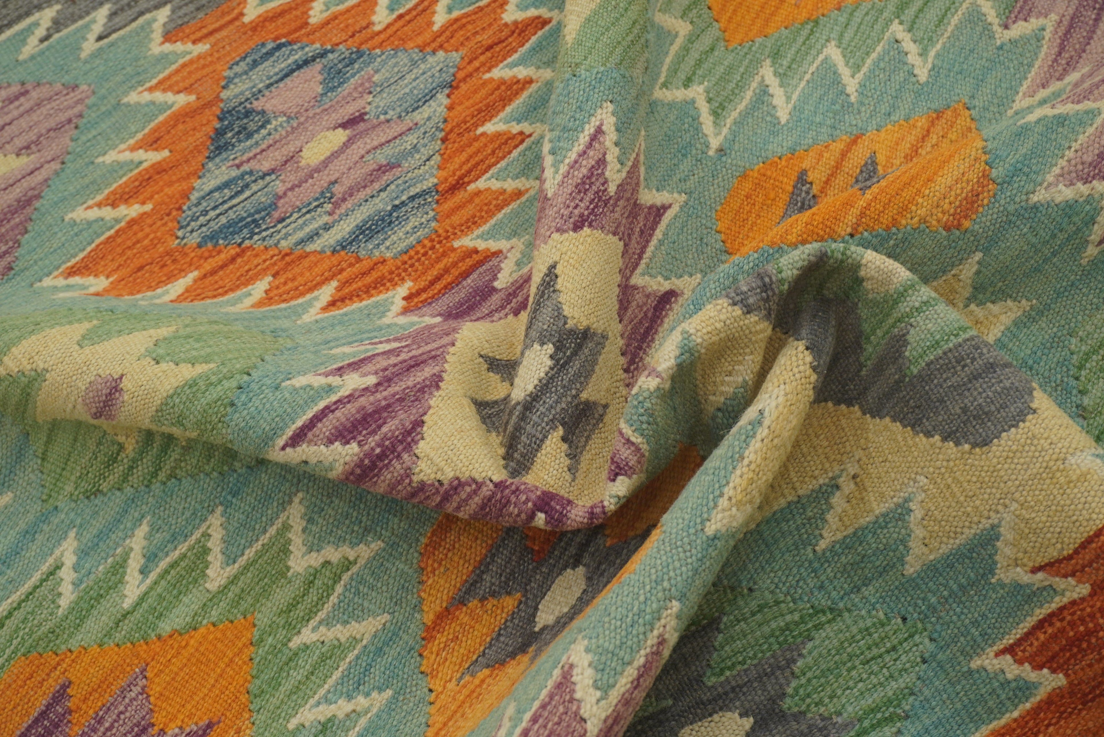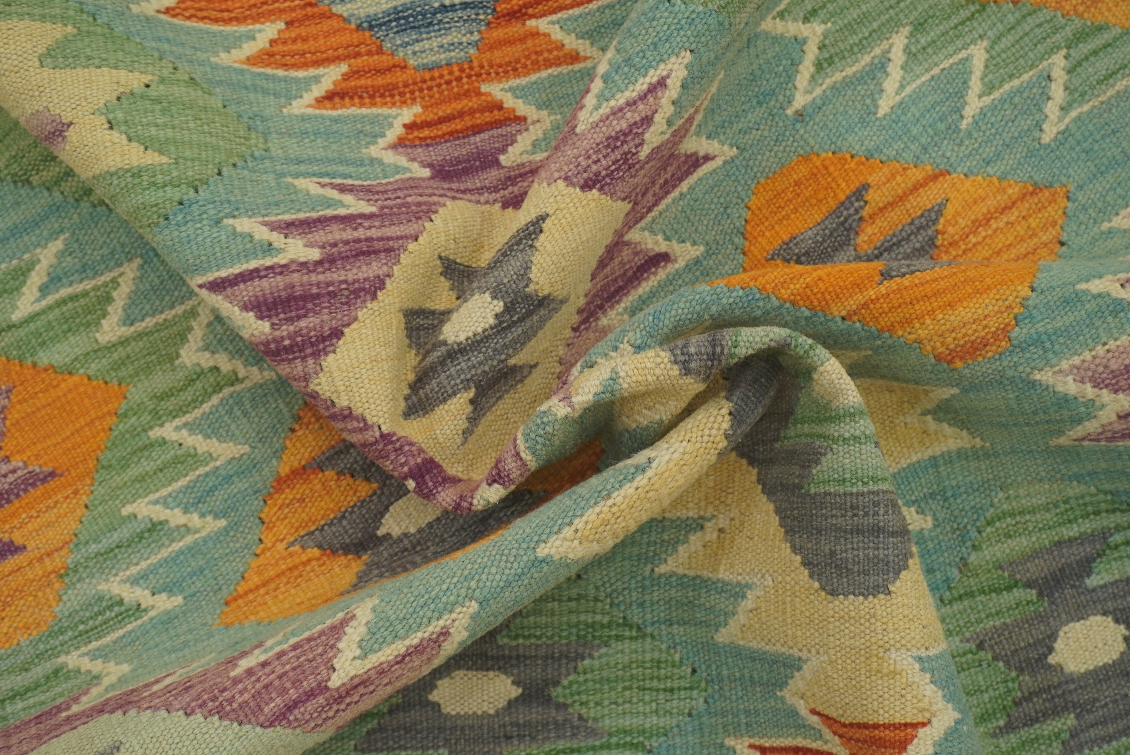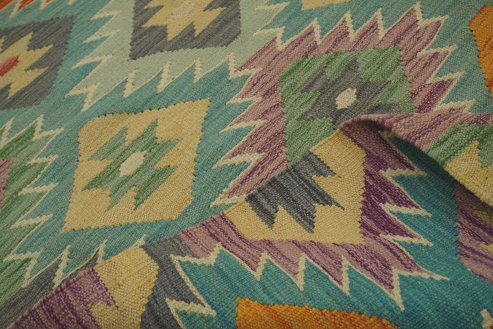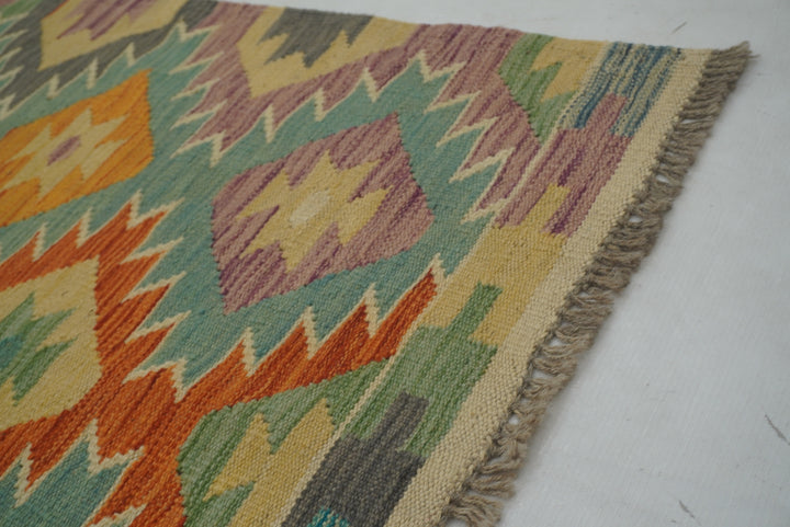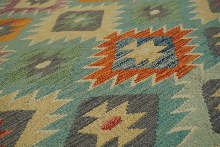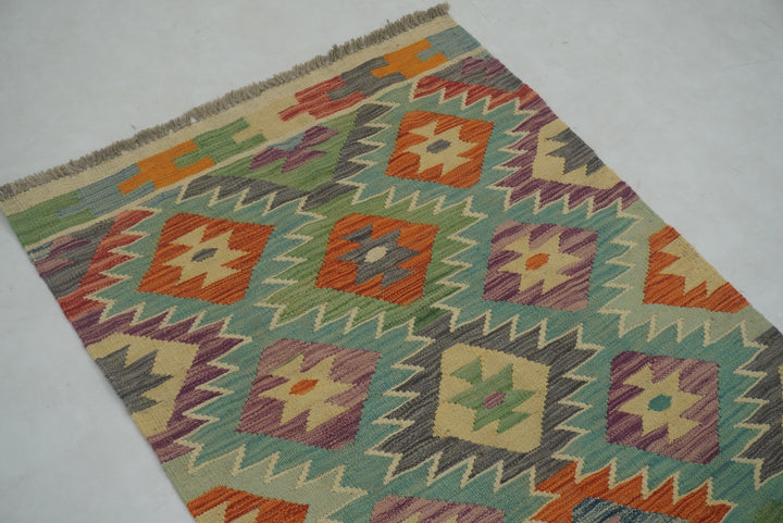 2'10"x9'7" Blue Kilim Afghan Hand woven Runner Rug