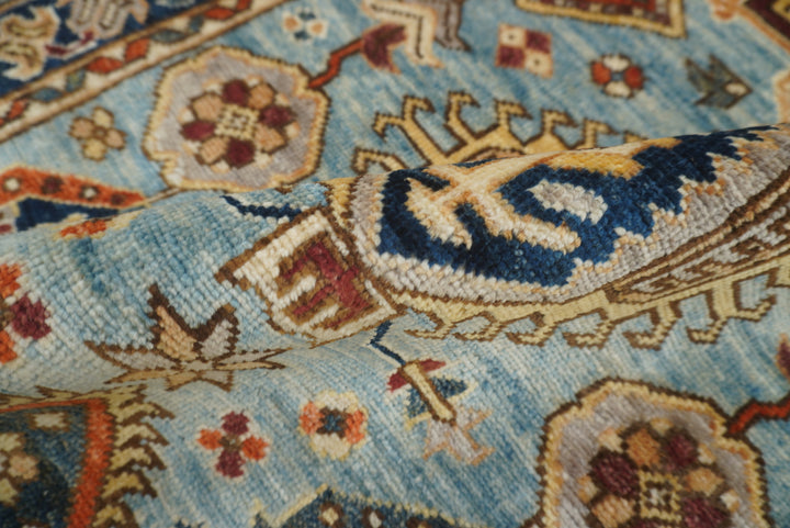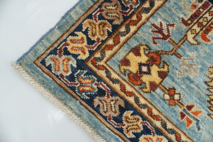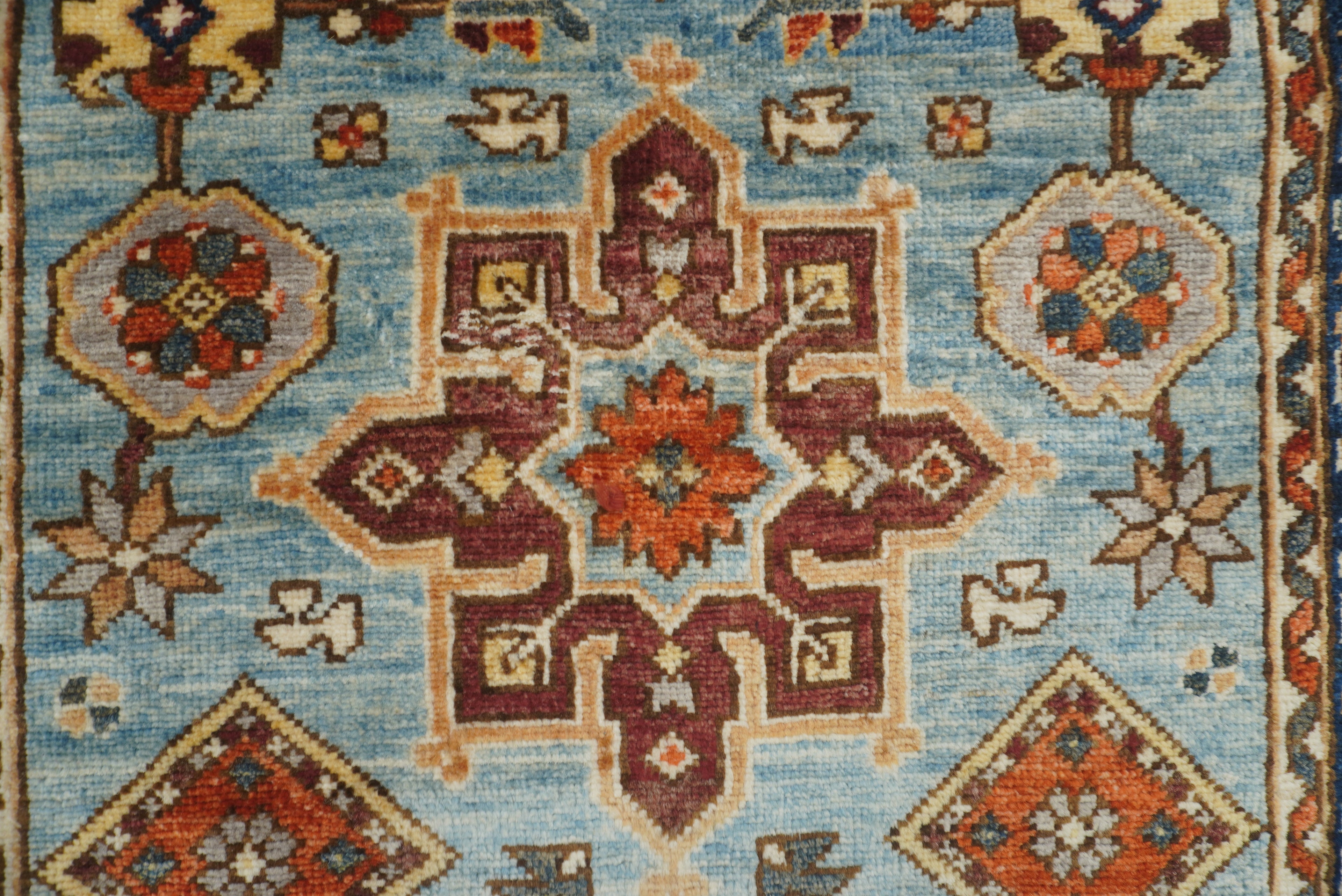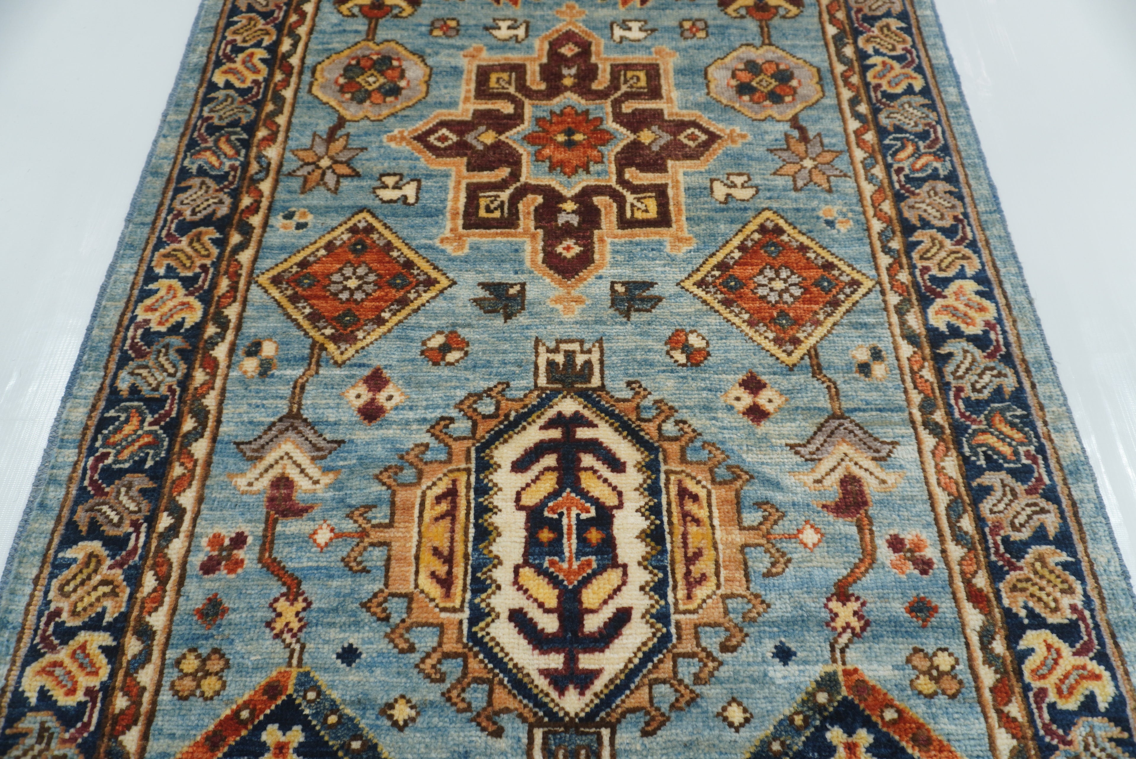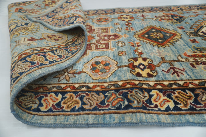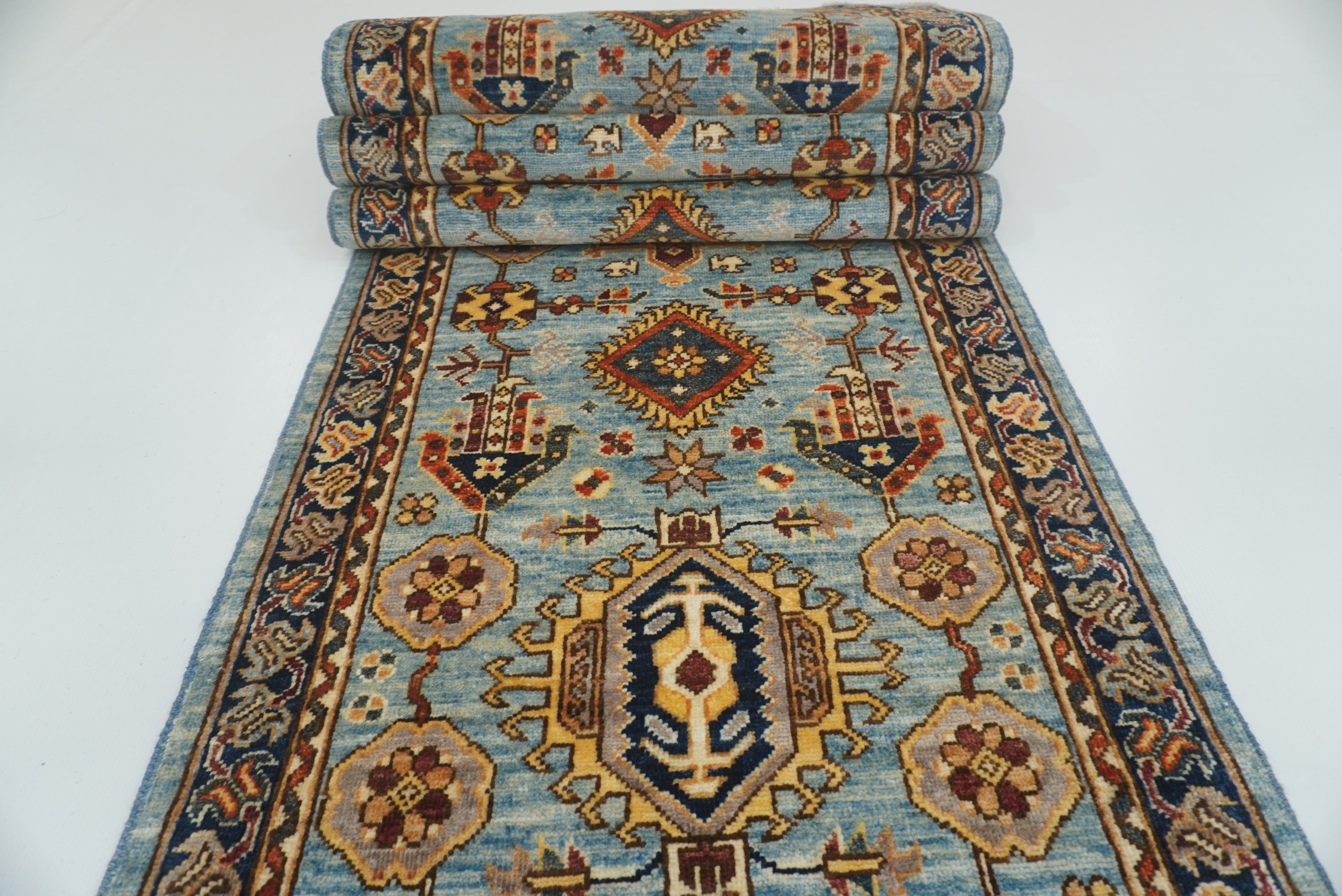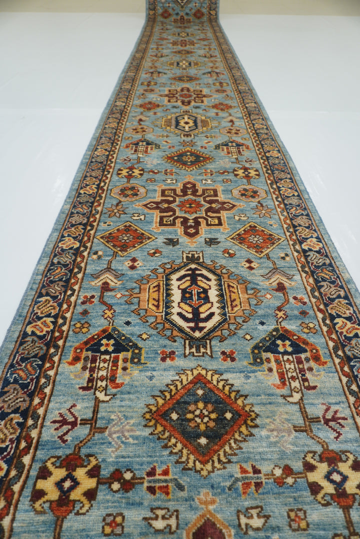 23 ft Blue Karaja Afghan Hand knotted Long Runner Rug