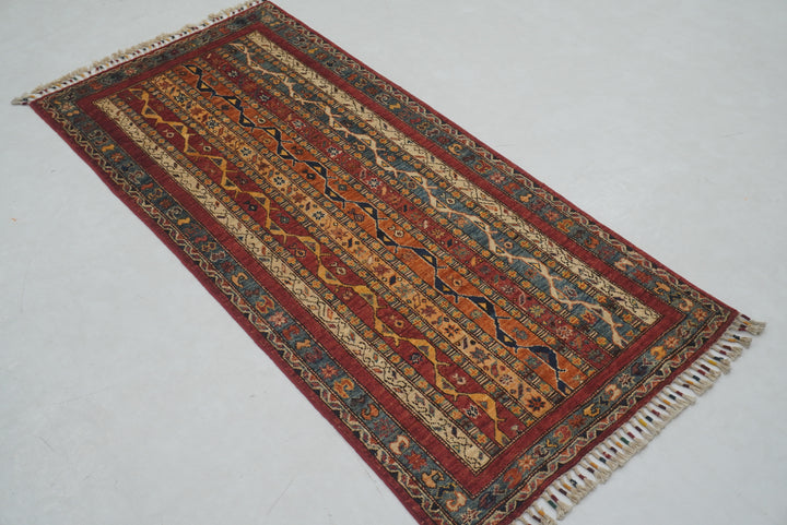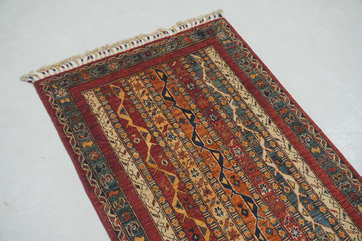 2'8"x5'9" Red Turkish Shawl Pattern Handmade Runner Rug