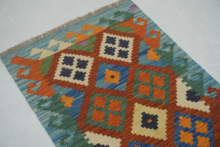 2'8"x9'8" Red Blue Kilim Afghan Hand woven Runner Rug