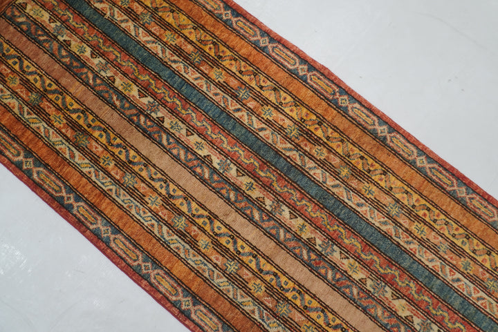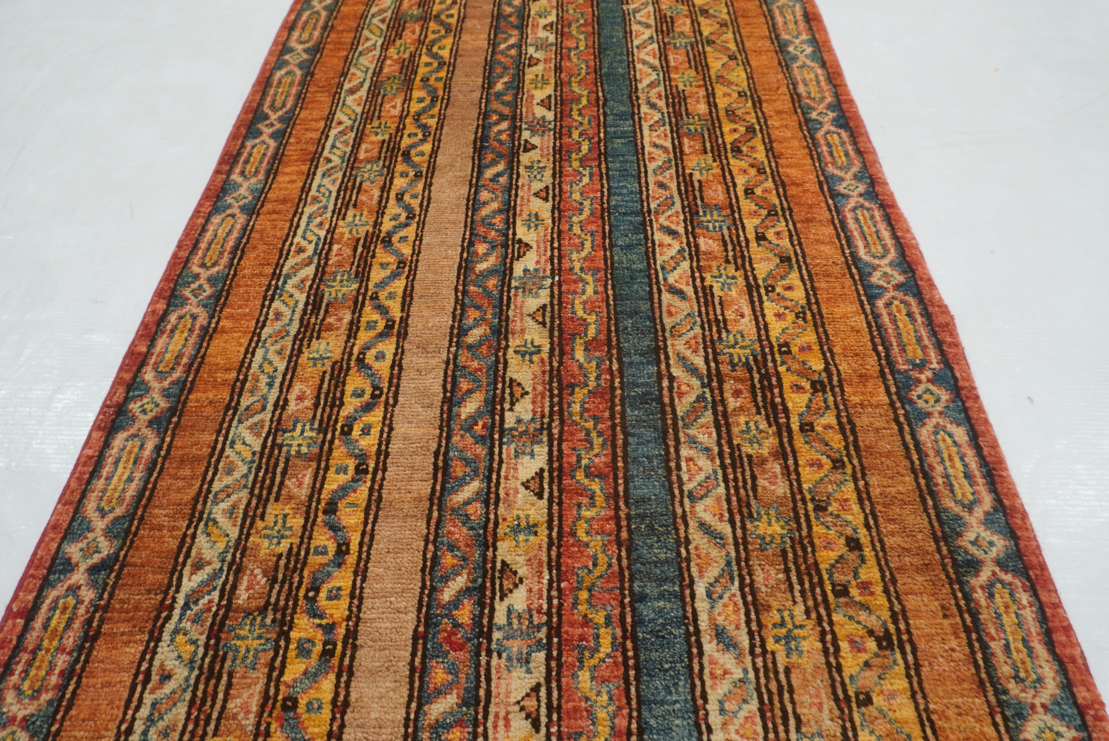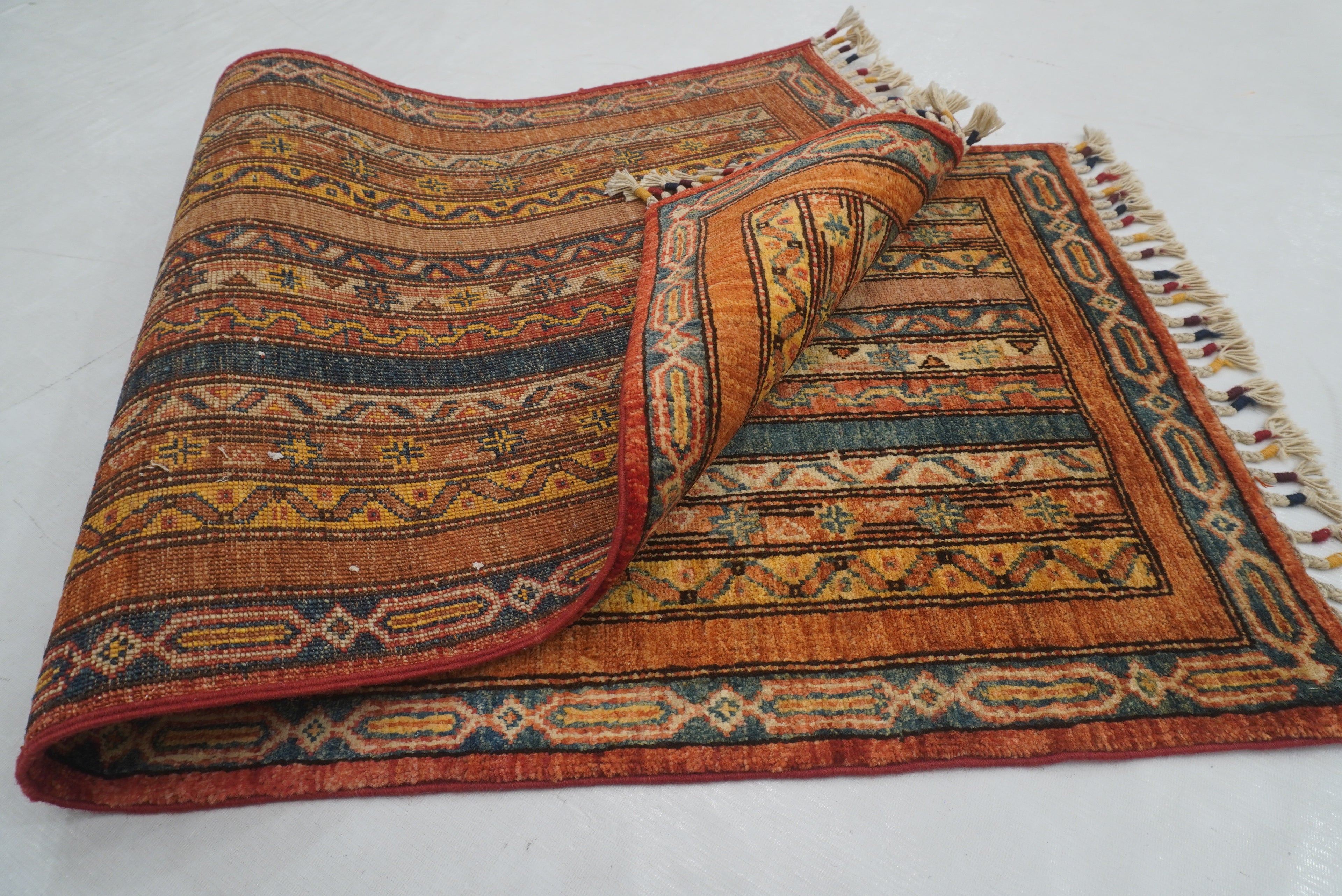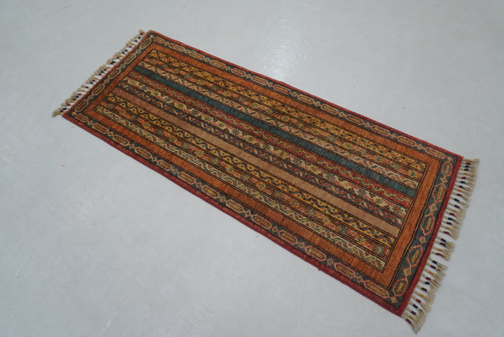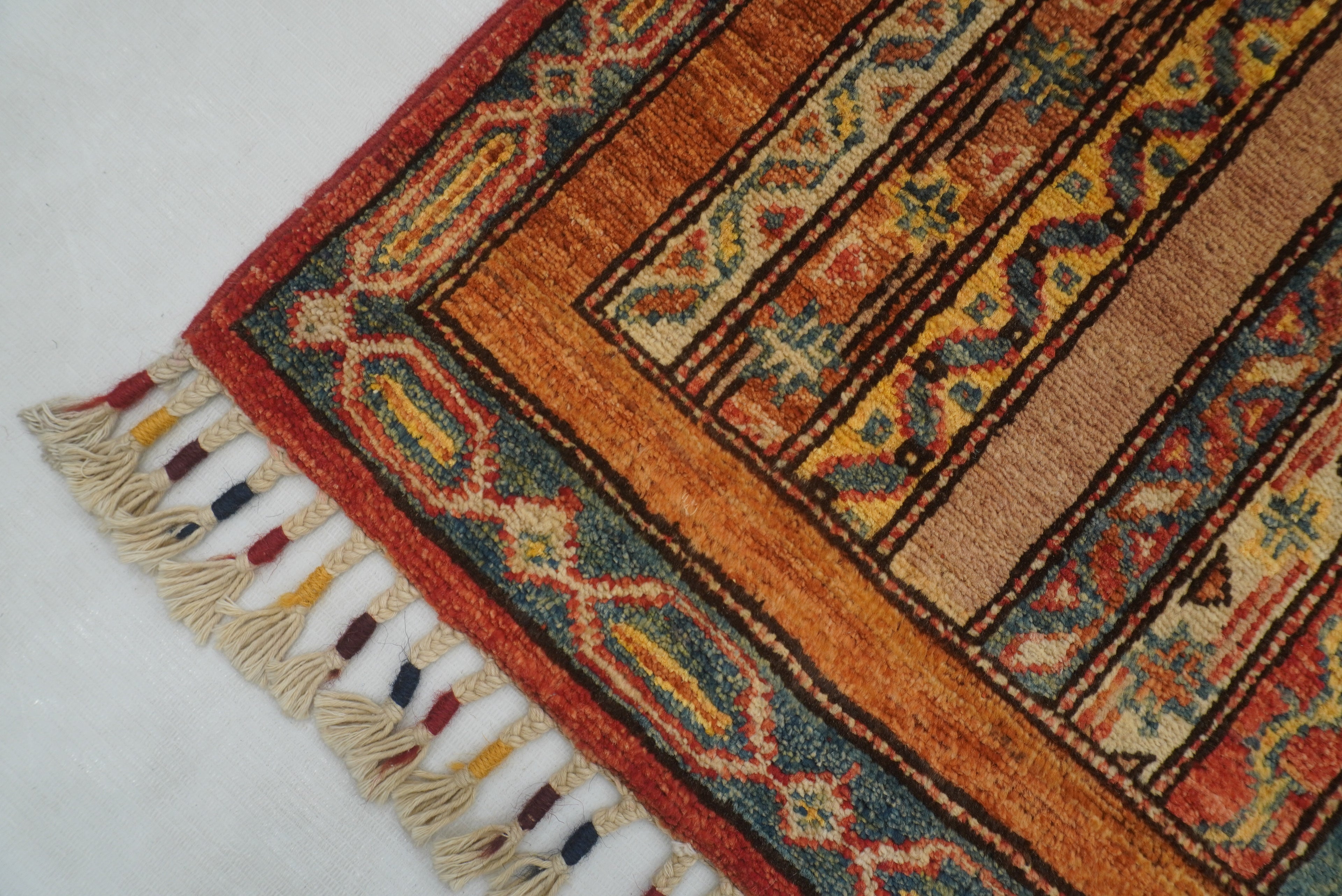 2x5 ft Orange Turkish Shawl Pattern Hand knotted Runner Rug
