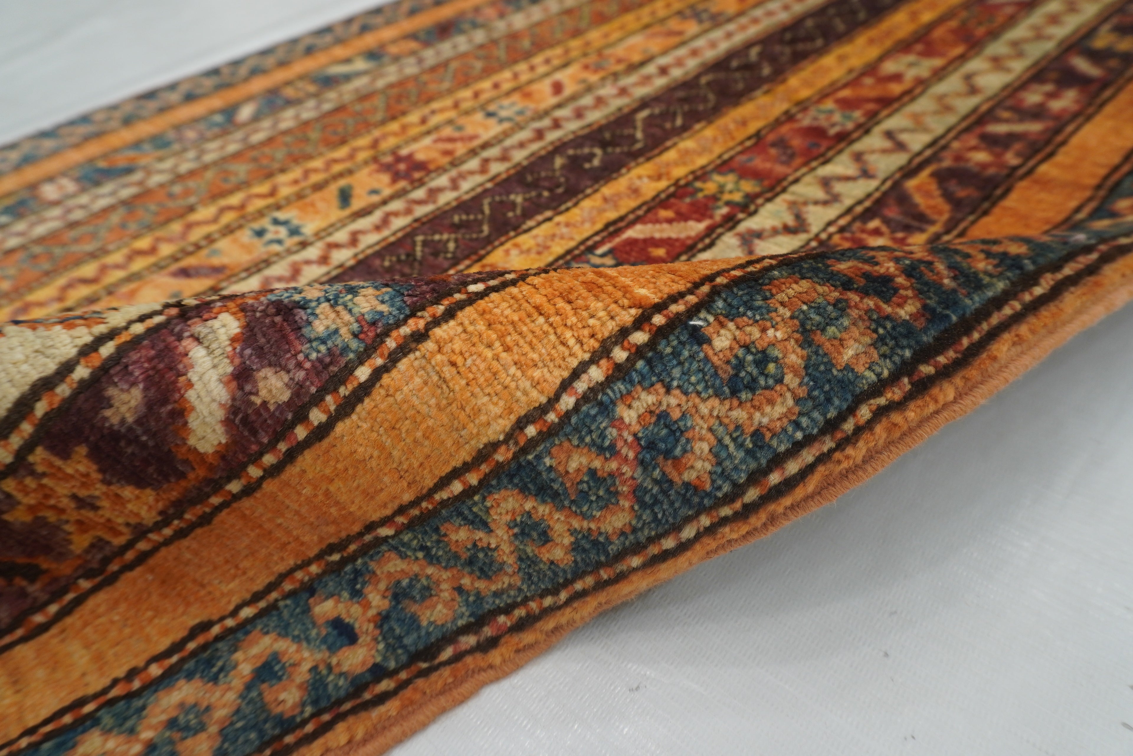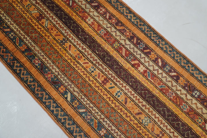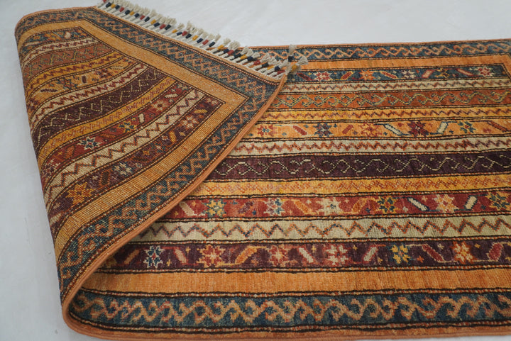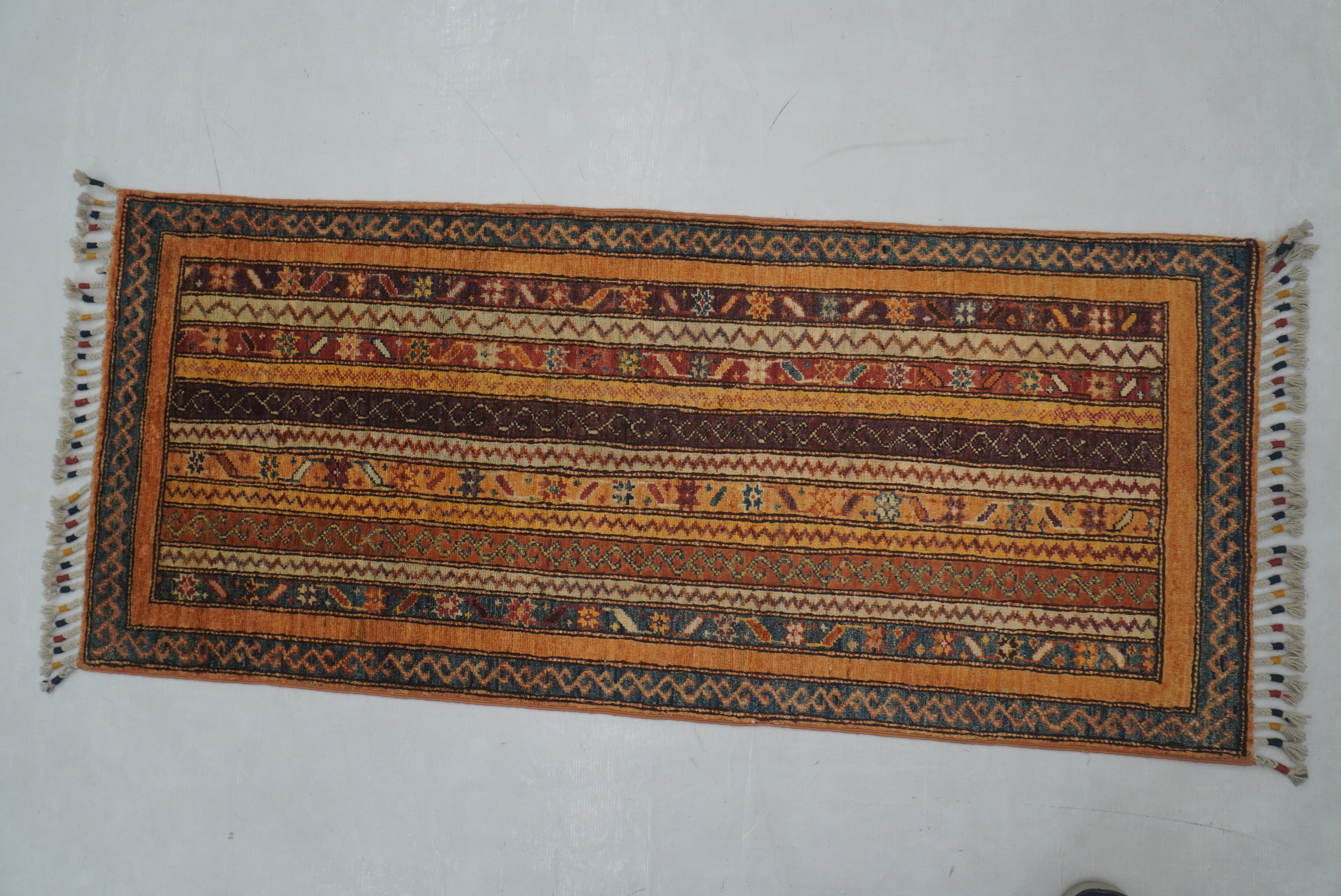 2x5 ft Orange Turkish Shawl Pattern Hand knotted Runner Rug