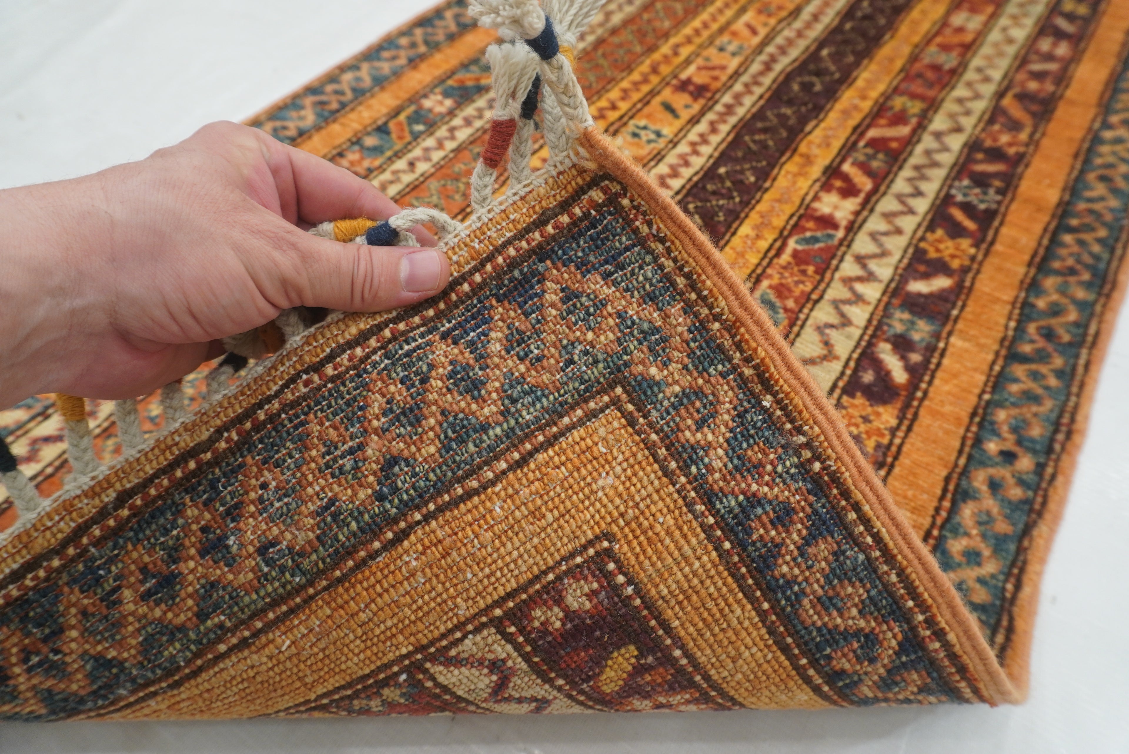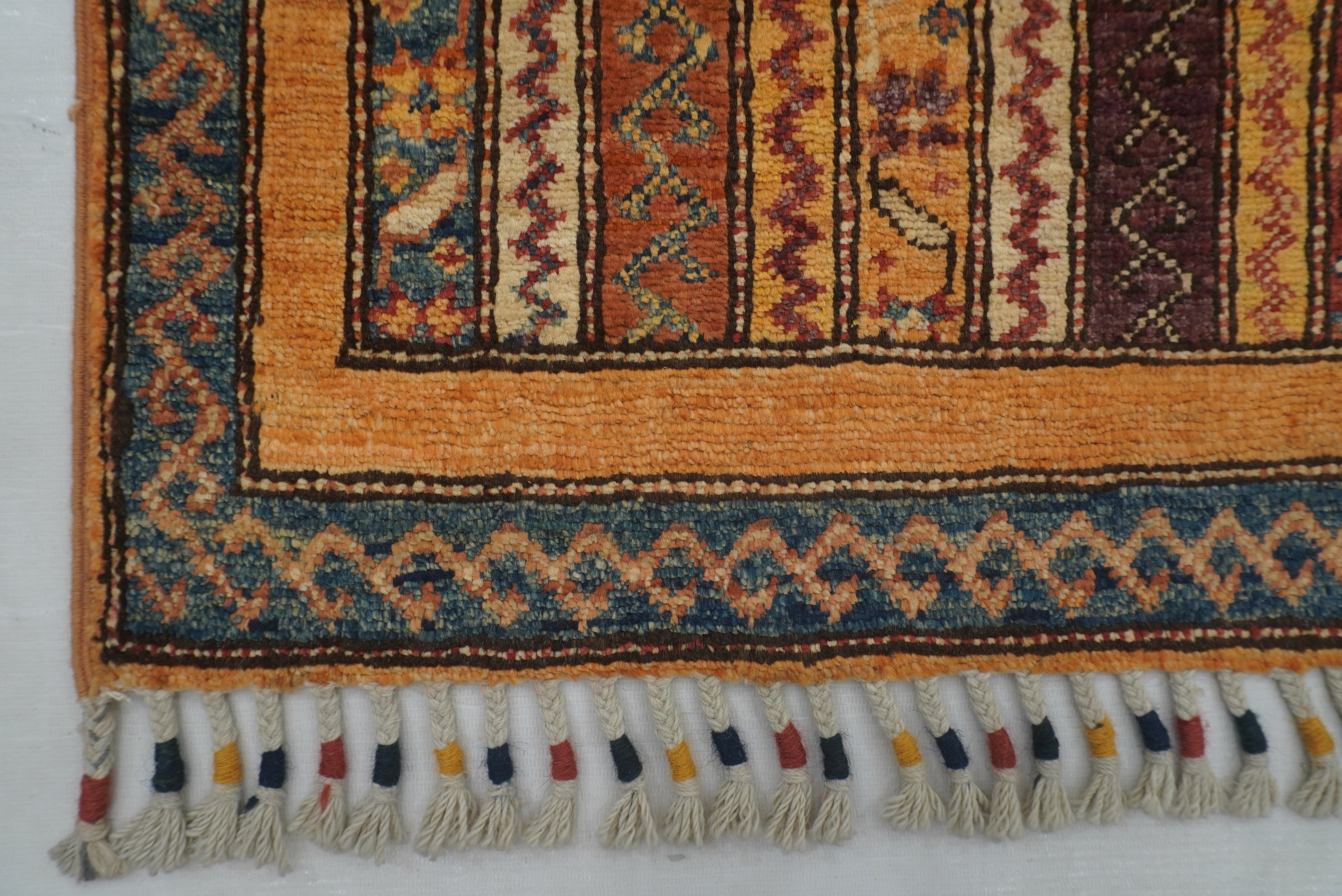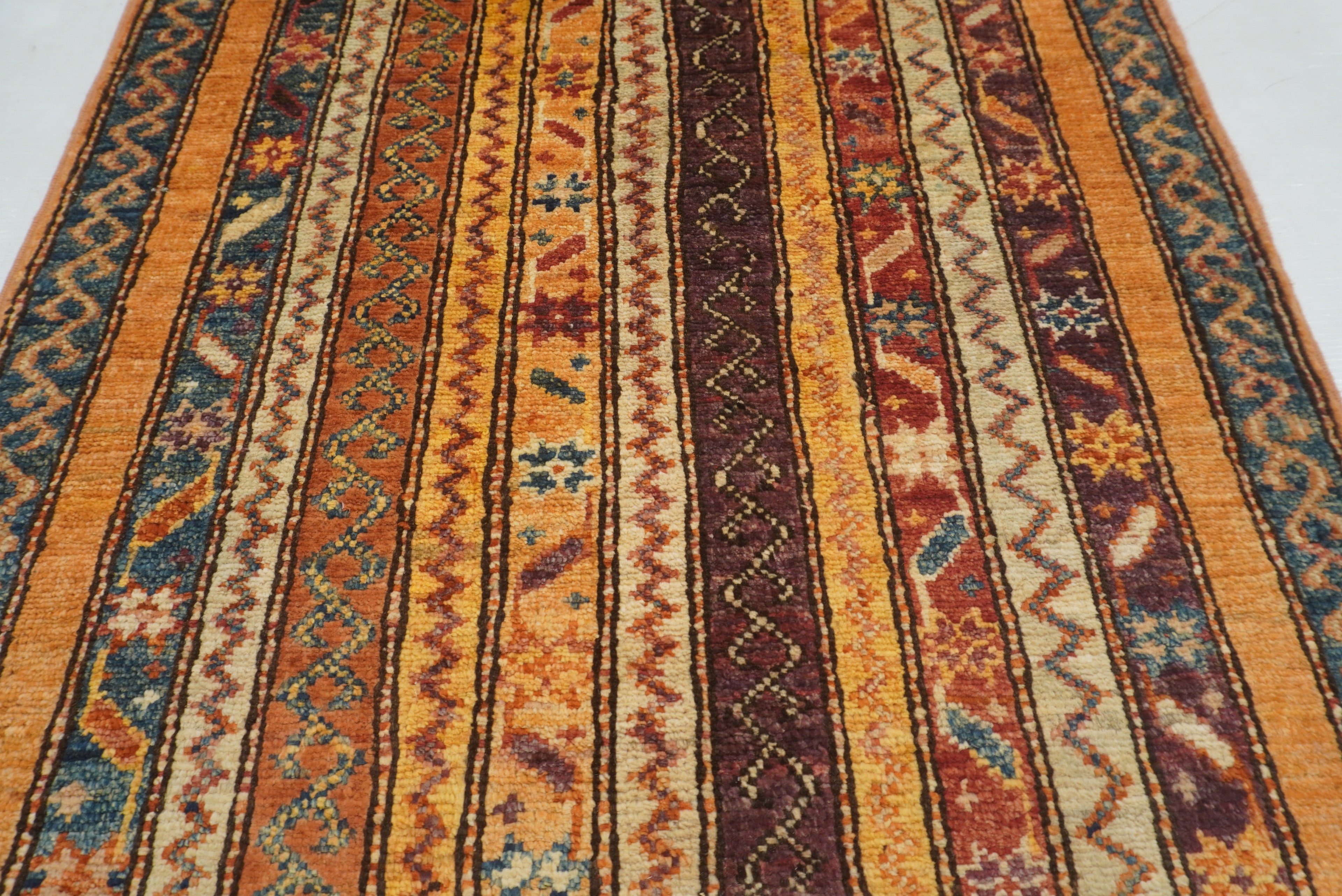 2x5 ft Orange Turkish Shawl Pattern Hand knotted Runner Rug