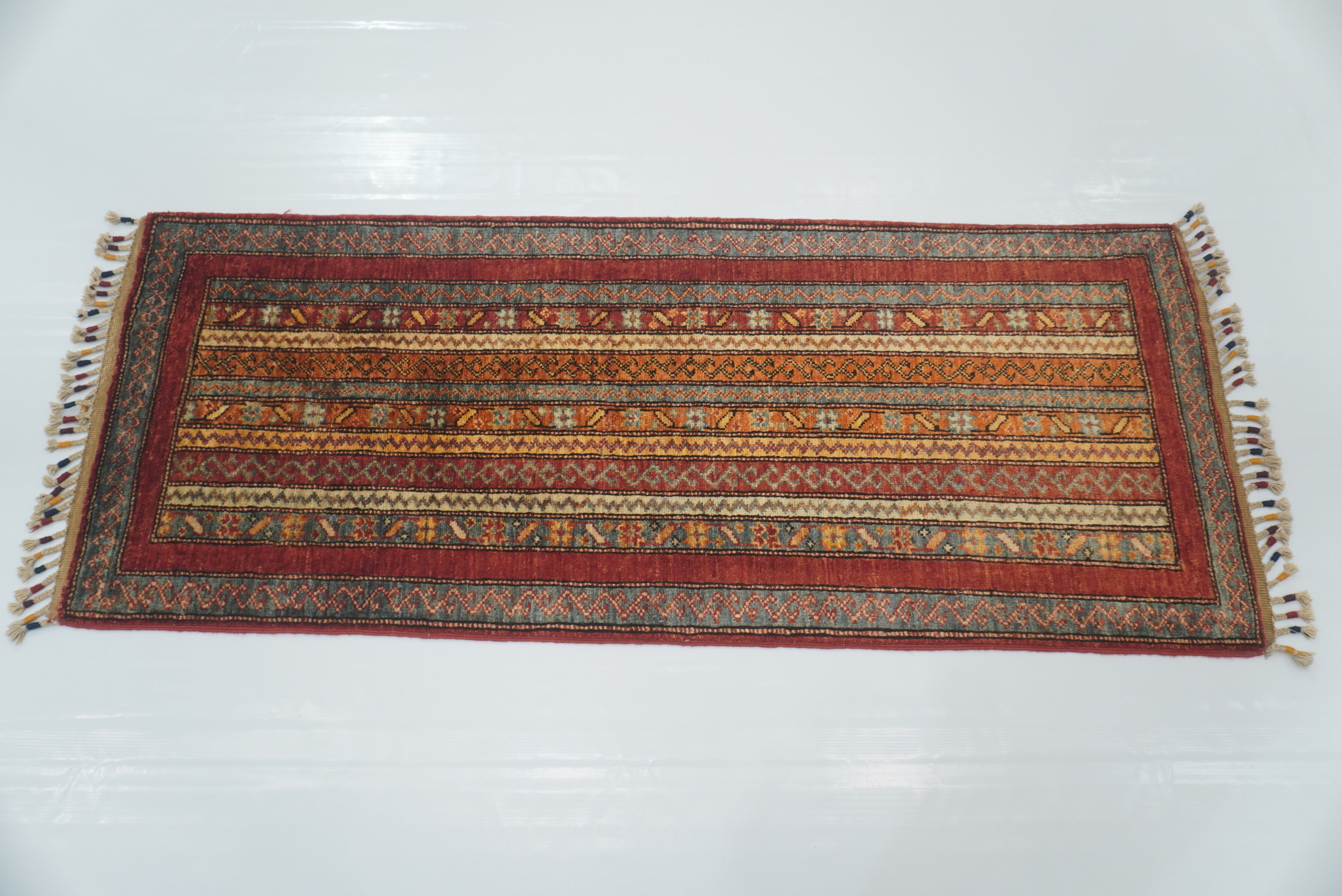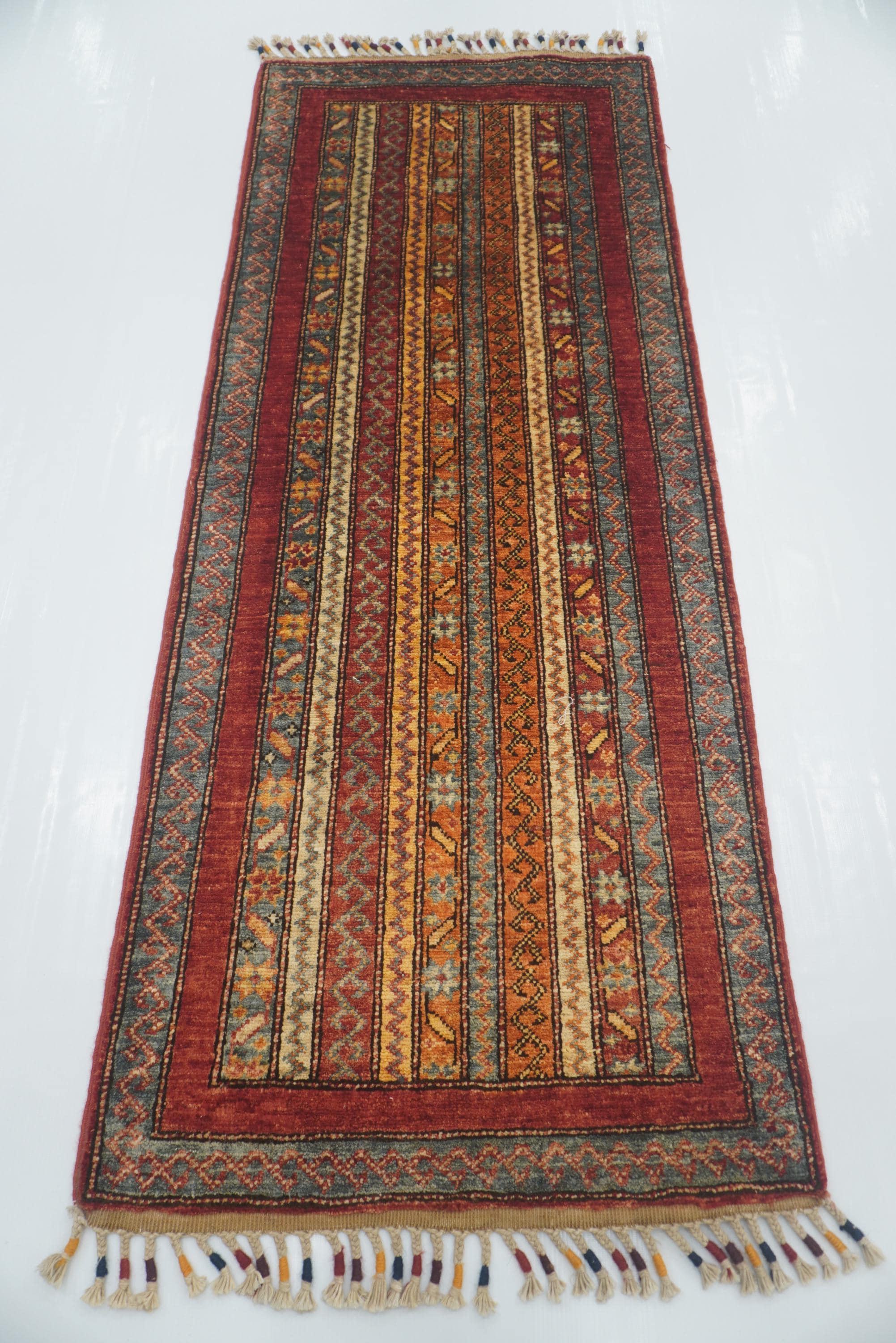 2x5 ft Red Turkish Hand knotted Runner Rug