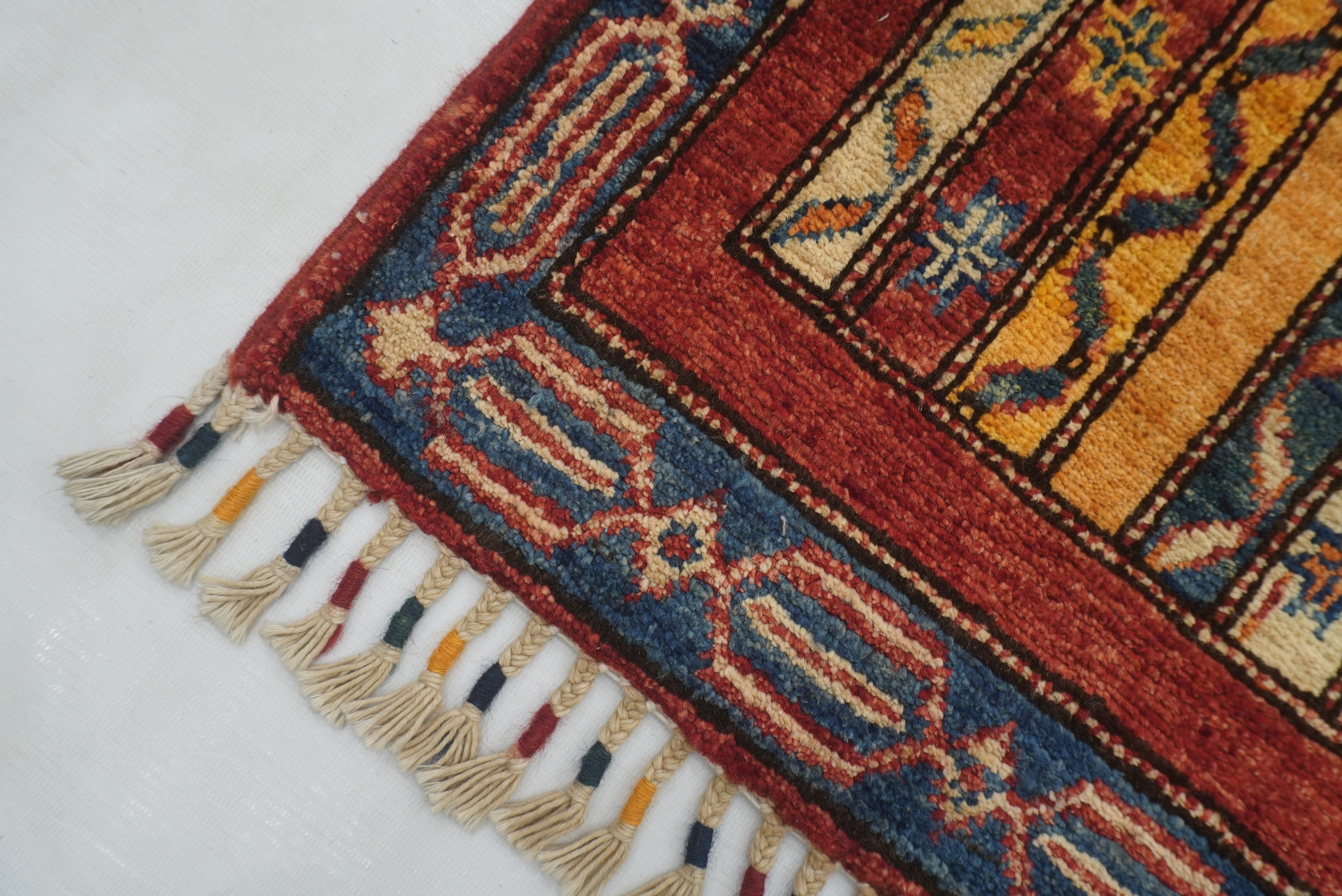 2x5 ft Red Turkish Shawl Pattern Hand knotted Runner Rug