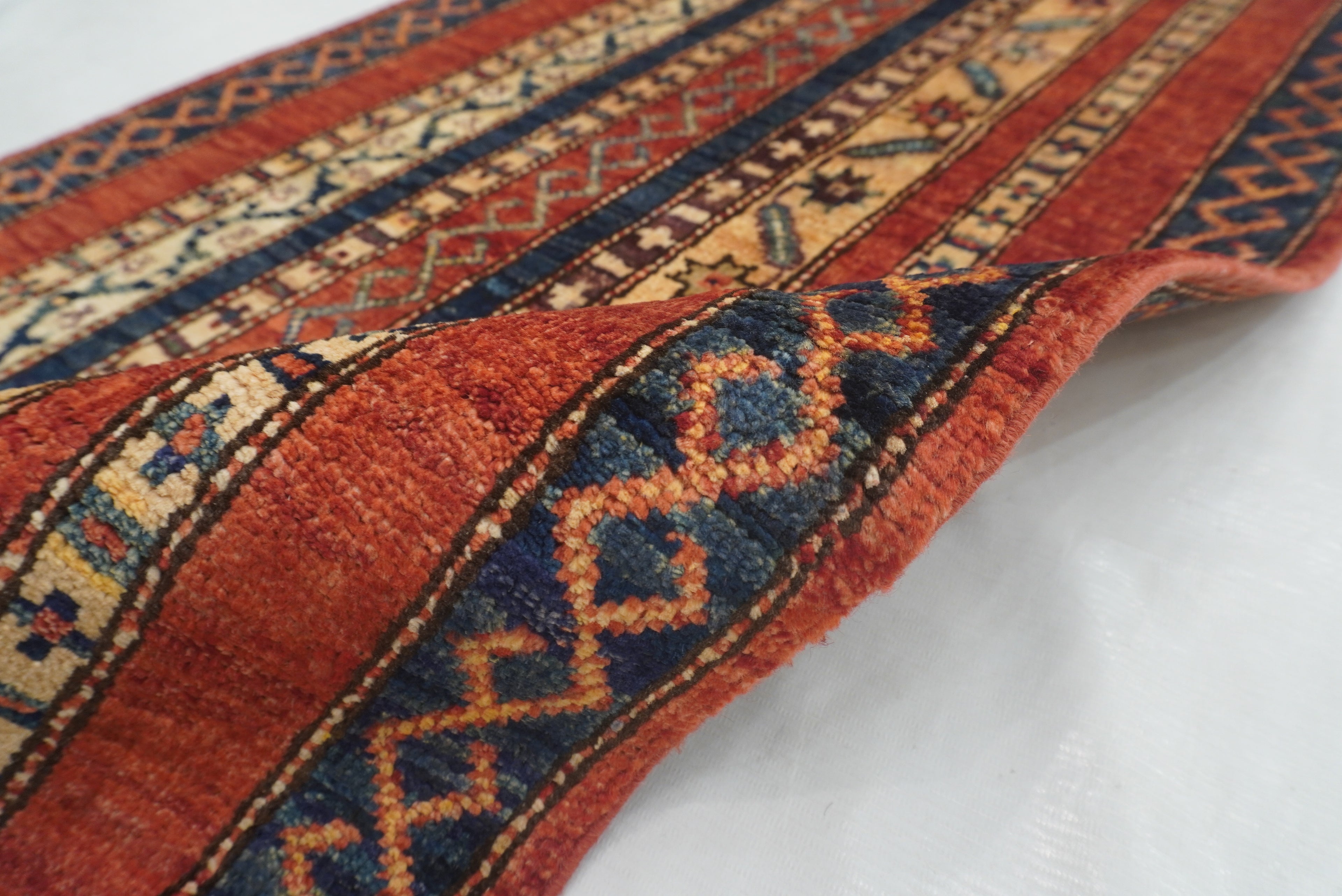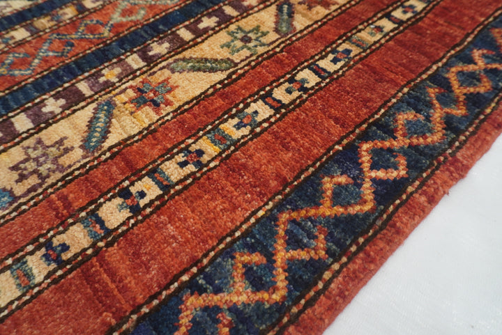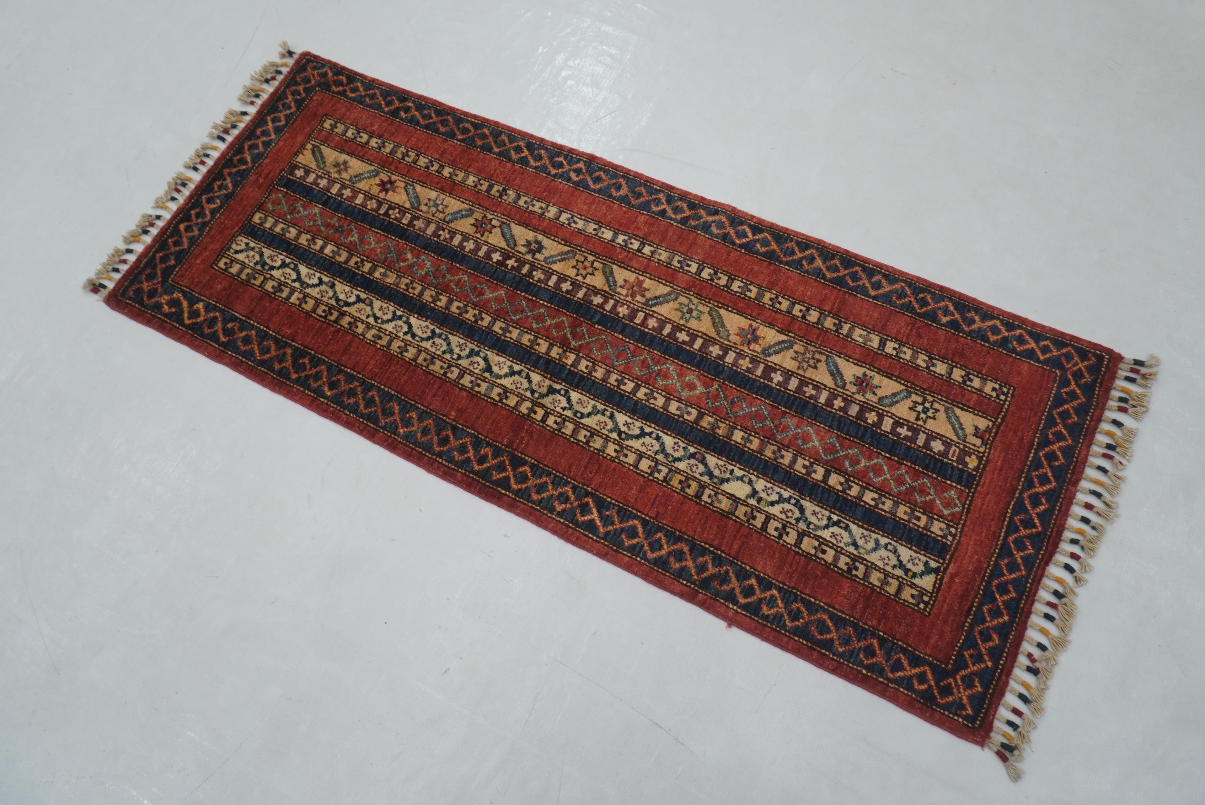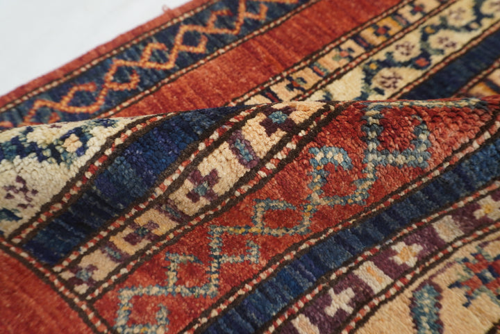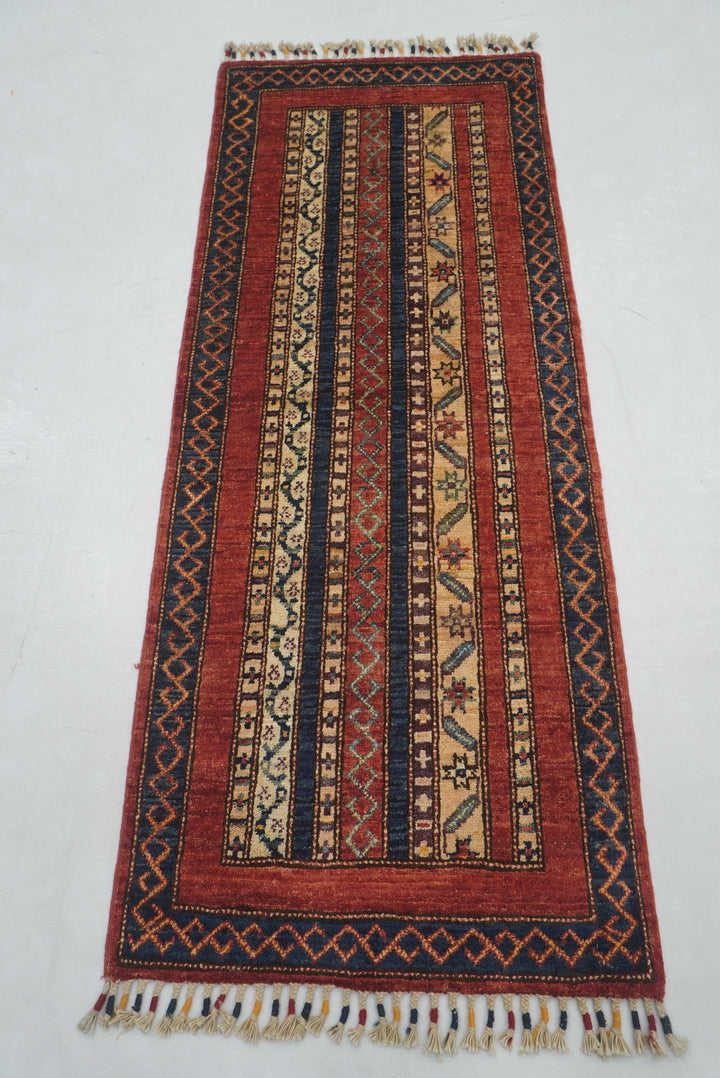 2x5 ft Red Turkish Shawl Pattern Hand knotted Runner Rug