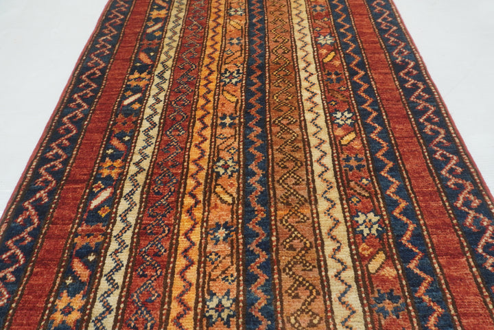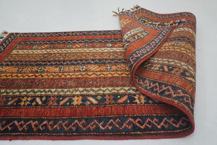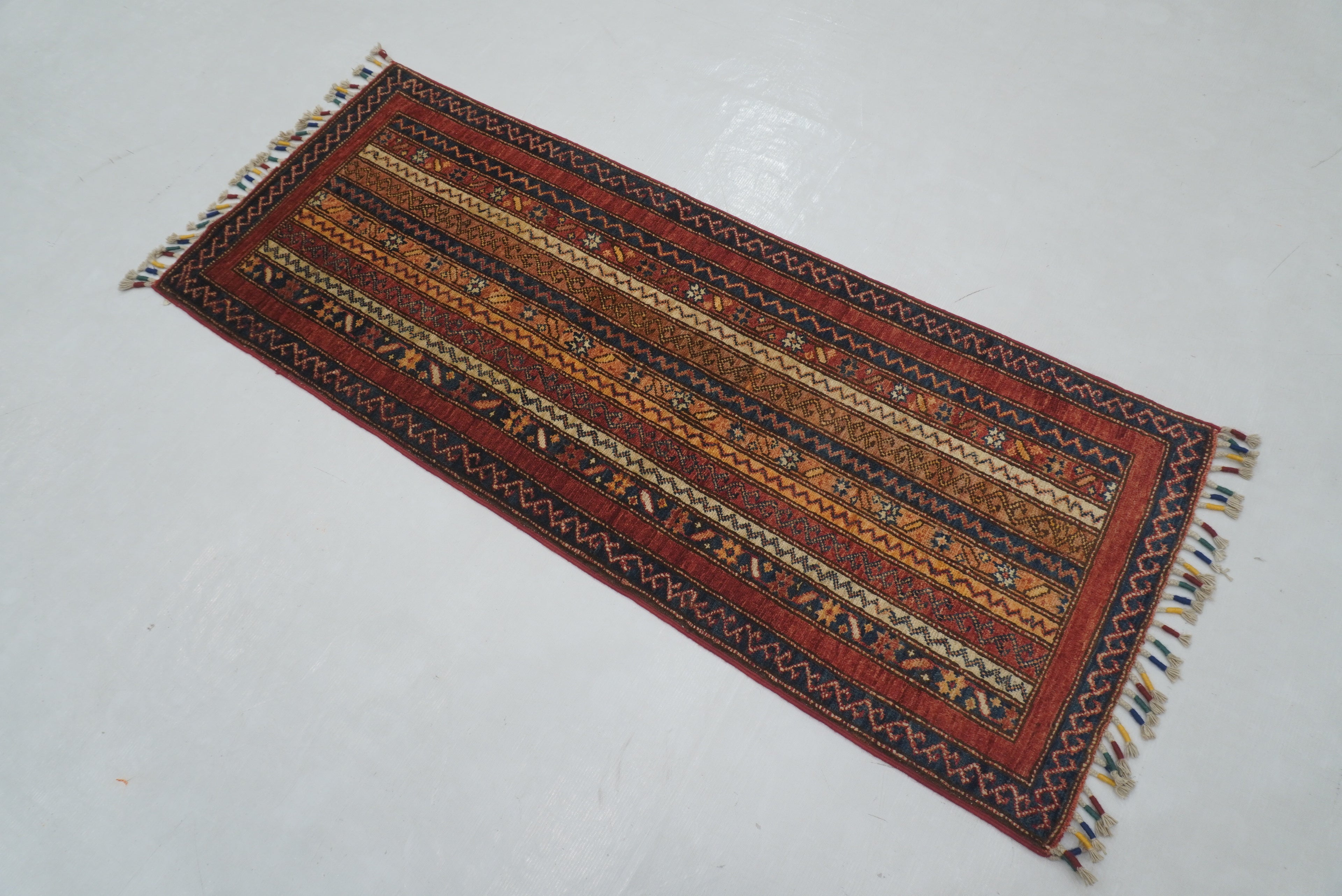 2x5 ft Red Turkish Shawl Pattern Hand knotted Runner Rug