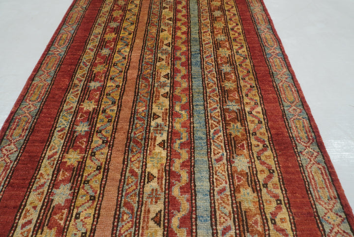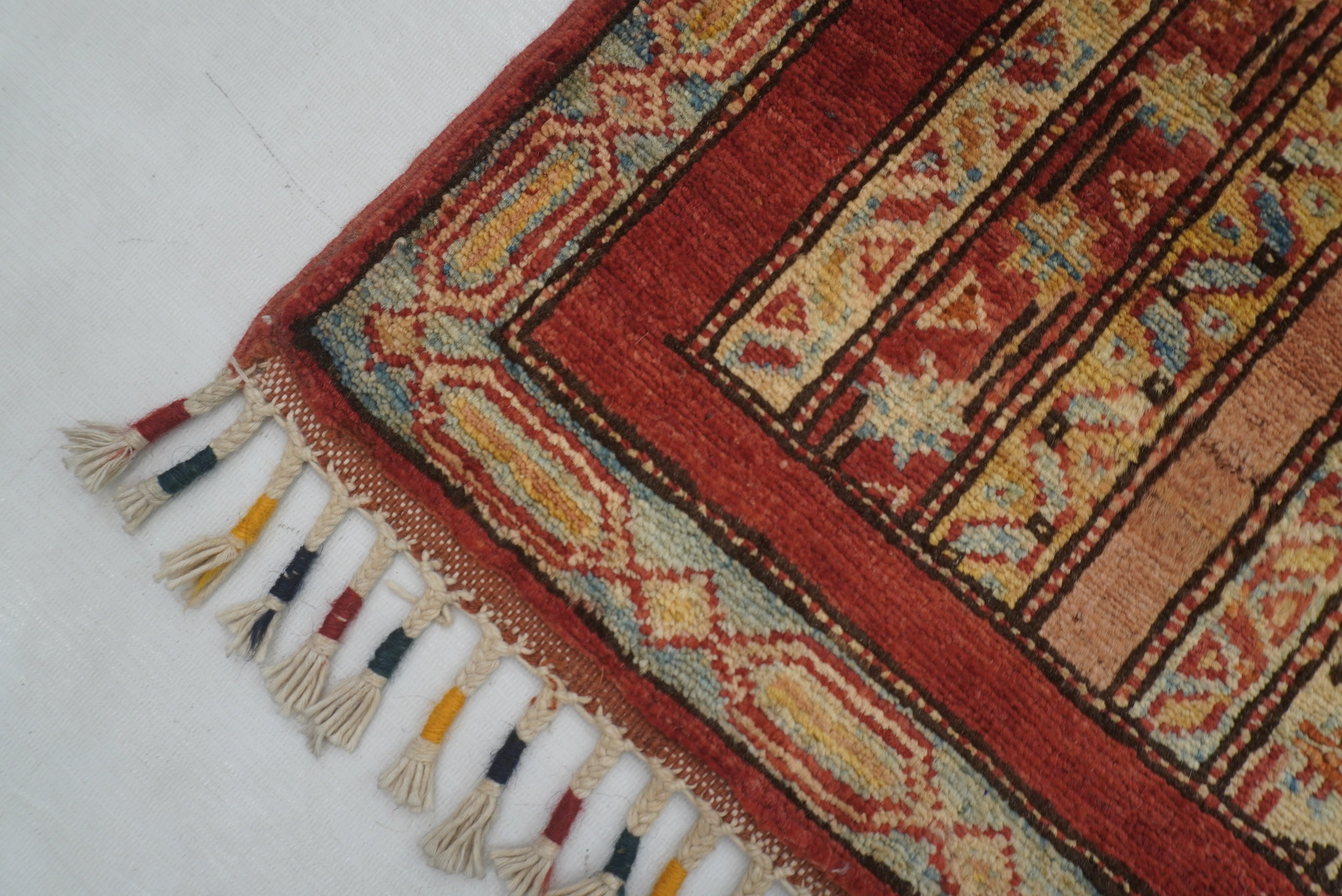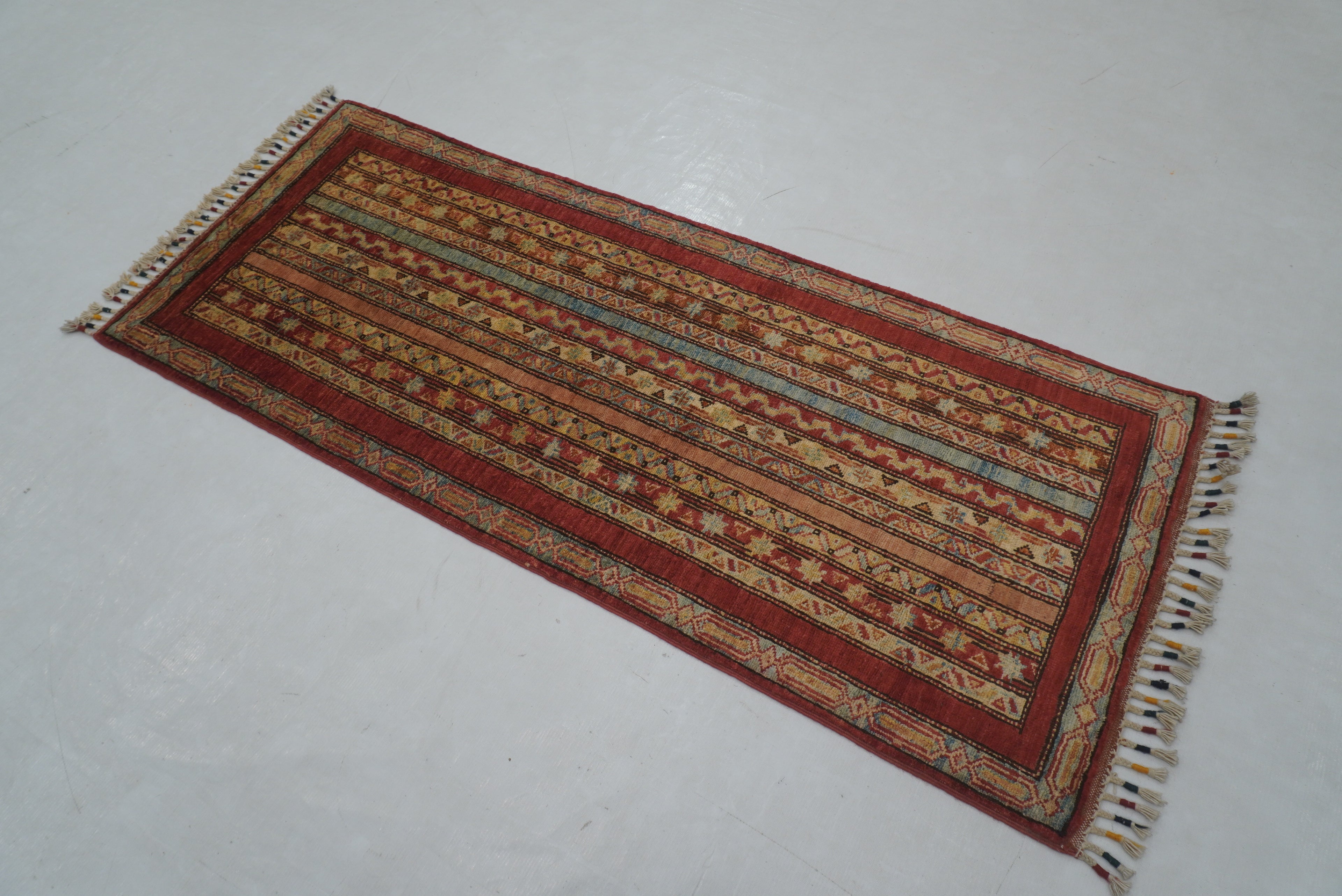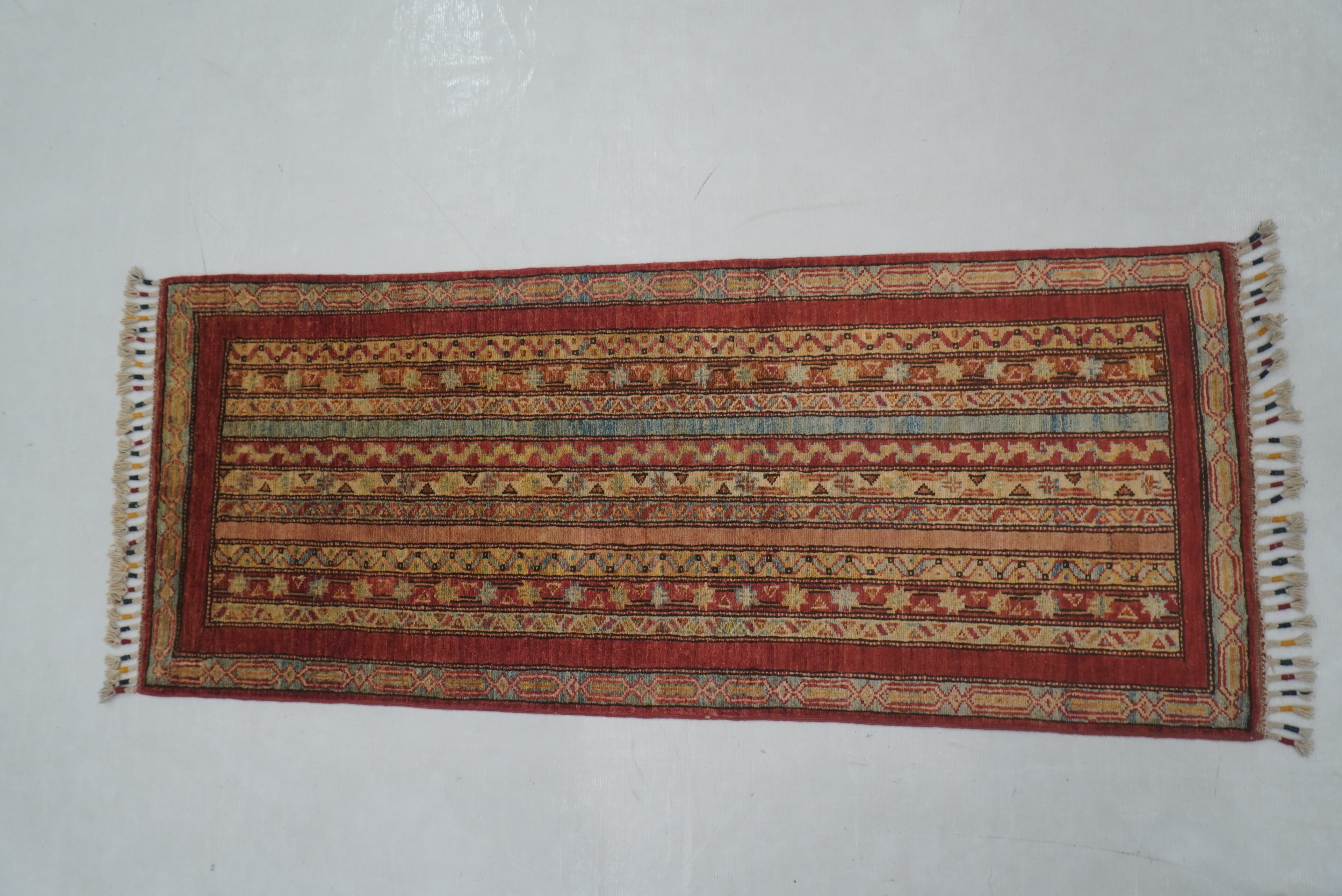 2x5 ft Red Turkish Shawl Pattern Hand knotted Runner Rug