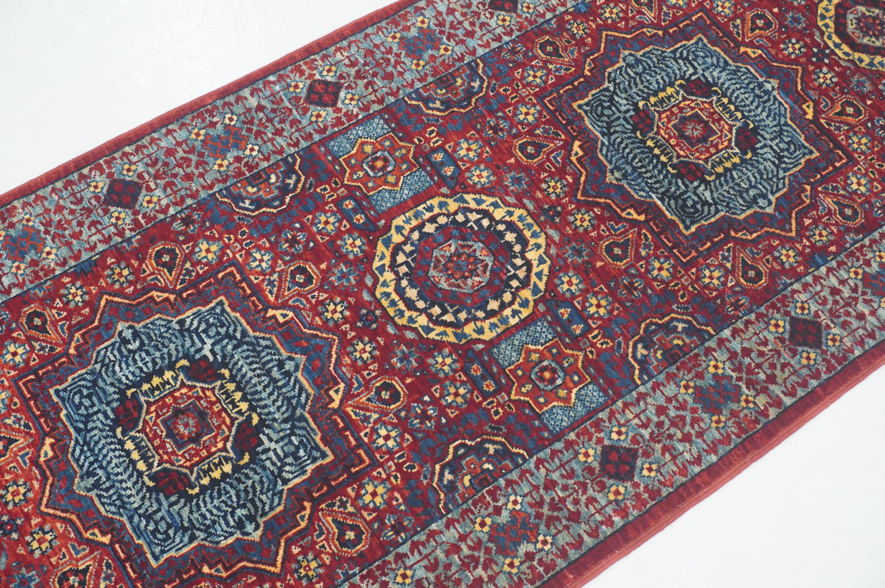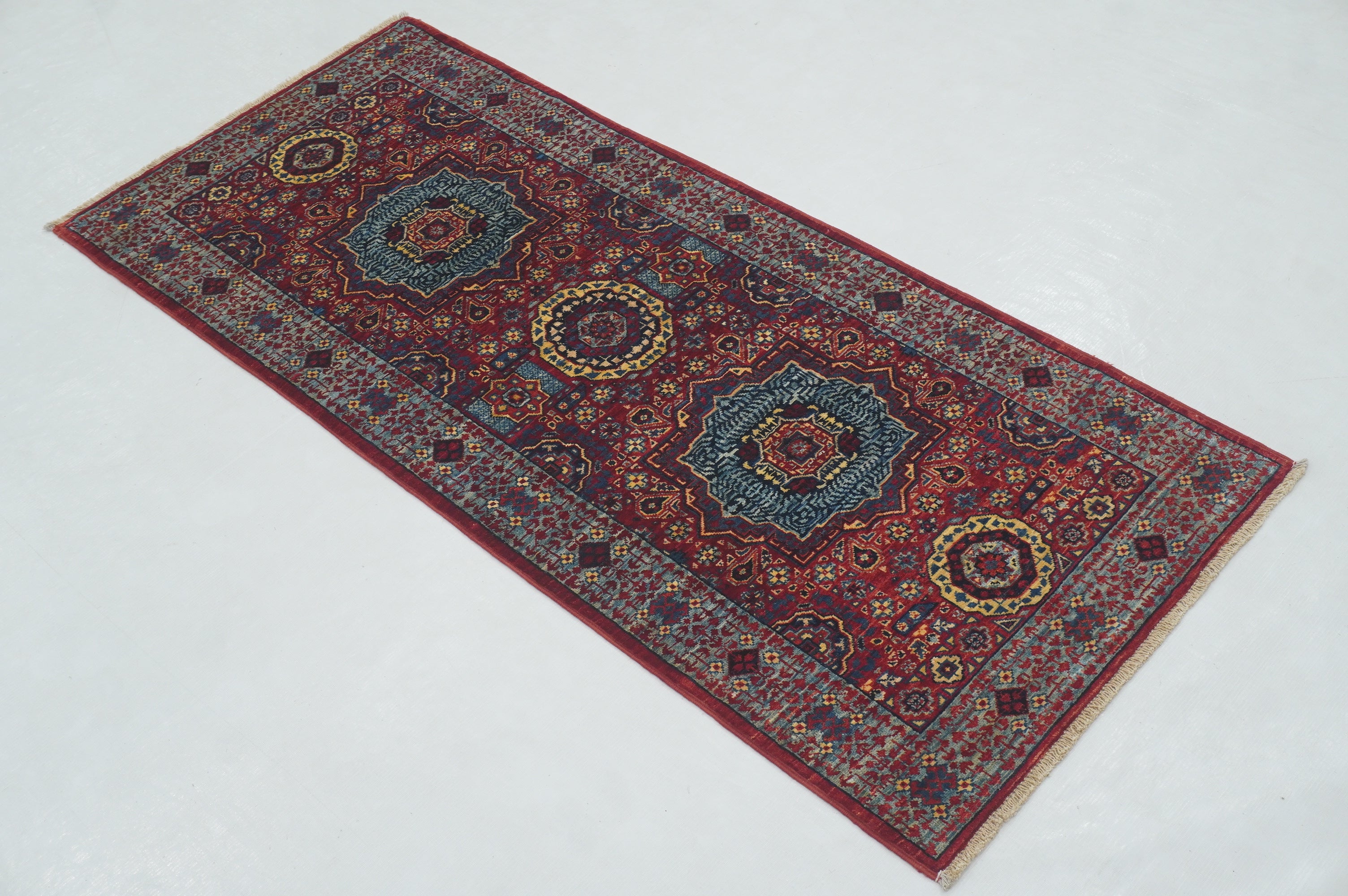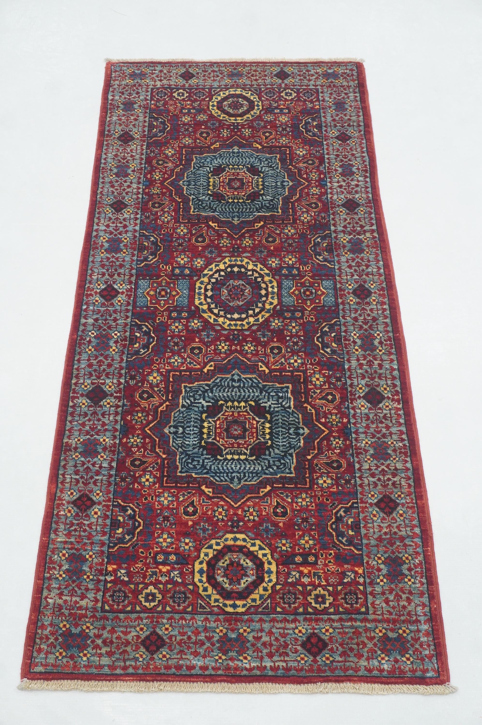 2x5 Red Mamluk Turkish Hand knotted Runner Rug