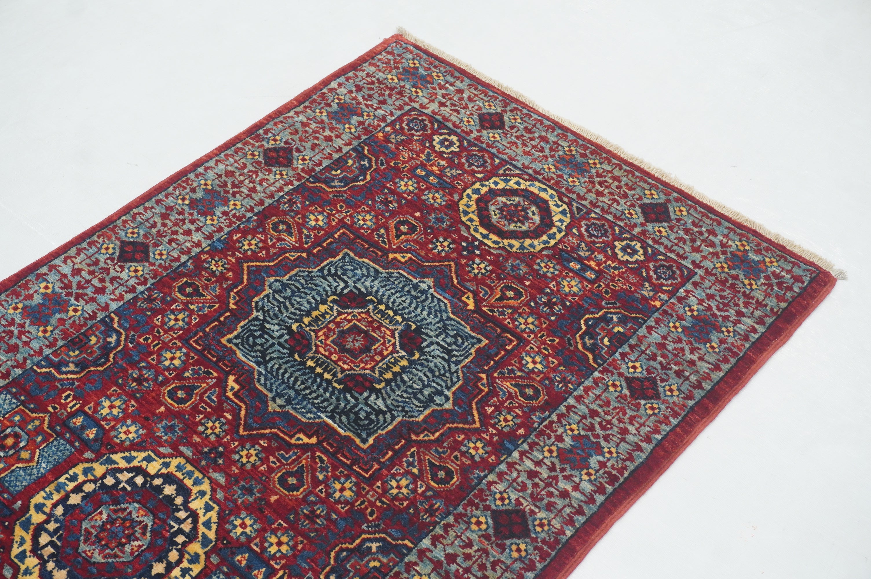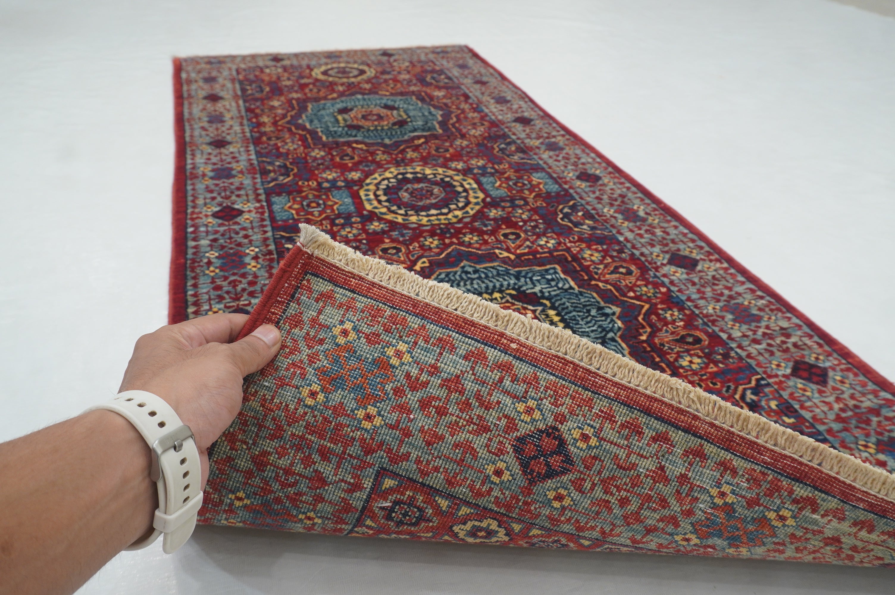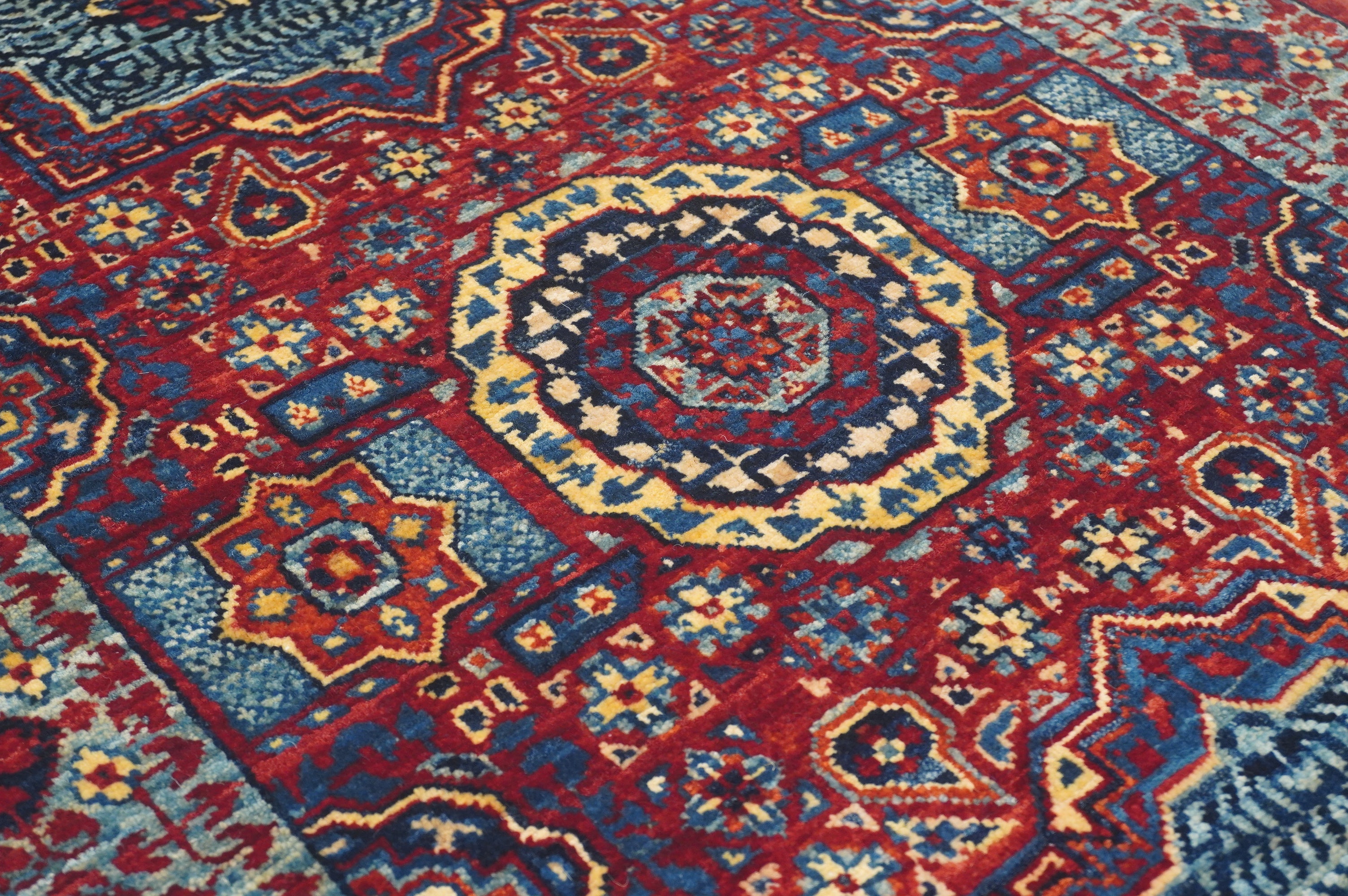 2x5 Red Mamluk Turkish Hand knotted Runner Rug