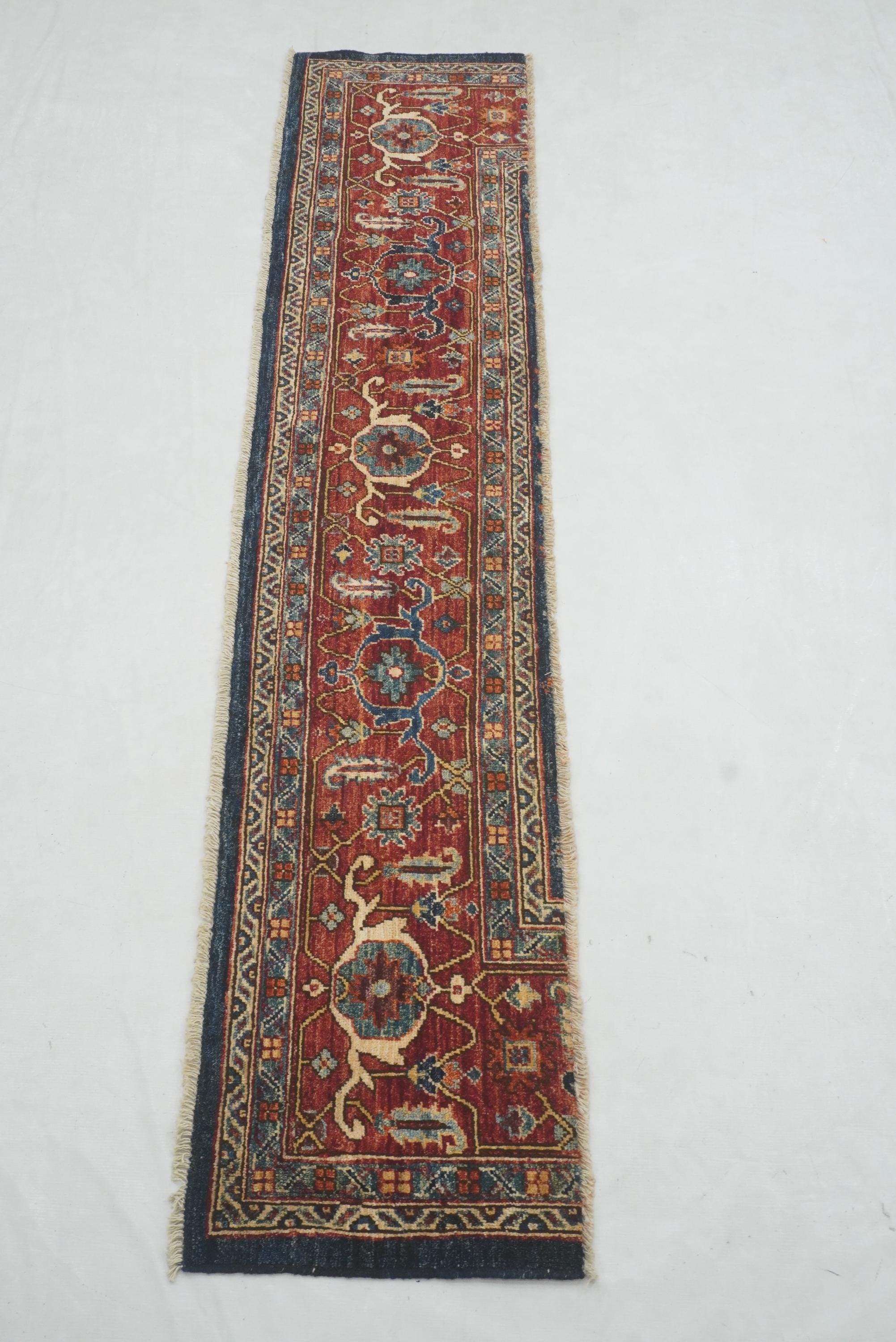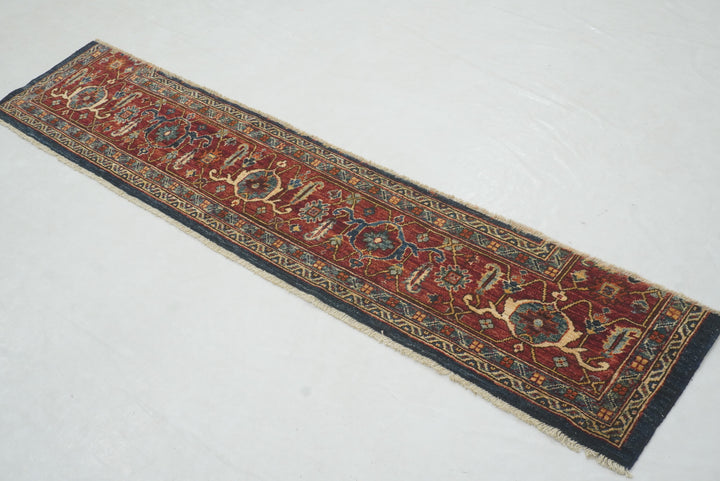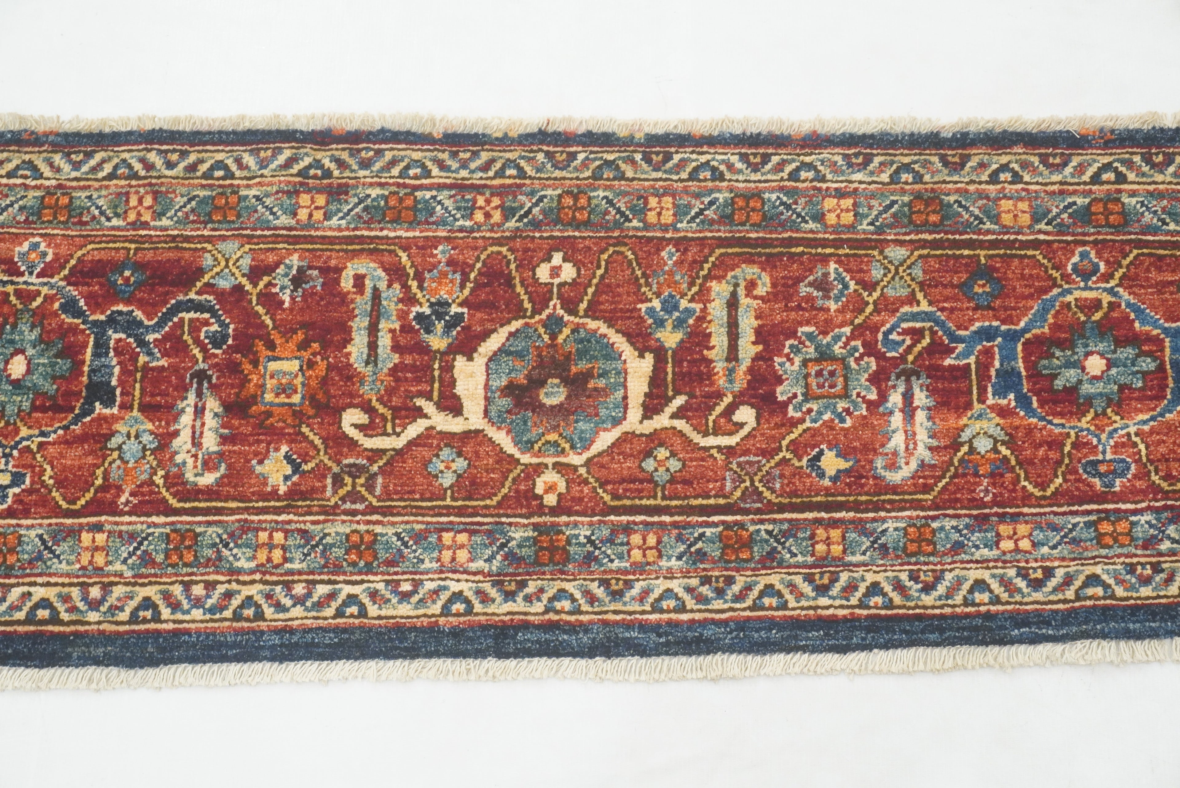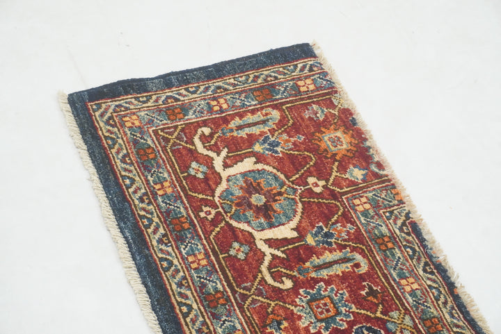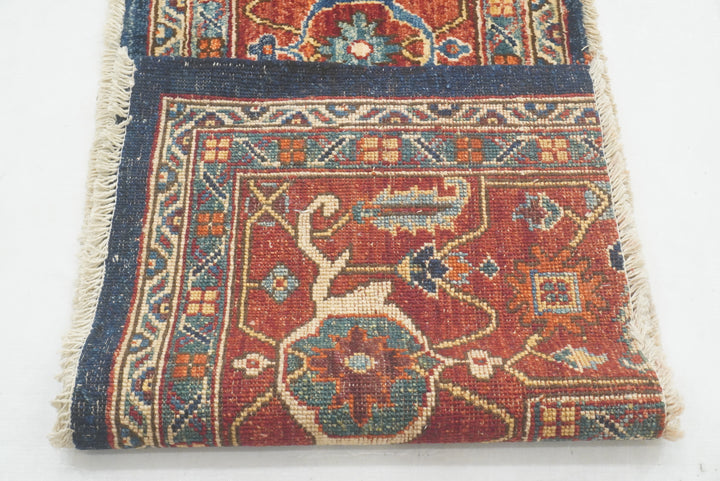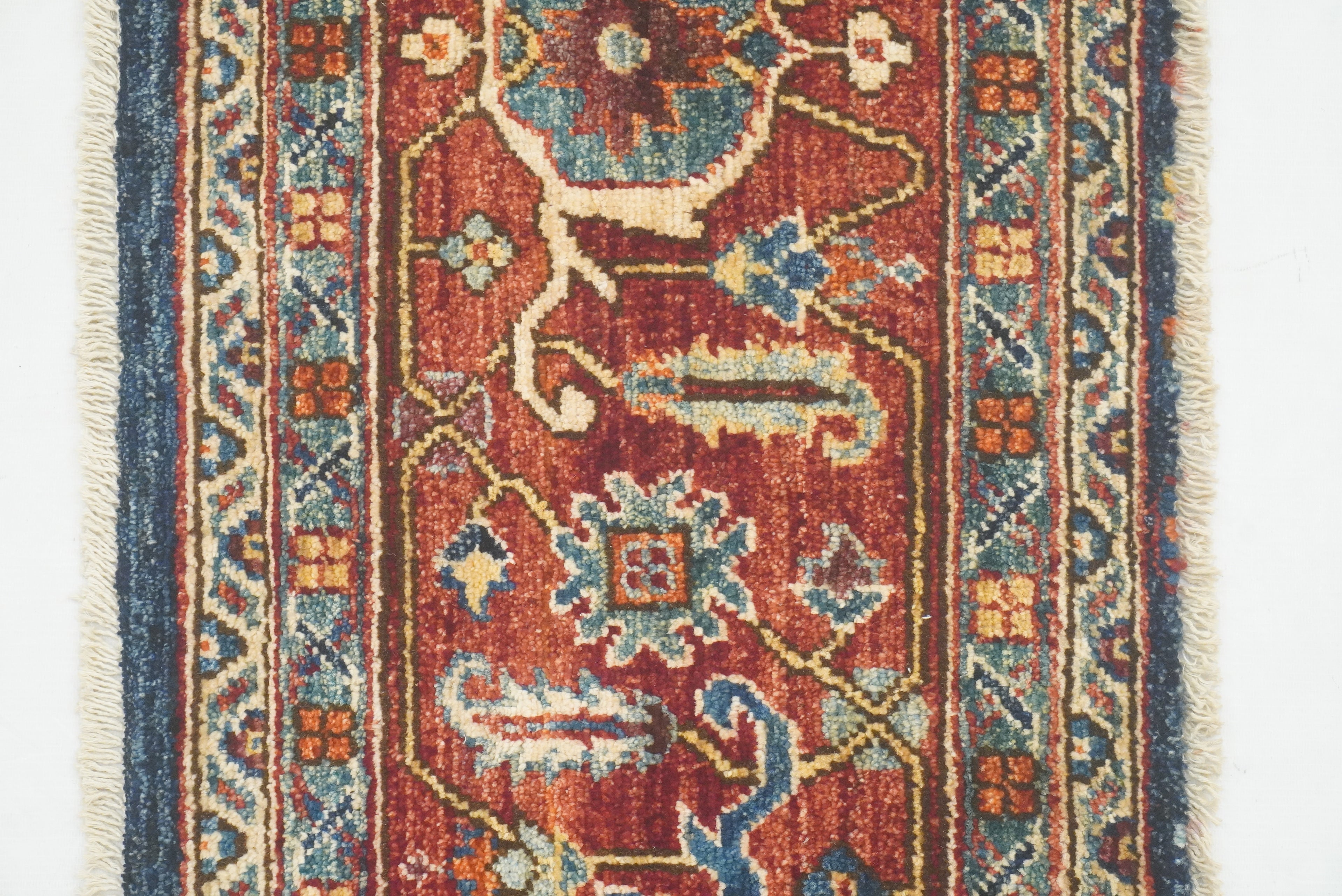 2x9 Red Heriz Afghan Hand knotted Runner Rug