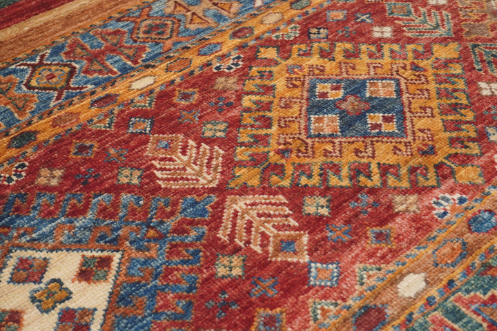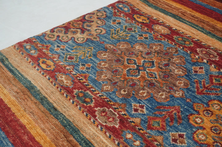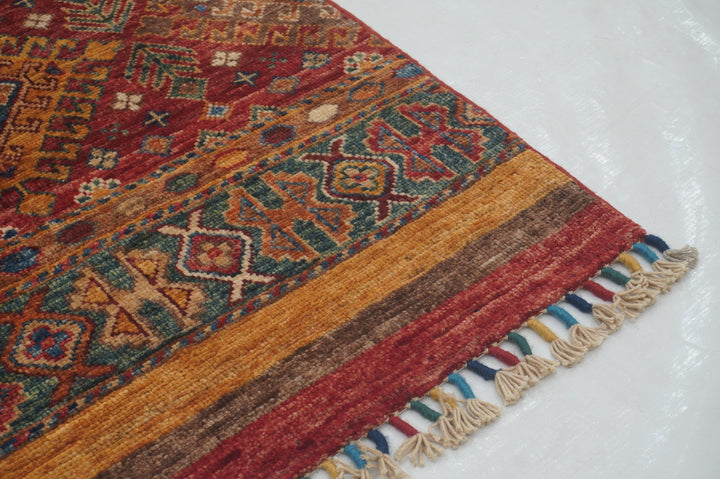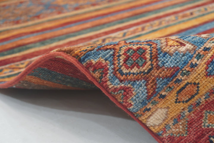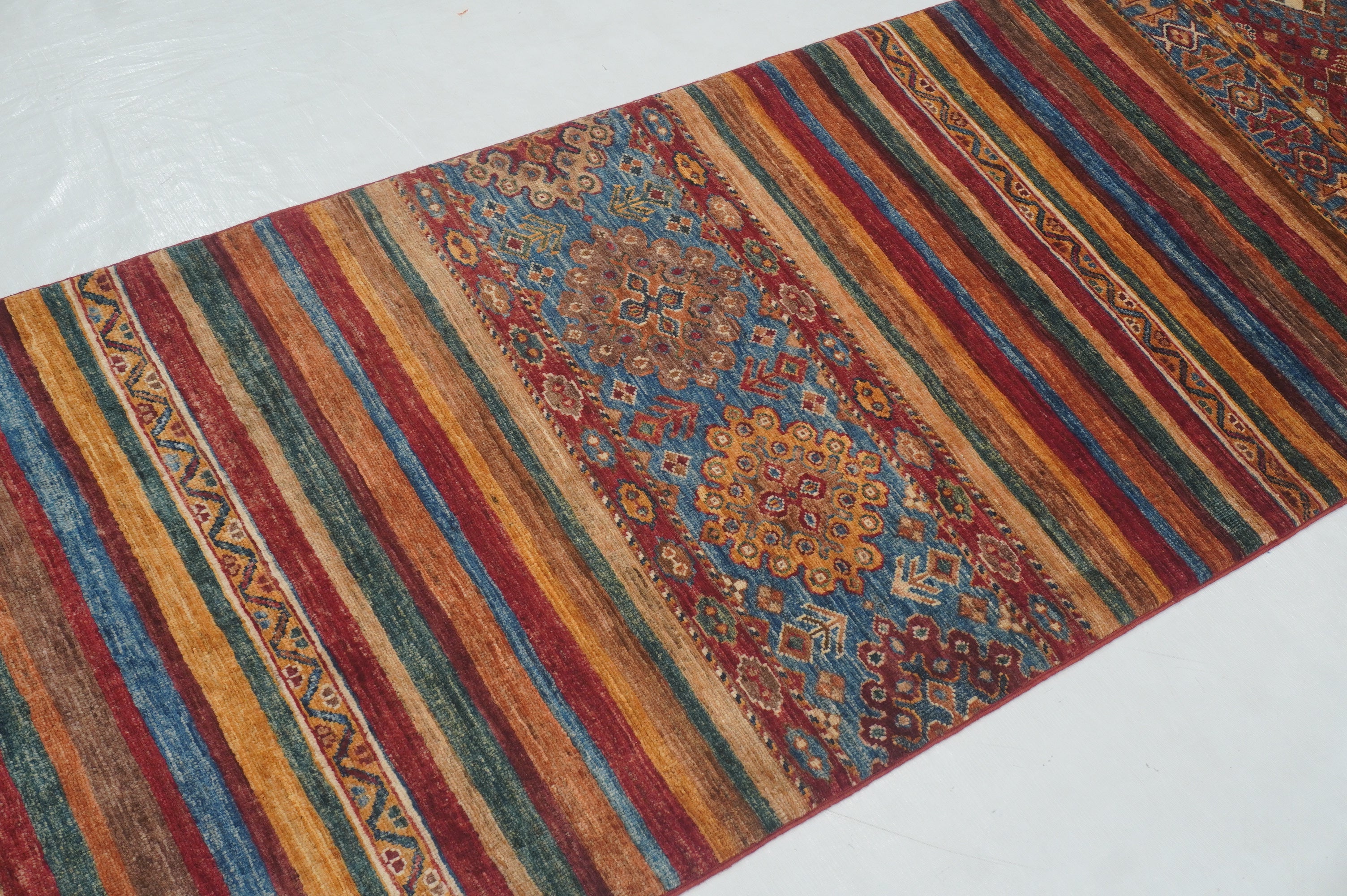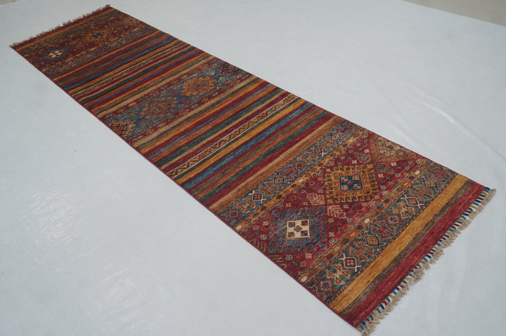 3 x 10 Red Tribal Striped Pattern Hand knotted Runner Rug