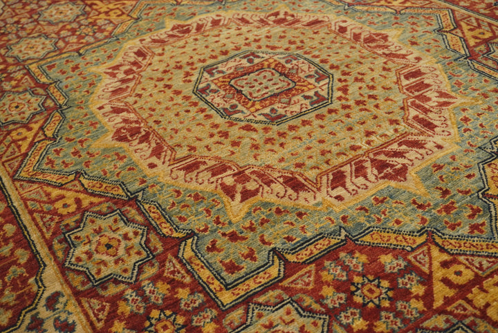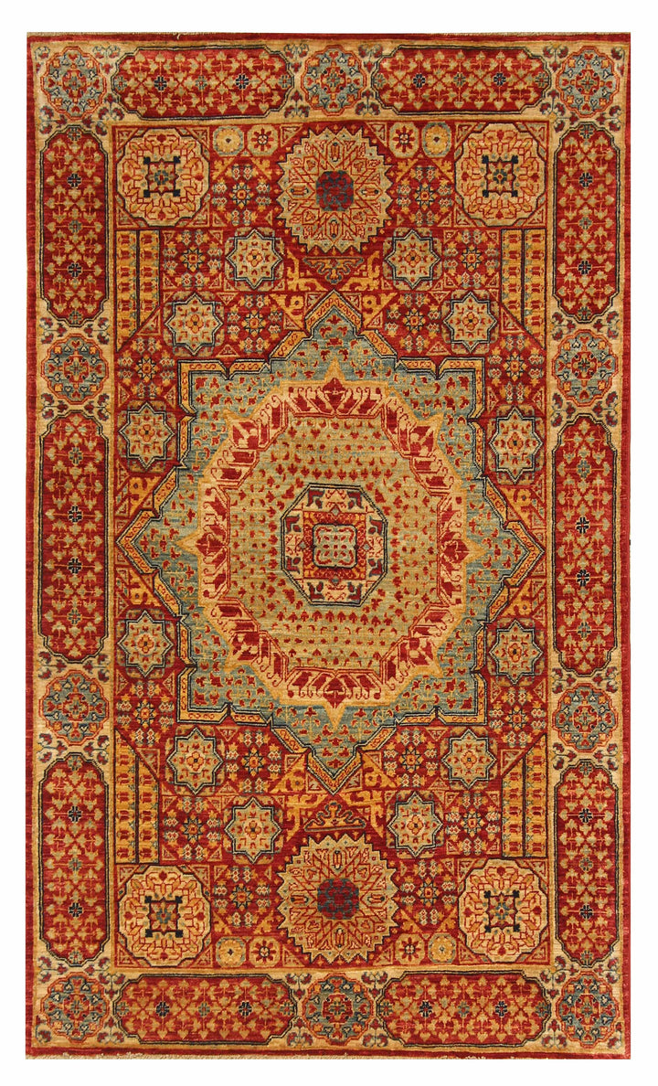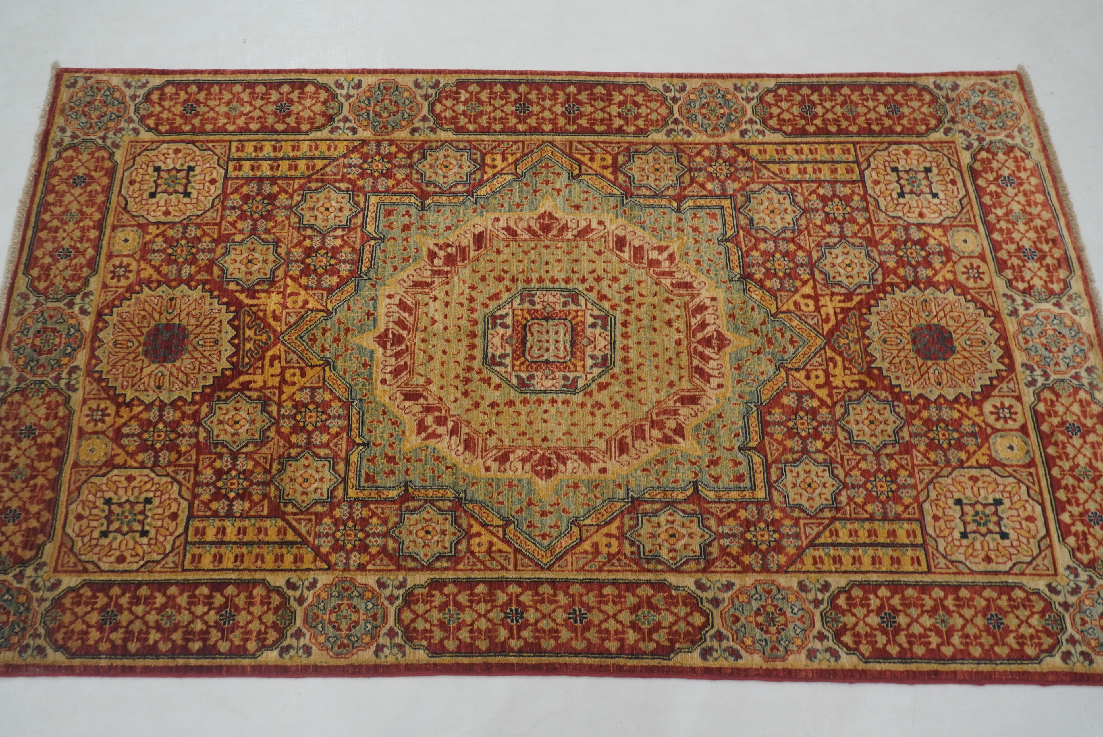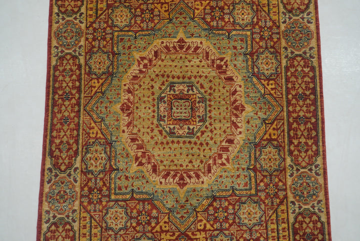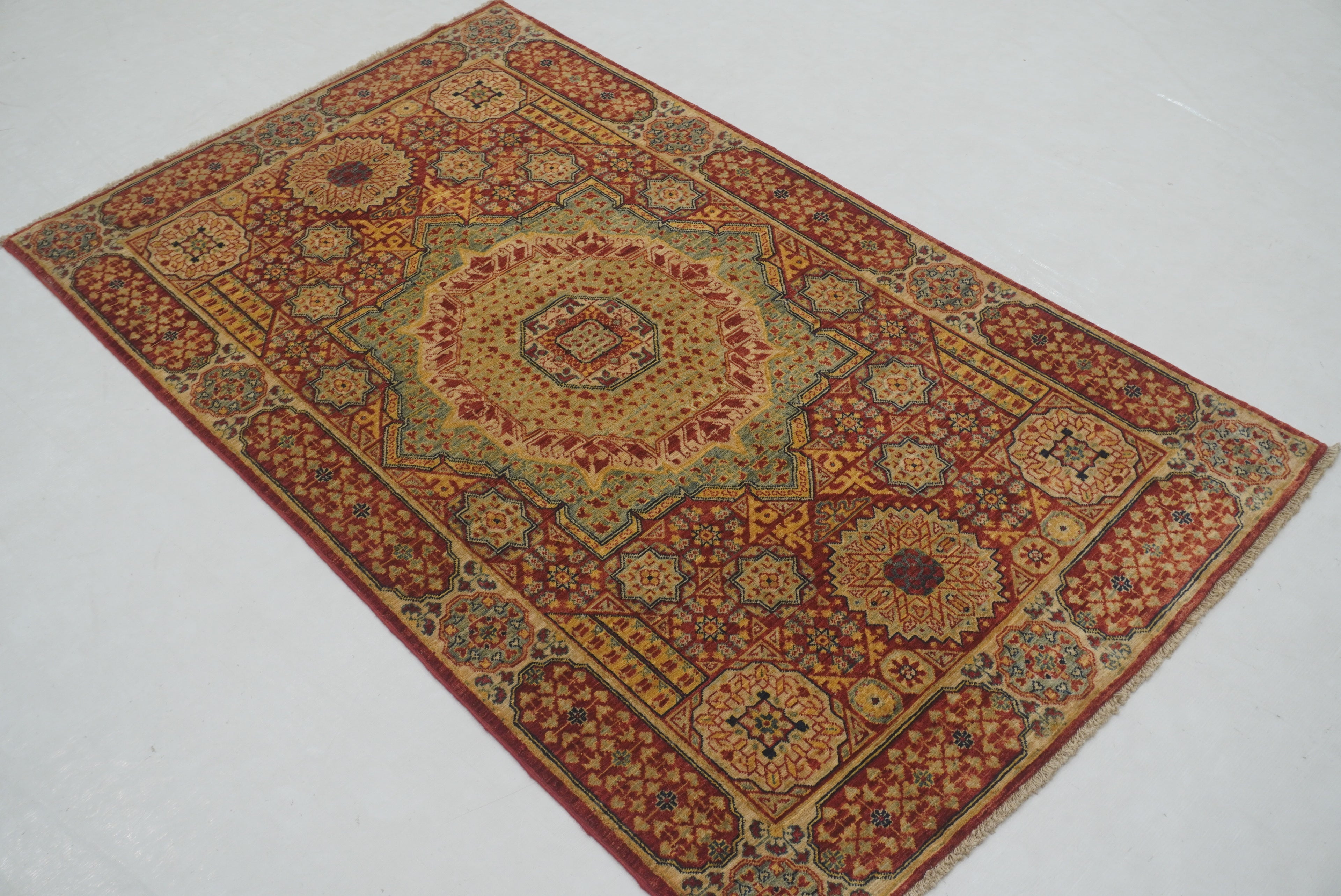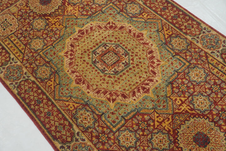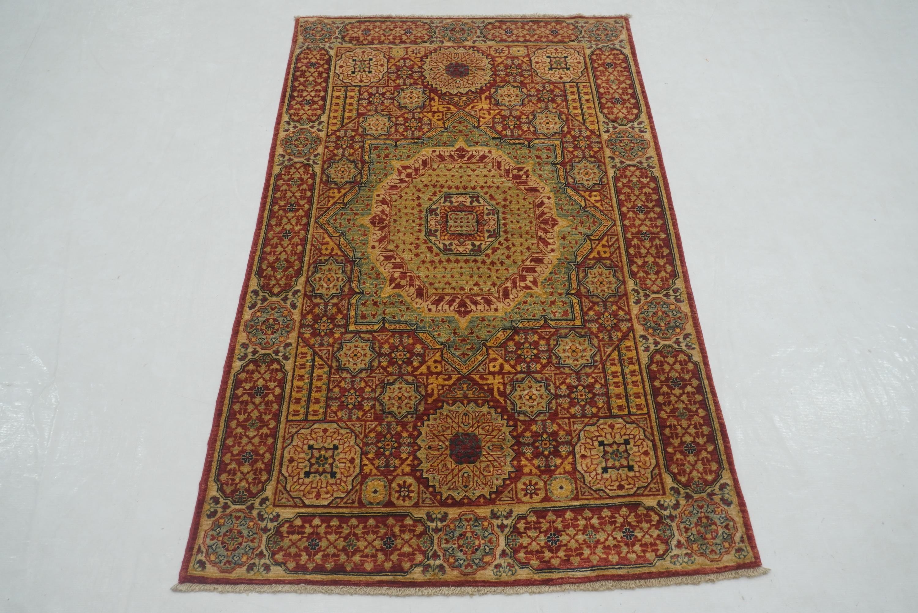 3'5"x5'10" Red Mamluk Hand Knotted Medallion Turkish Rug
