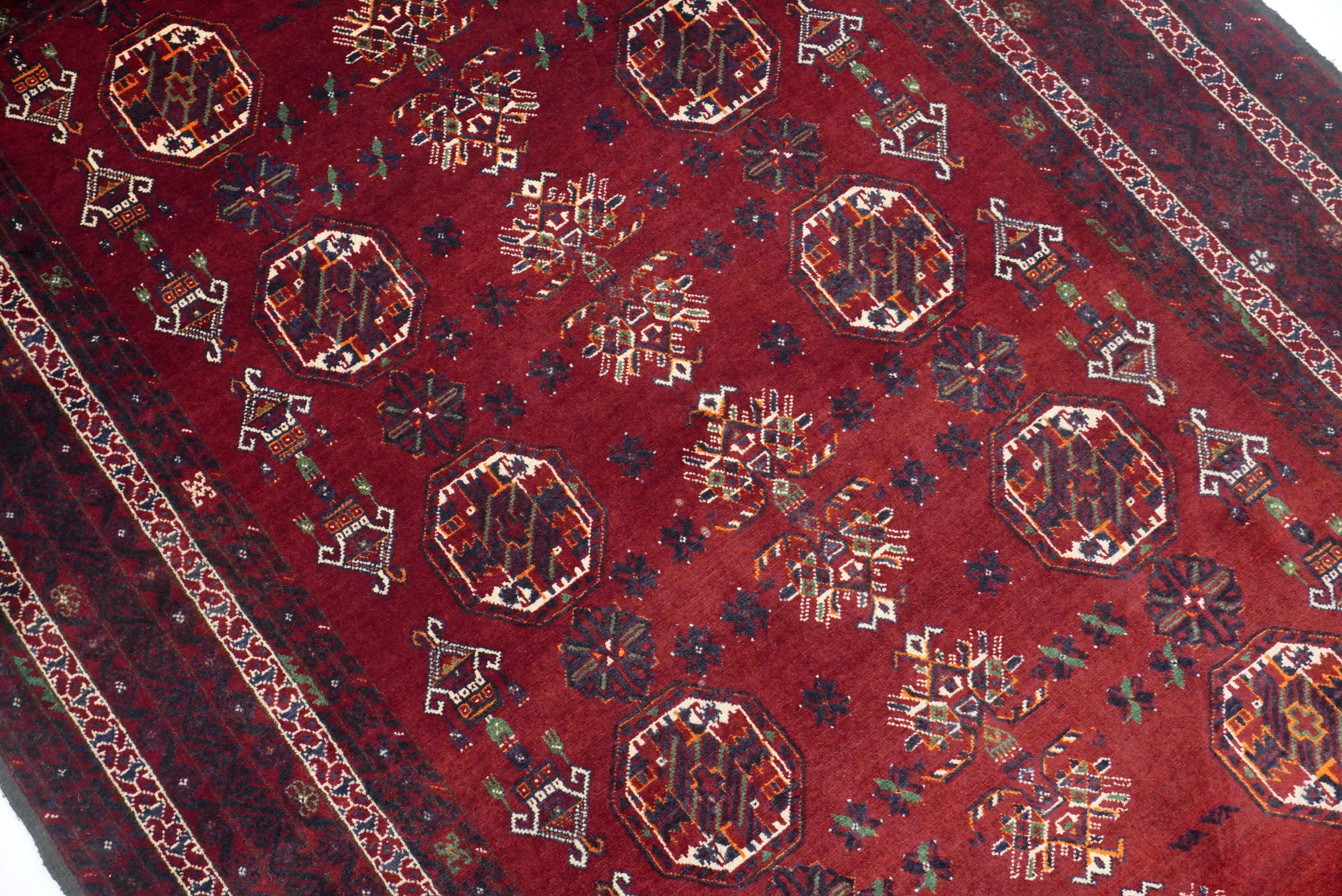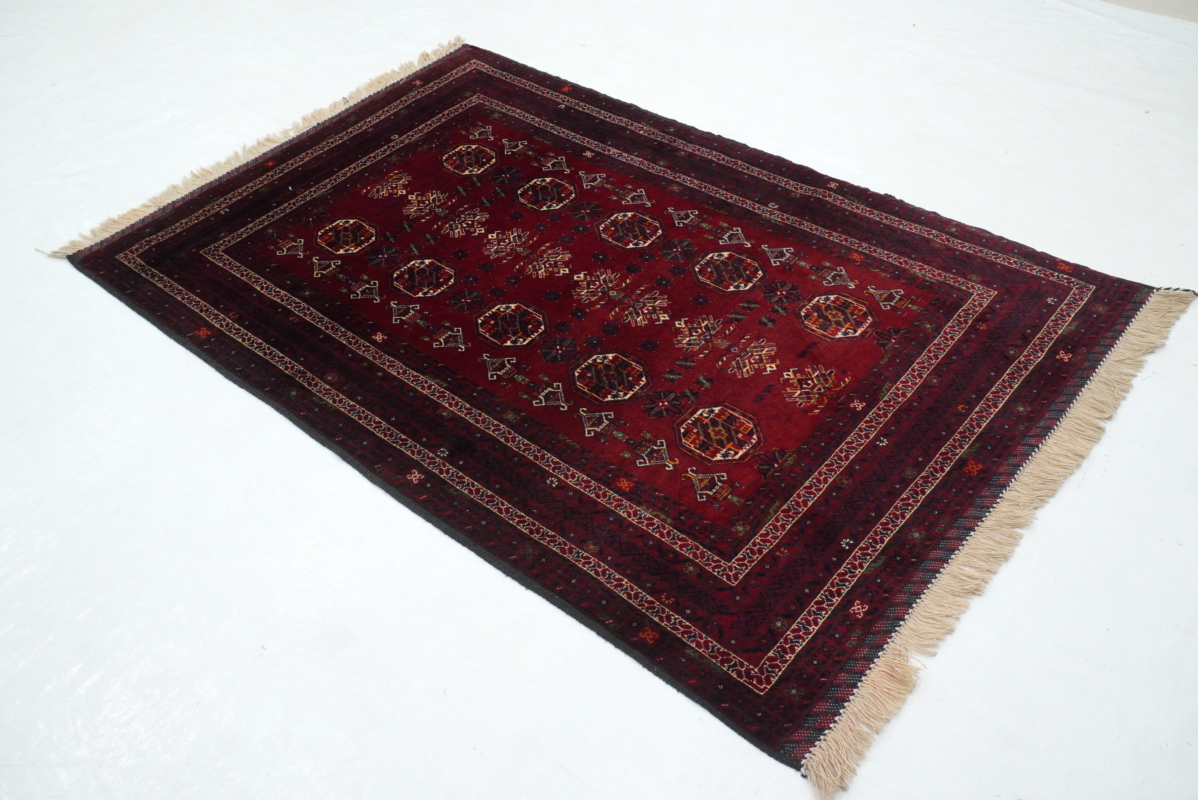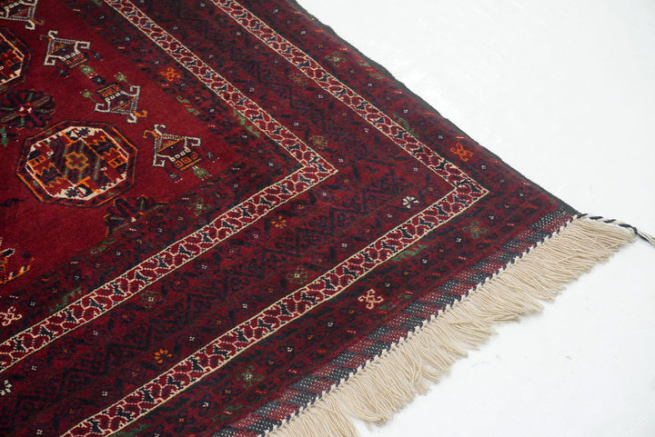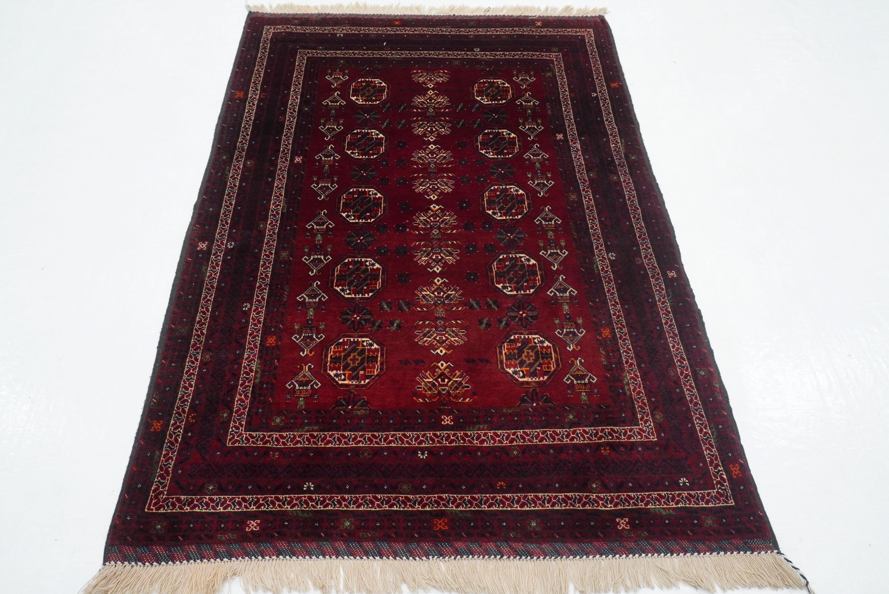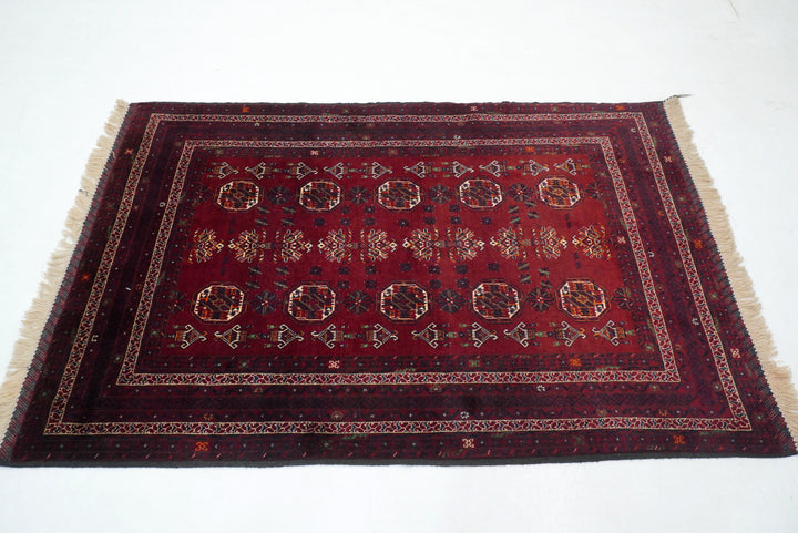 3'7"x5'6" Red Kunduz Afghan hand knotted Rug