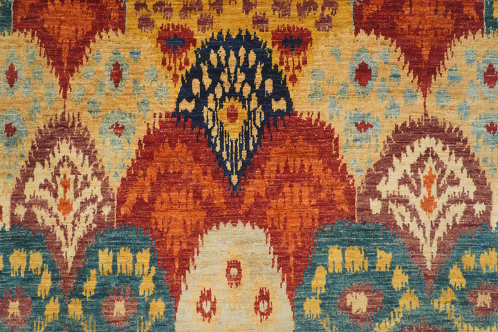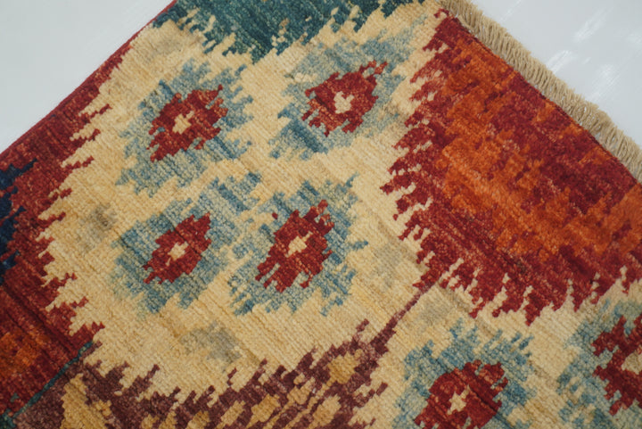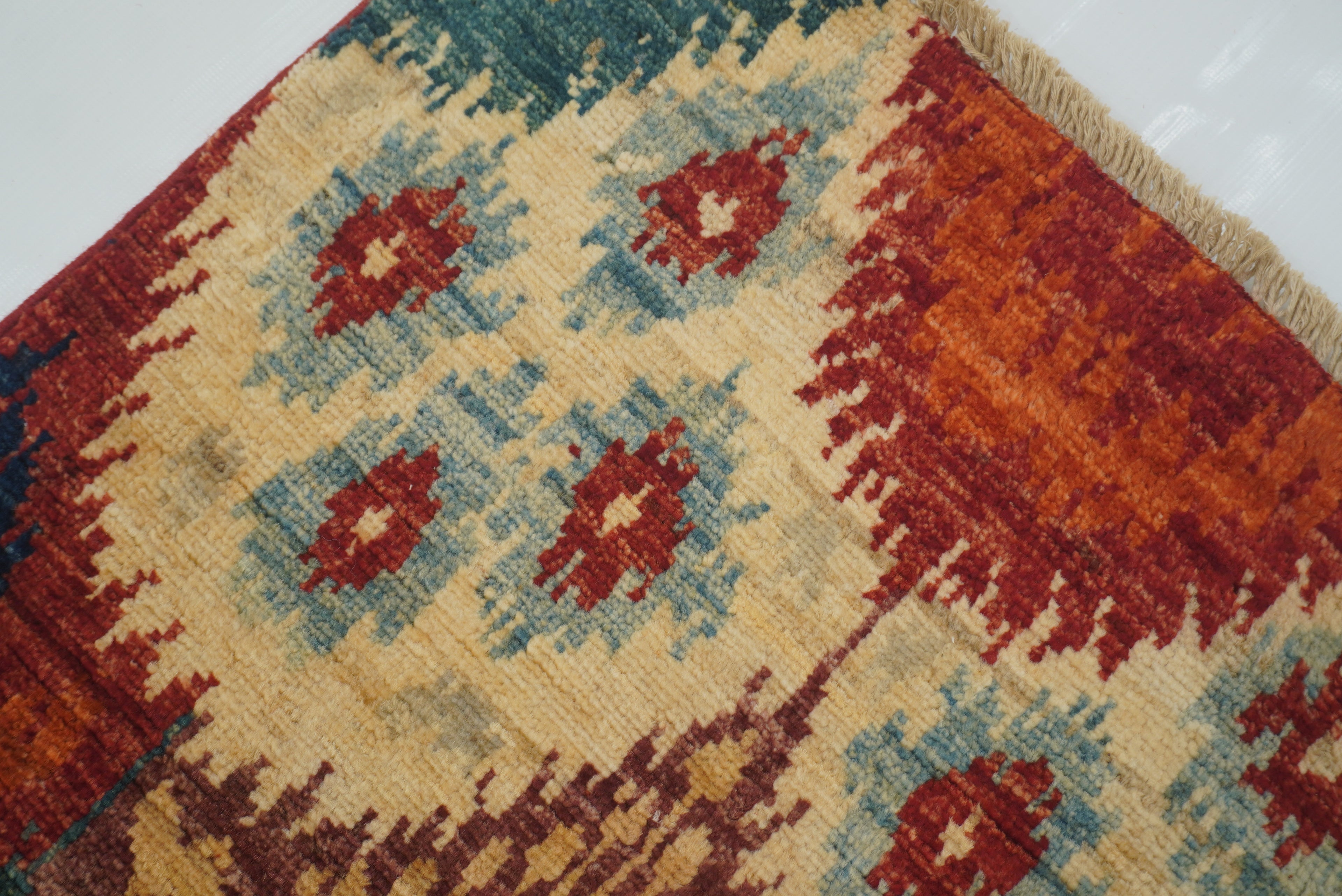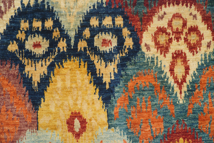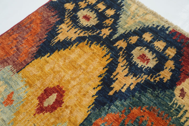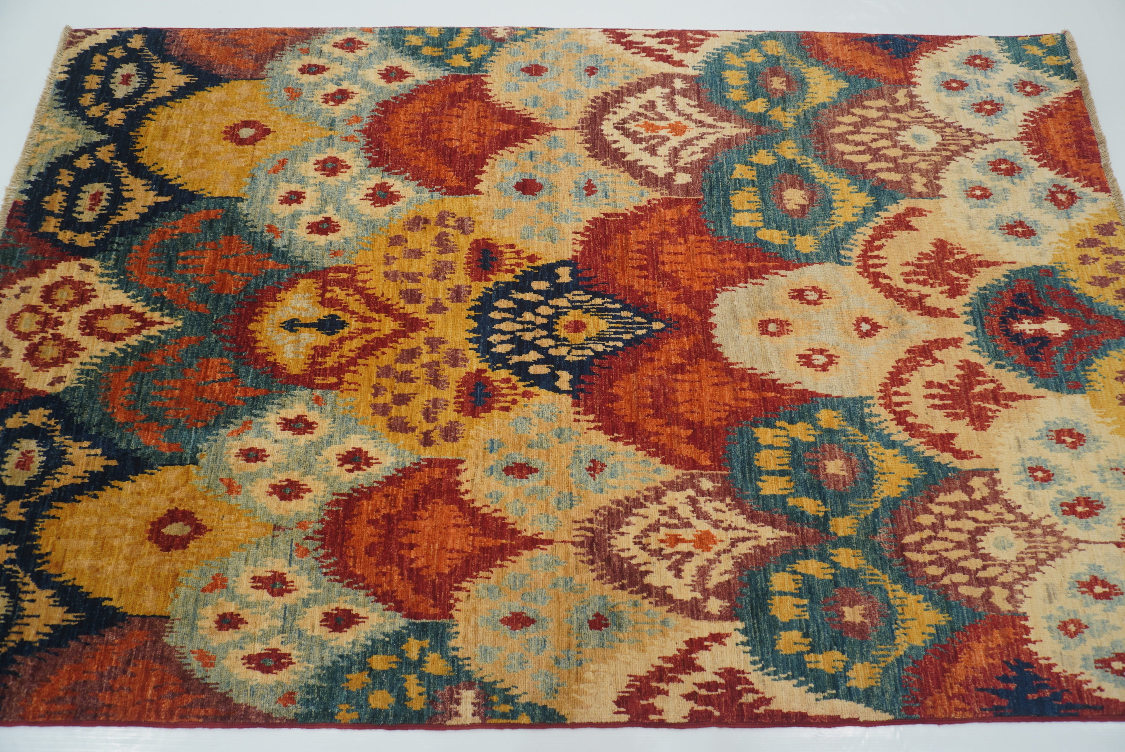 3'9"x5'11" Ikat Multicolor Afghan Hand Knotted Rug
