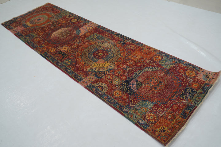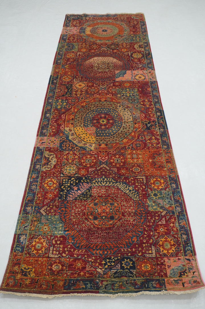 3x10 Red Mamluk Turkish Hand knotted Medallion Runner Rug