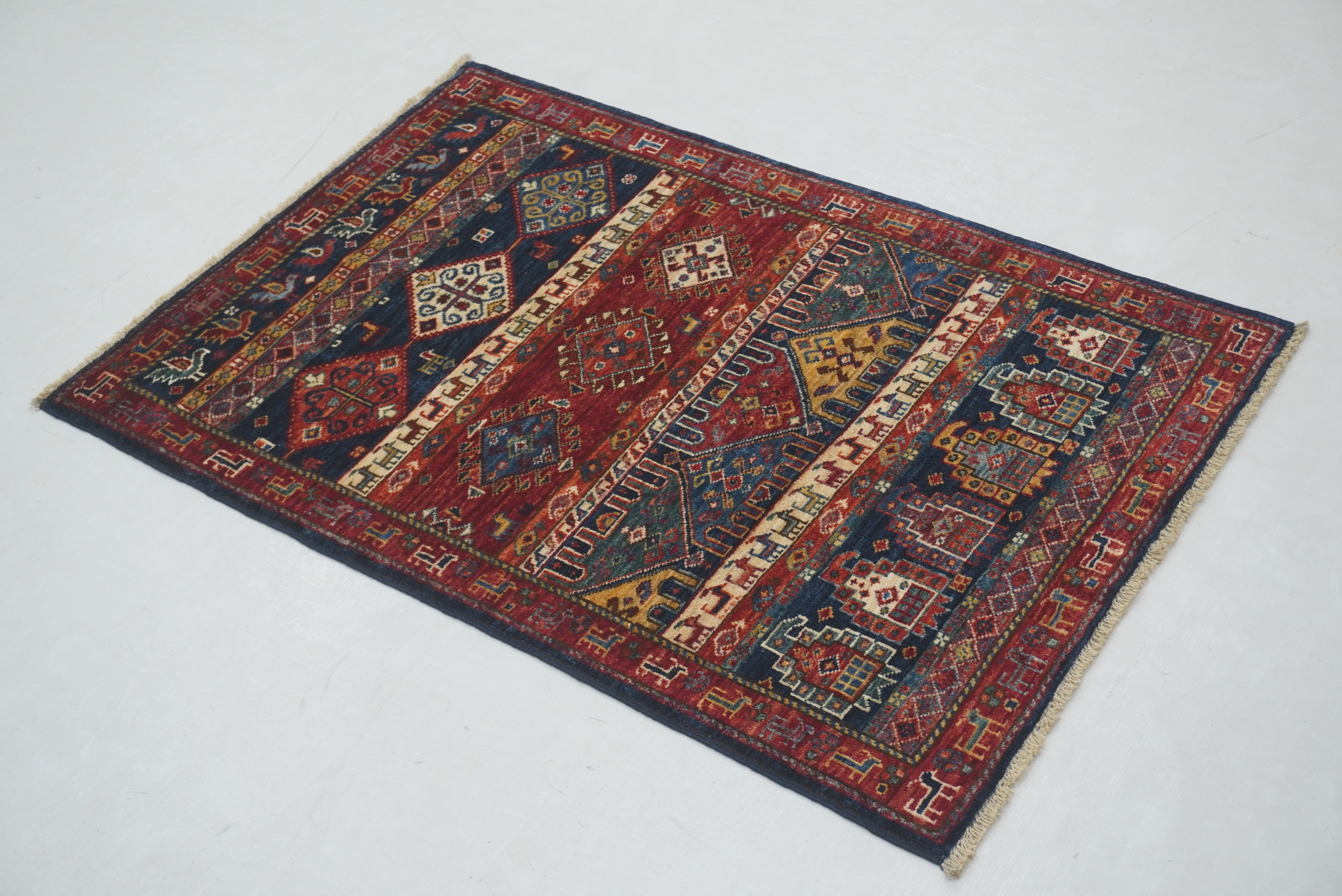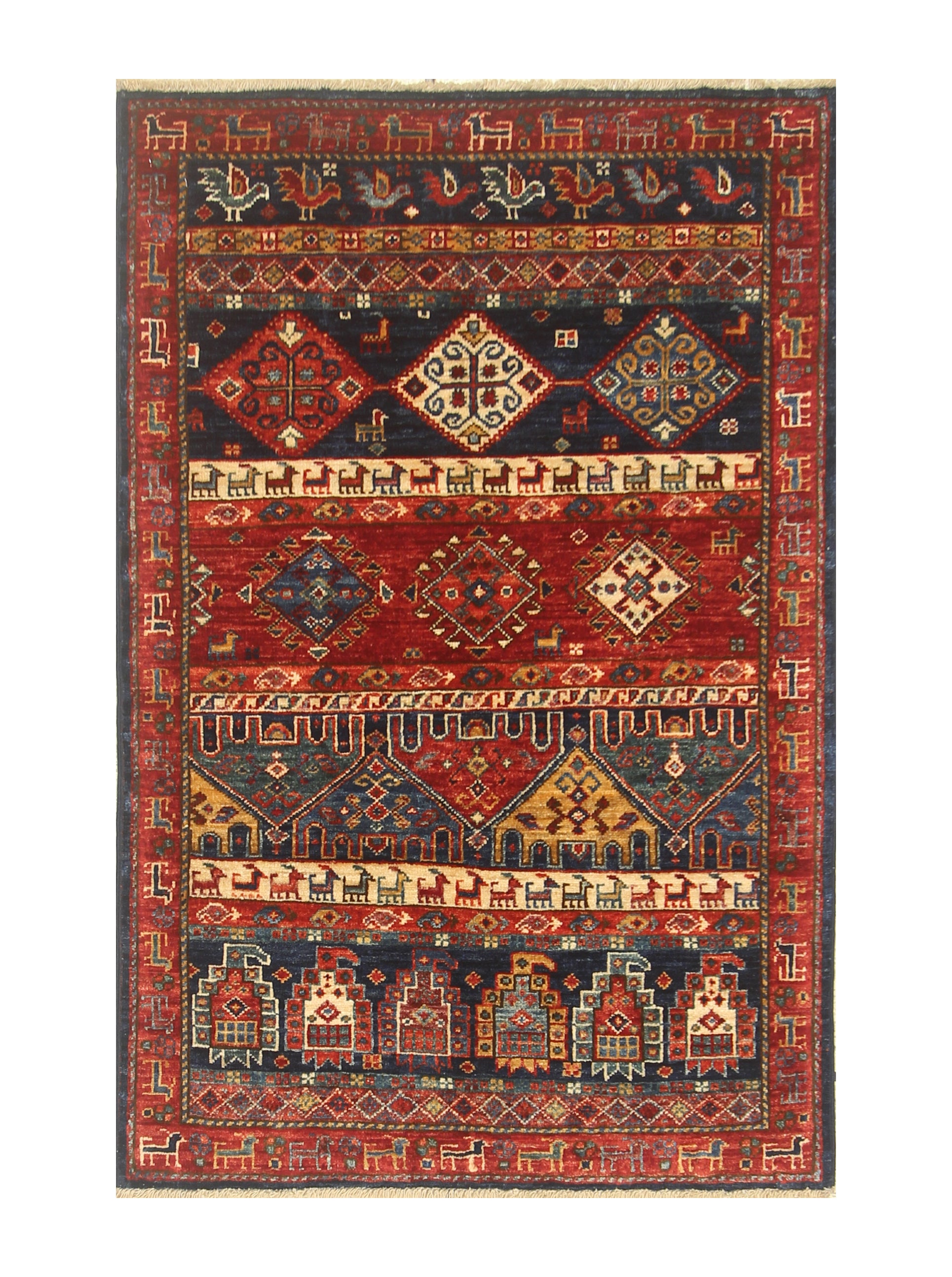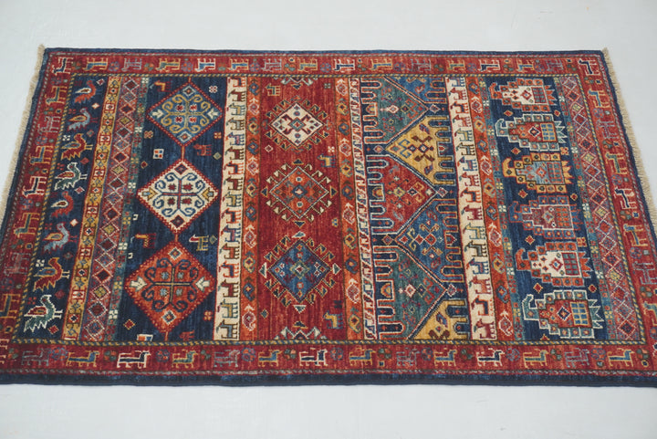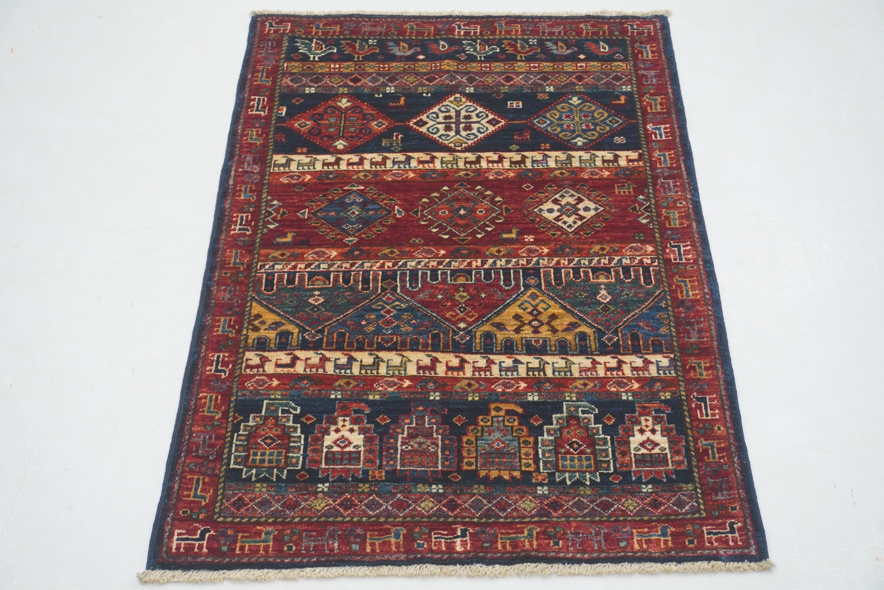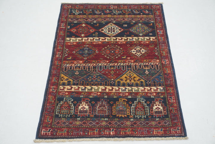 3x4 Blue Gabbeh Nomadic Tribal Afghan Hand knotted Rug