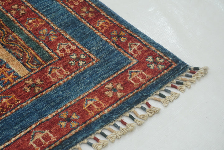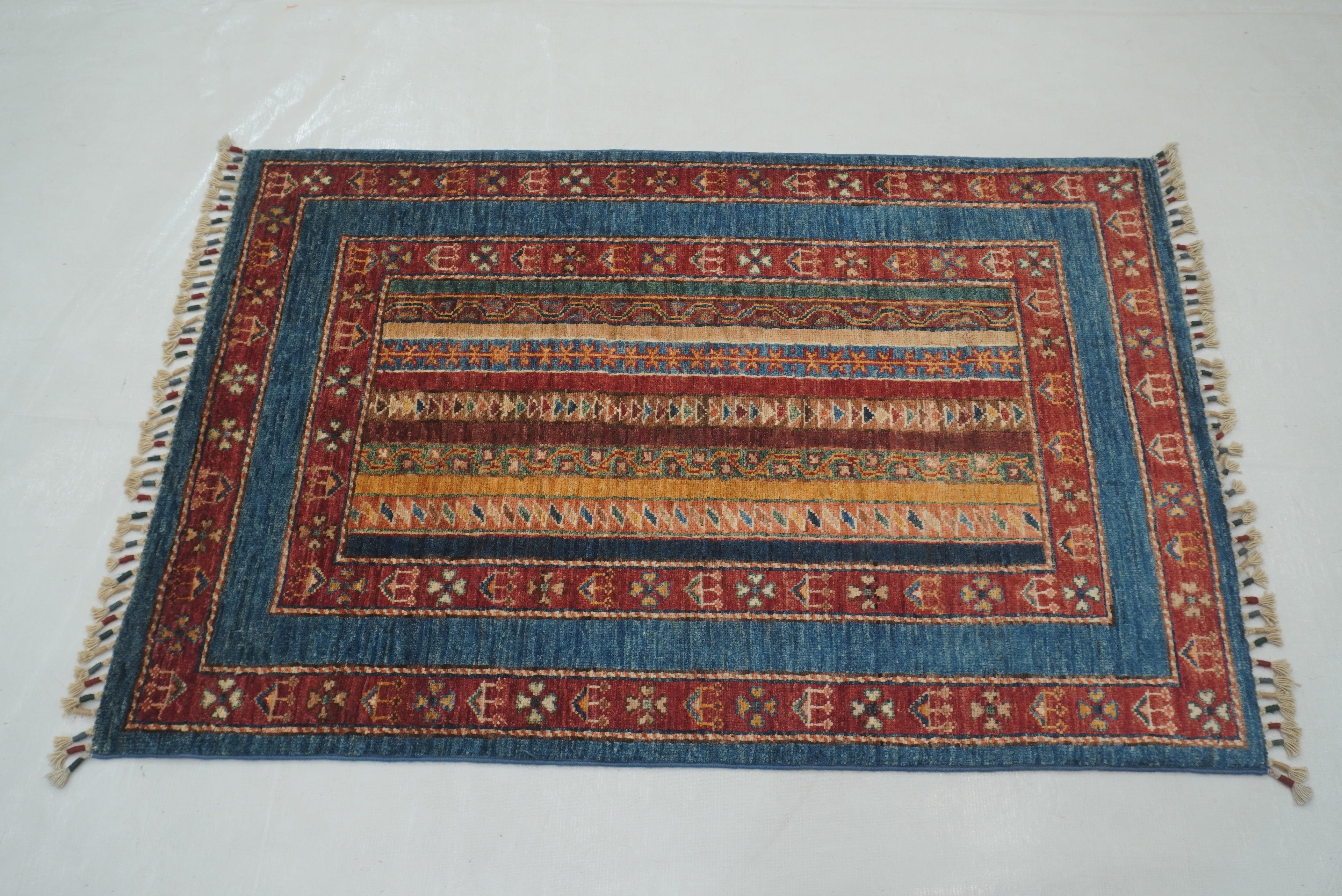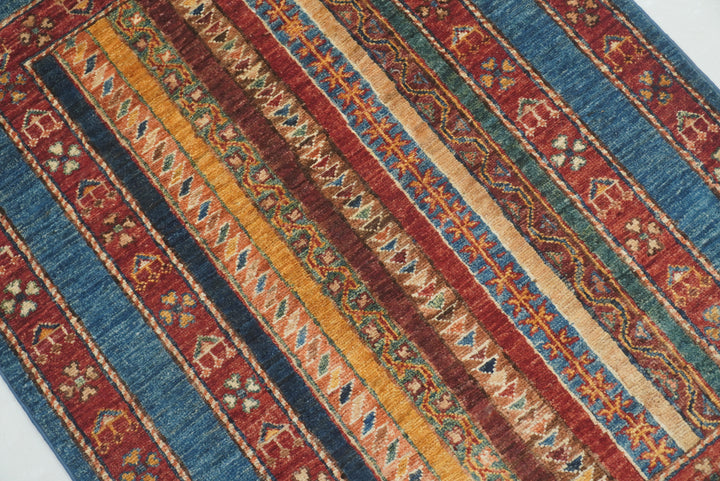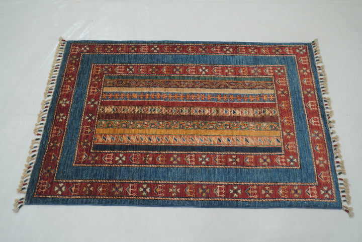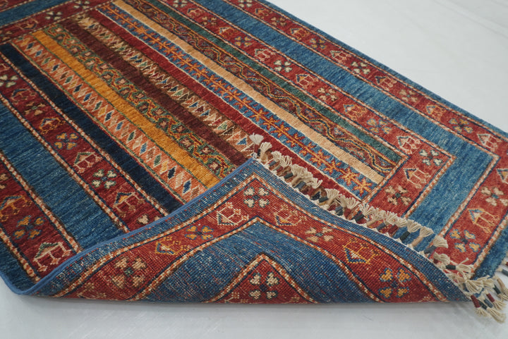3x4 Blue Turkish Striped Shawl Pattern Hand knotted Rug