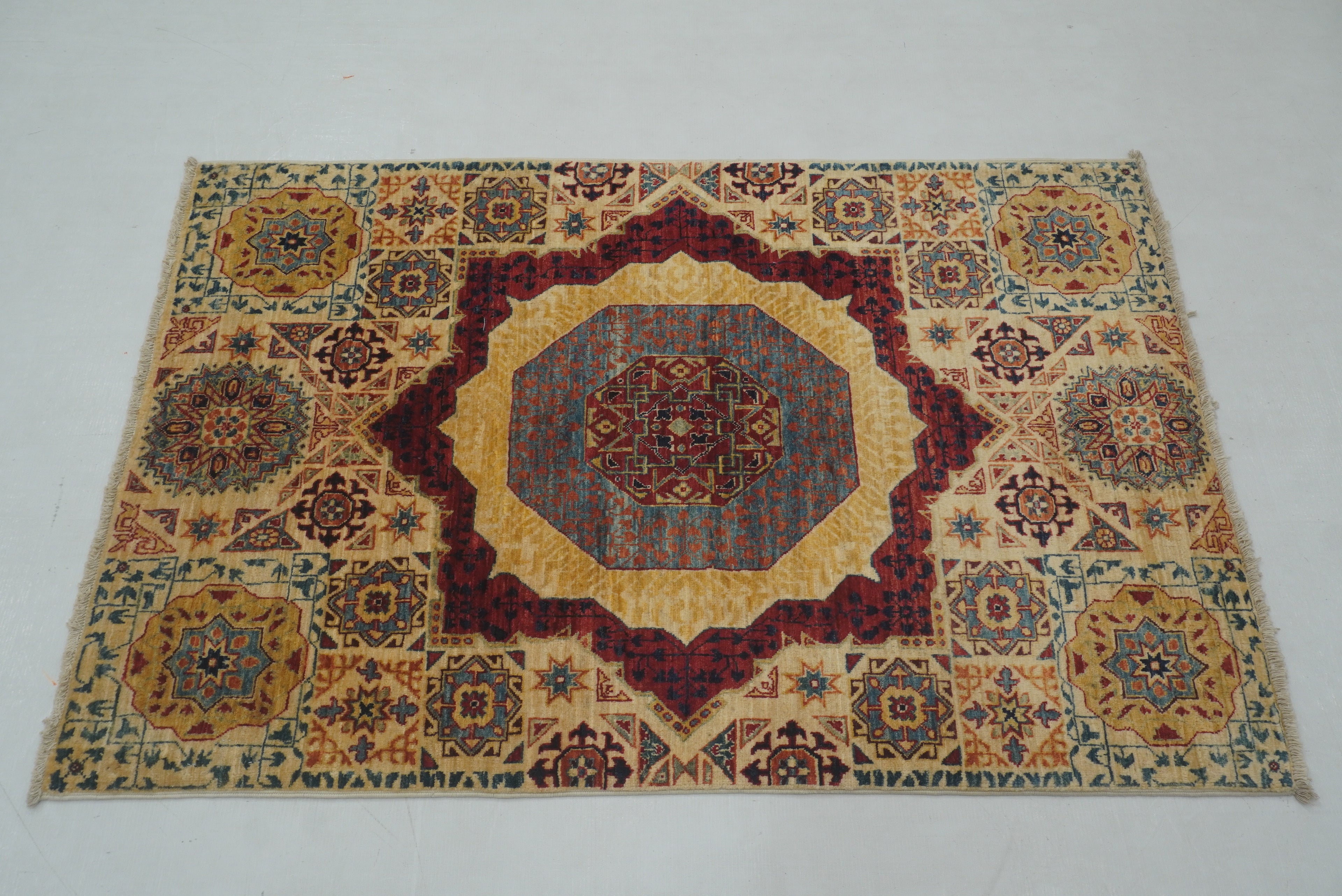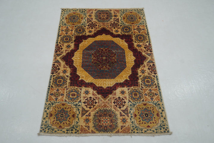 3x4 Ivory Beige Hand knotted Turkish Mamluk Rug