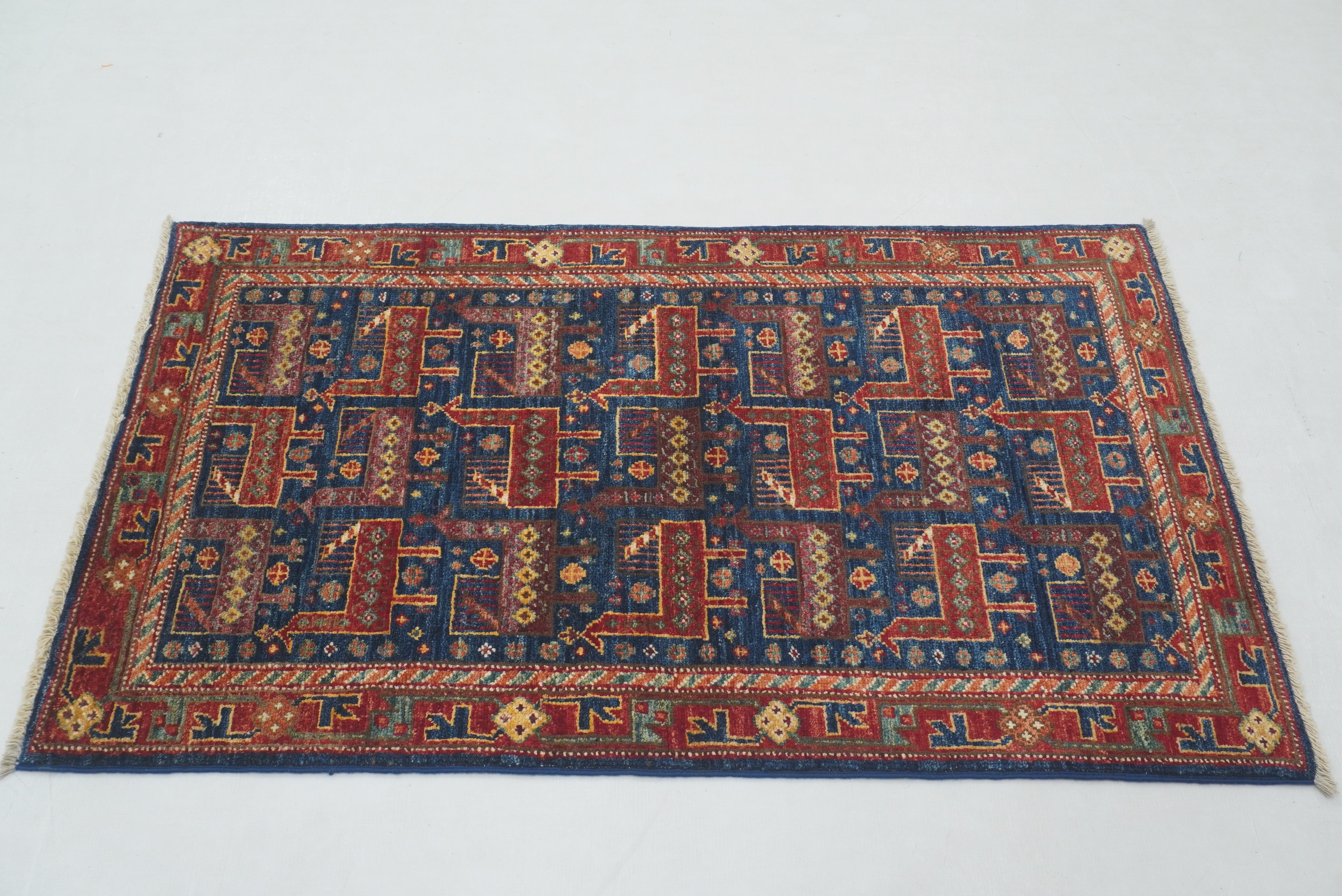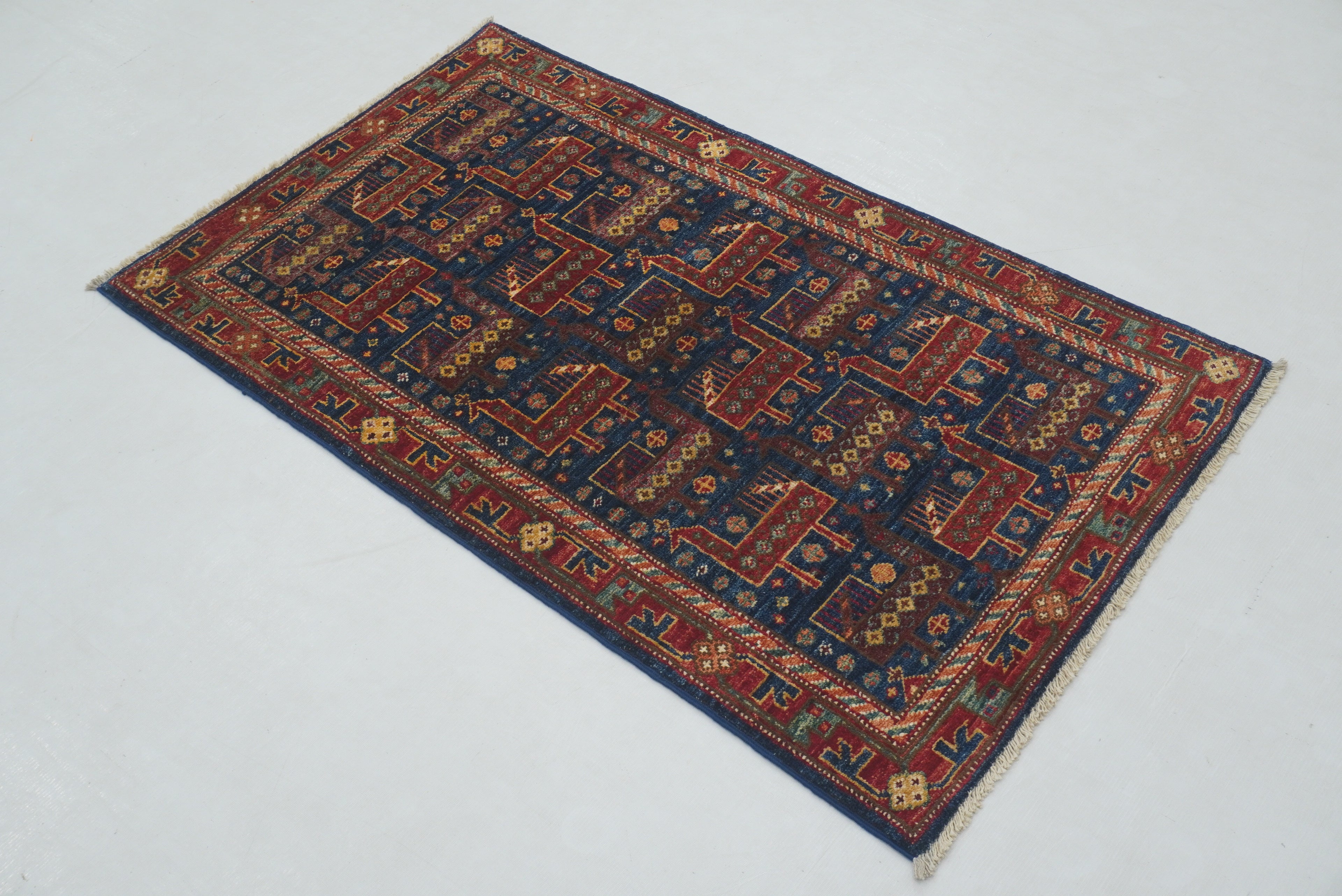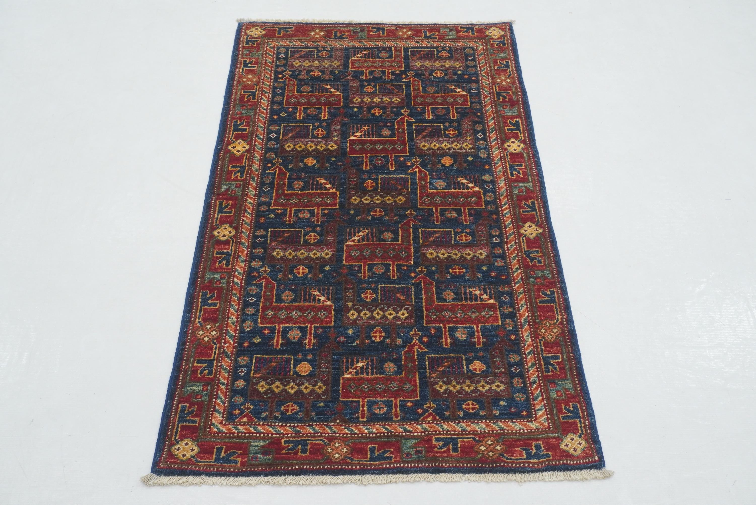 3x4 Navy Blue Timur Baluch Afghan Hand knotted Rug