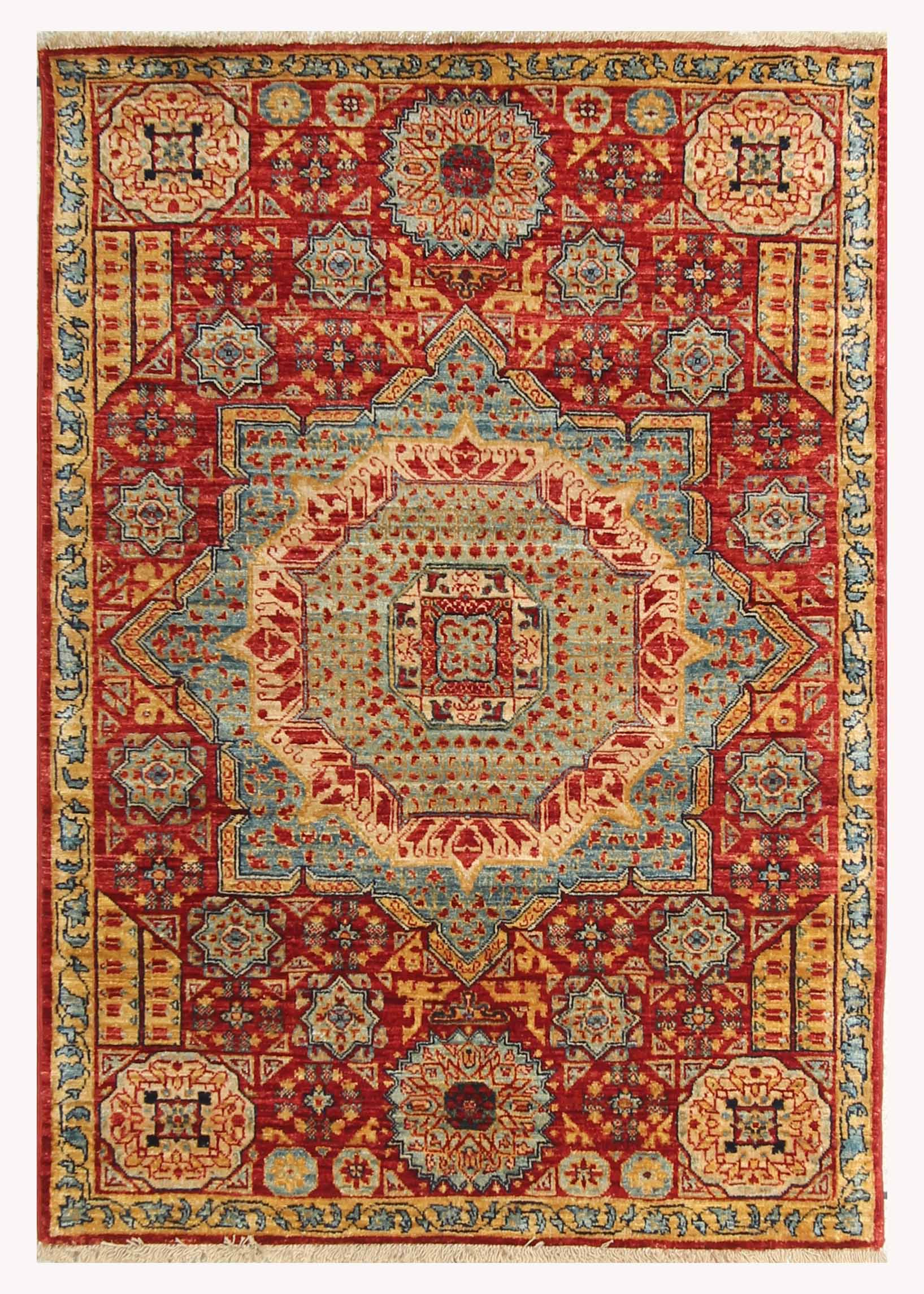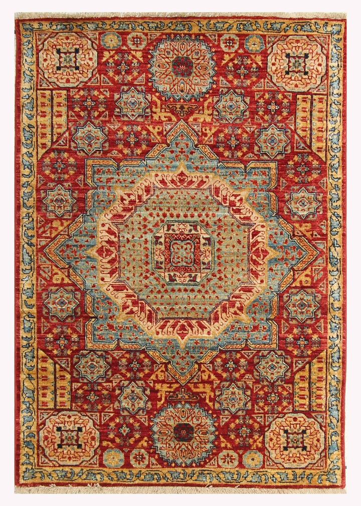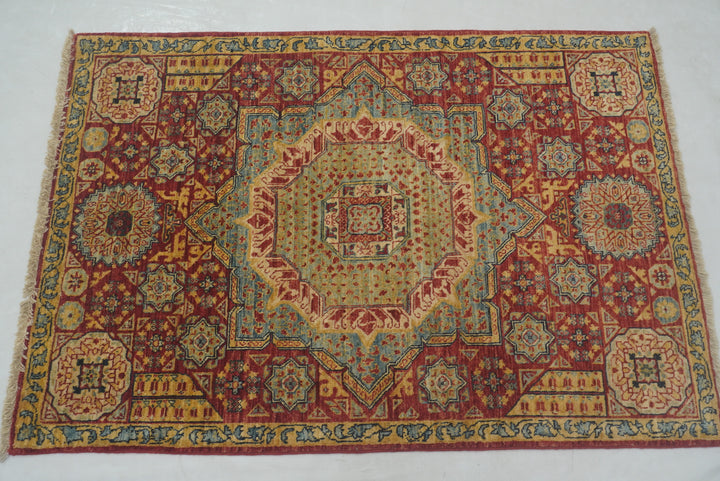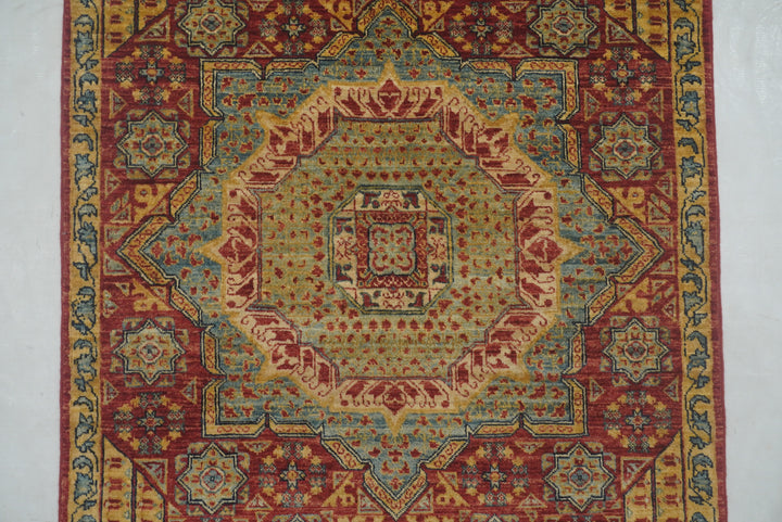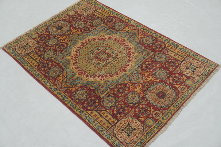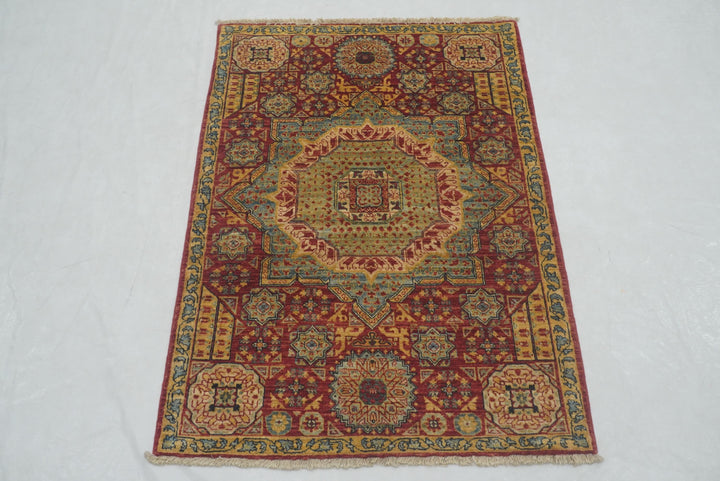 3x4 Red Mamluk Hand knotted Geometric Medallion Turkish Rug