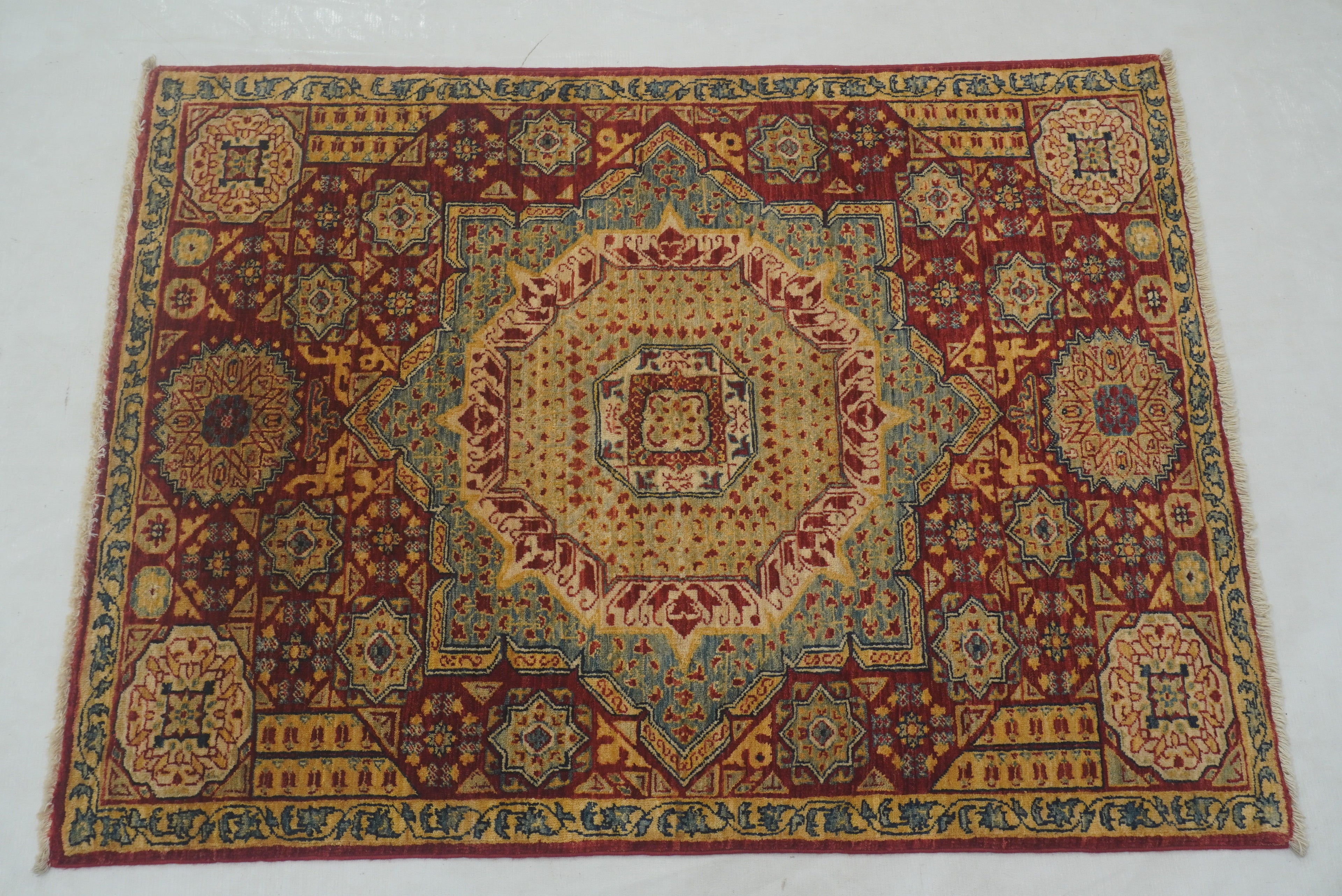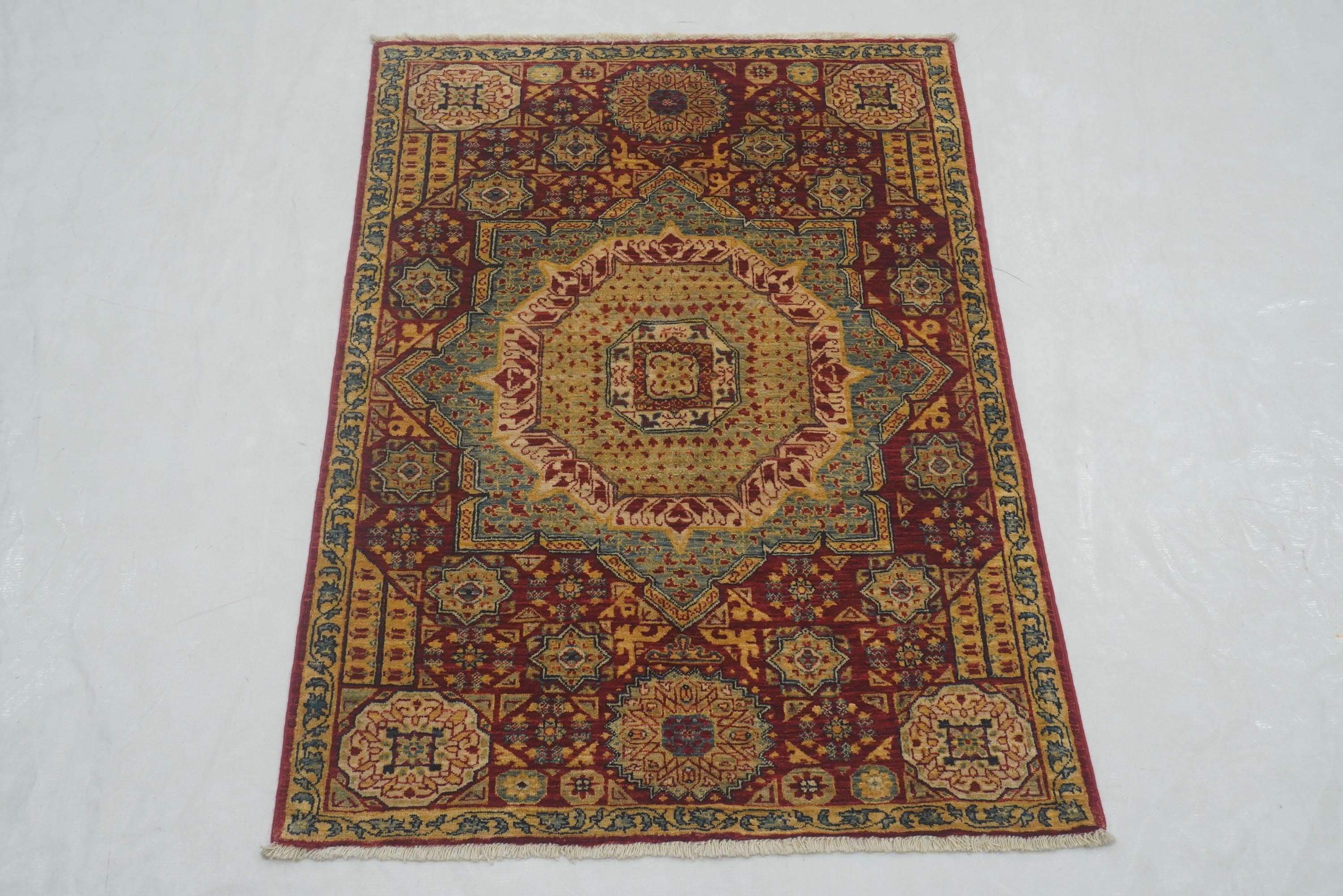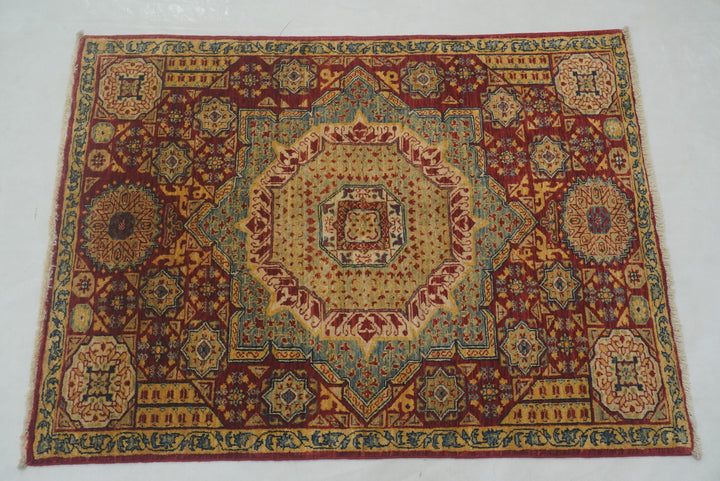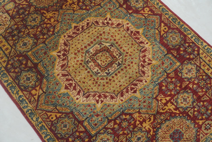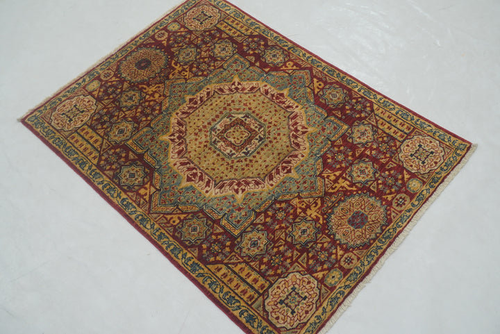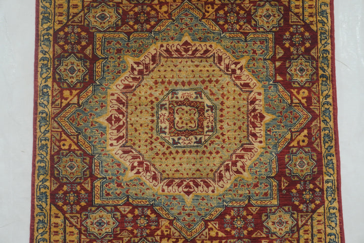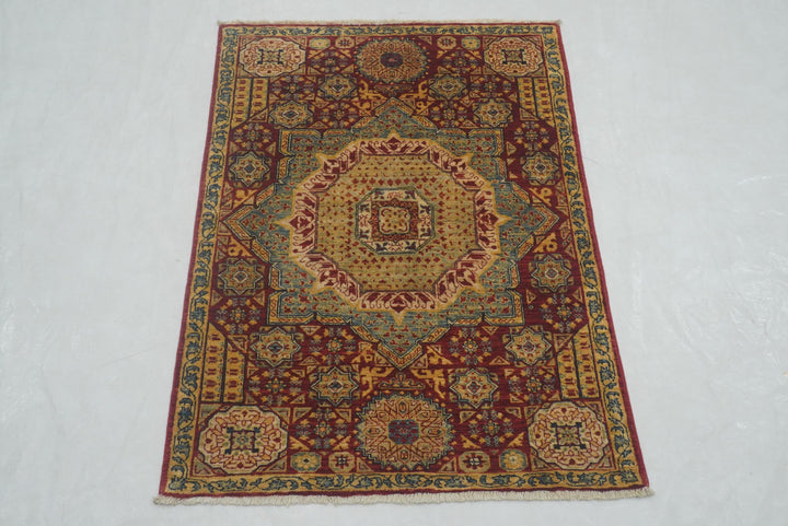 3x4 Red Mamluk Hand knotted Geometric Medallion Turkish Rug