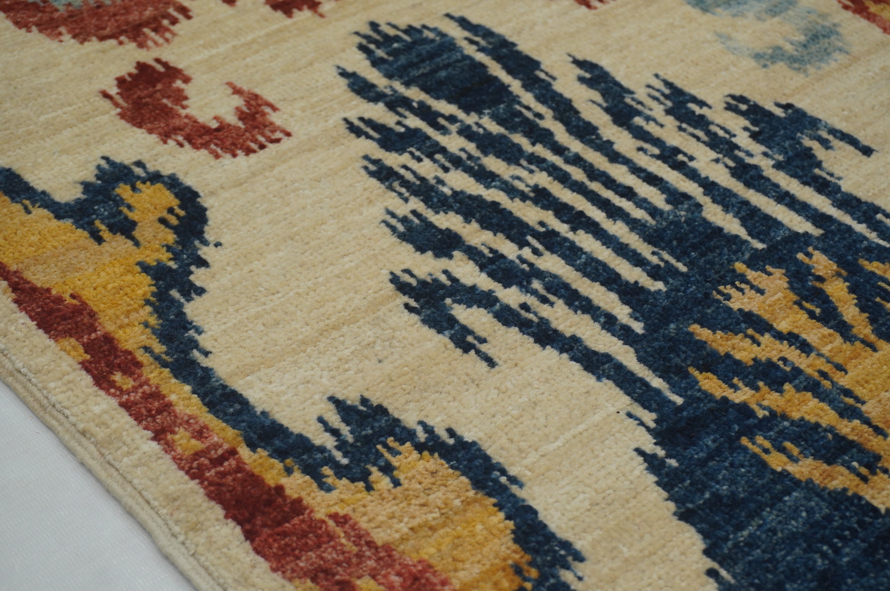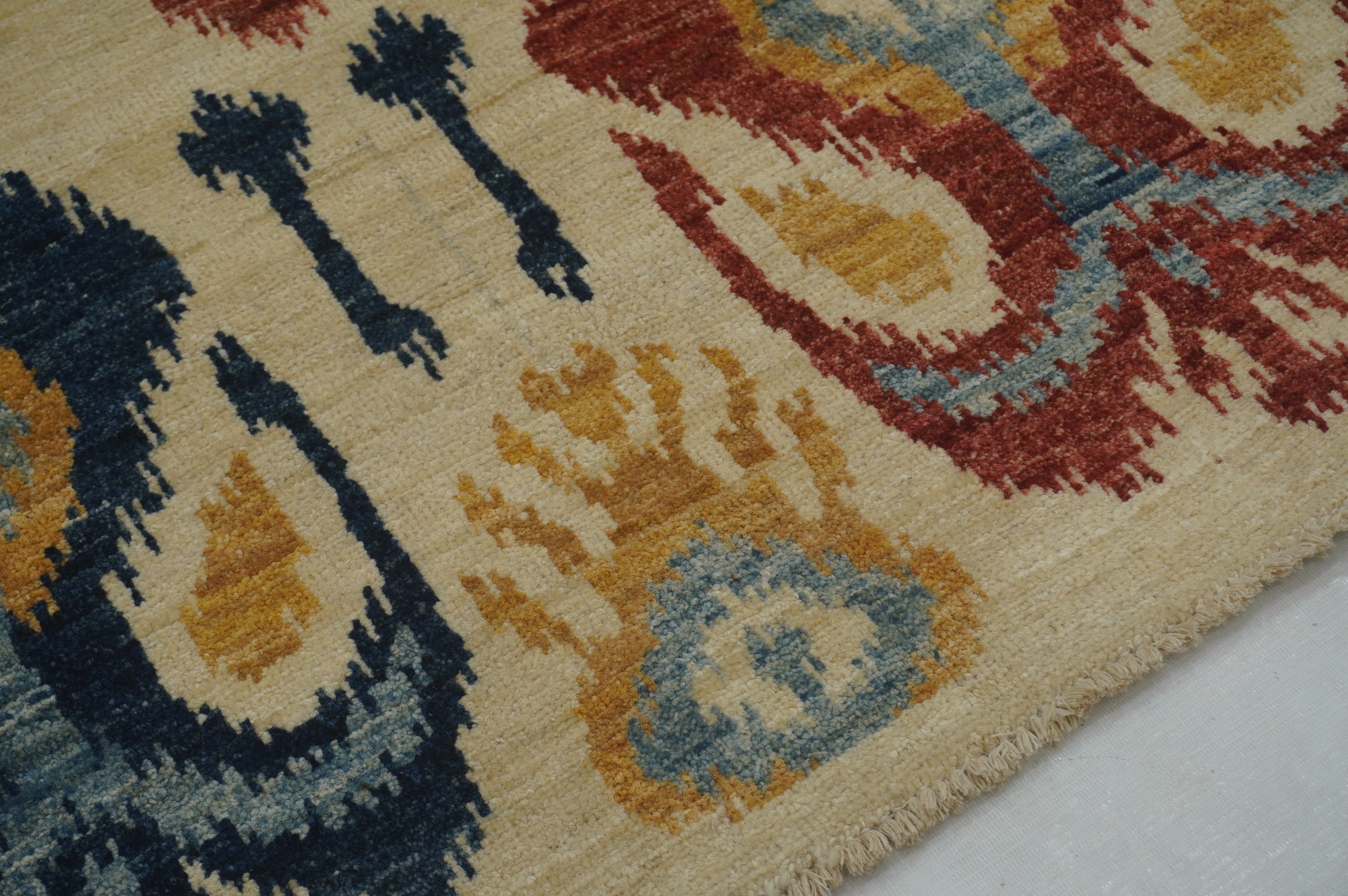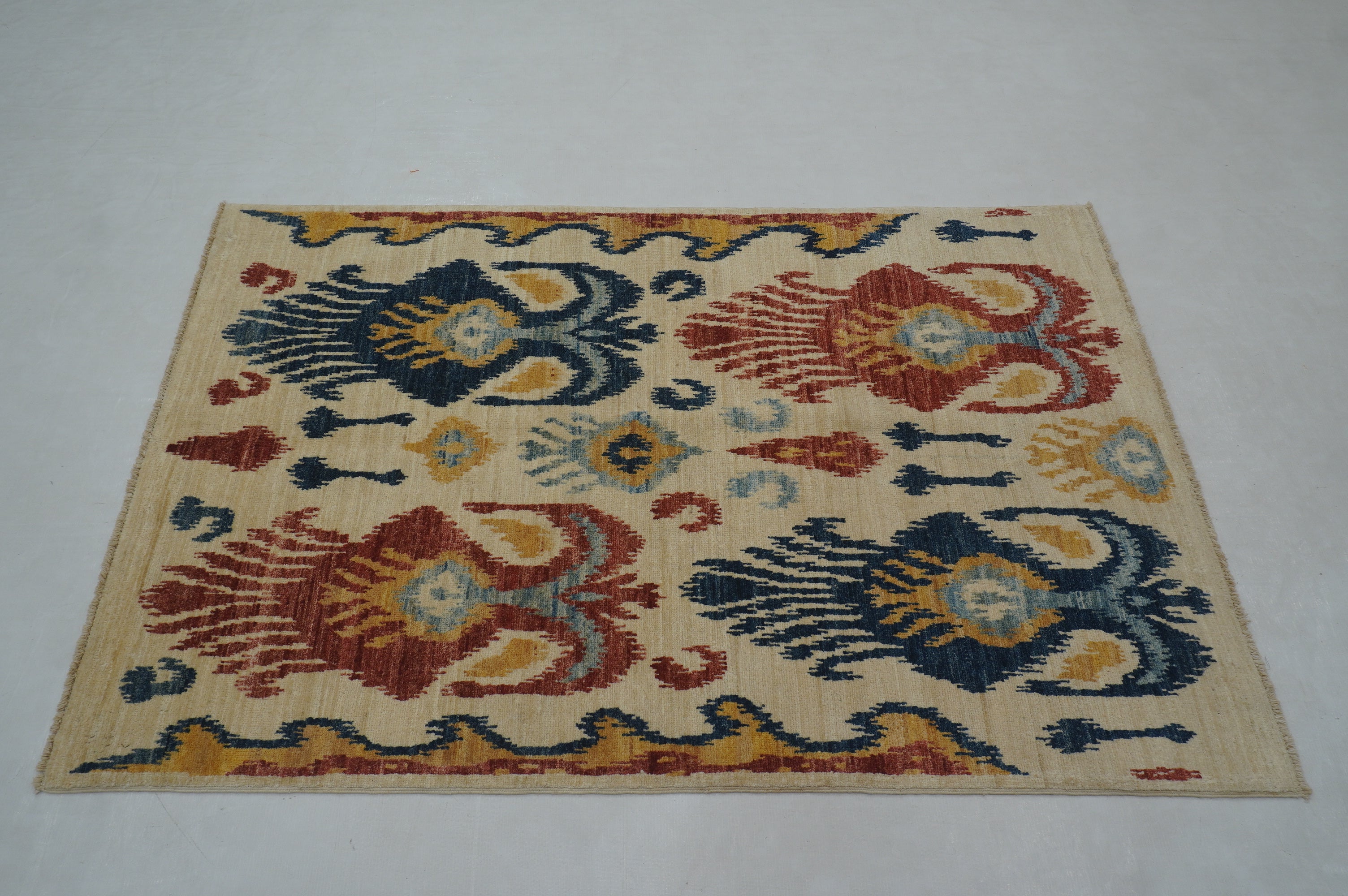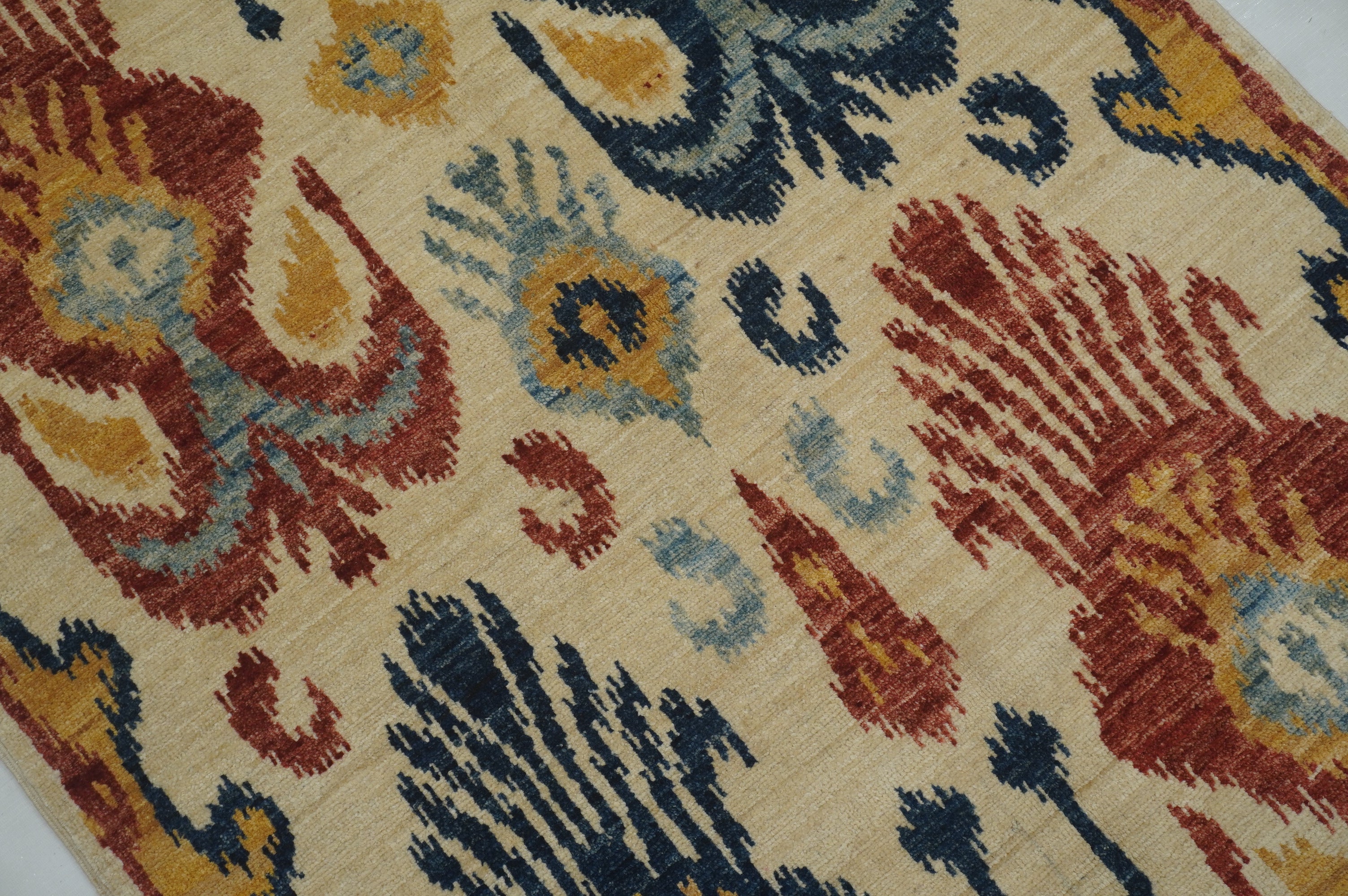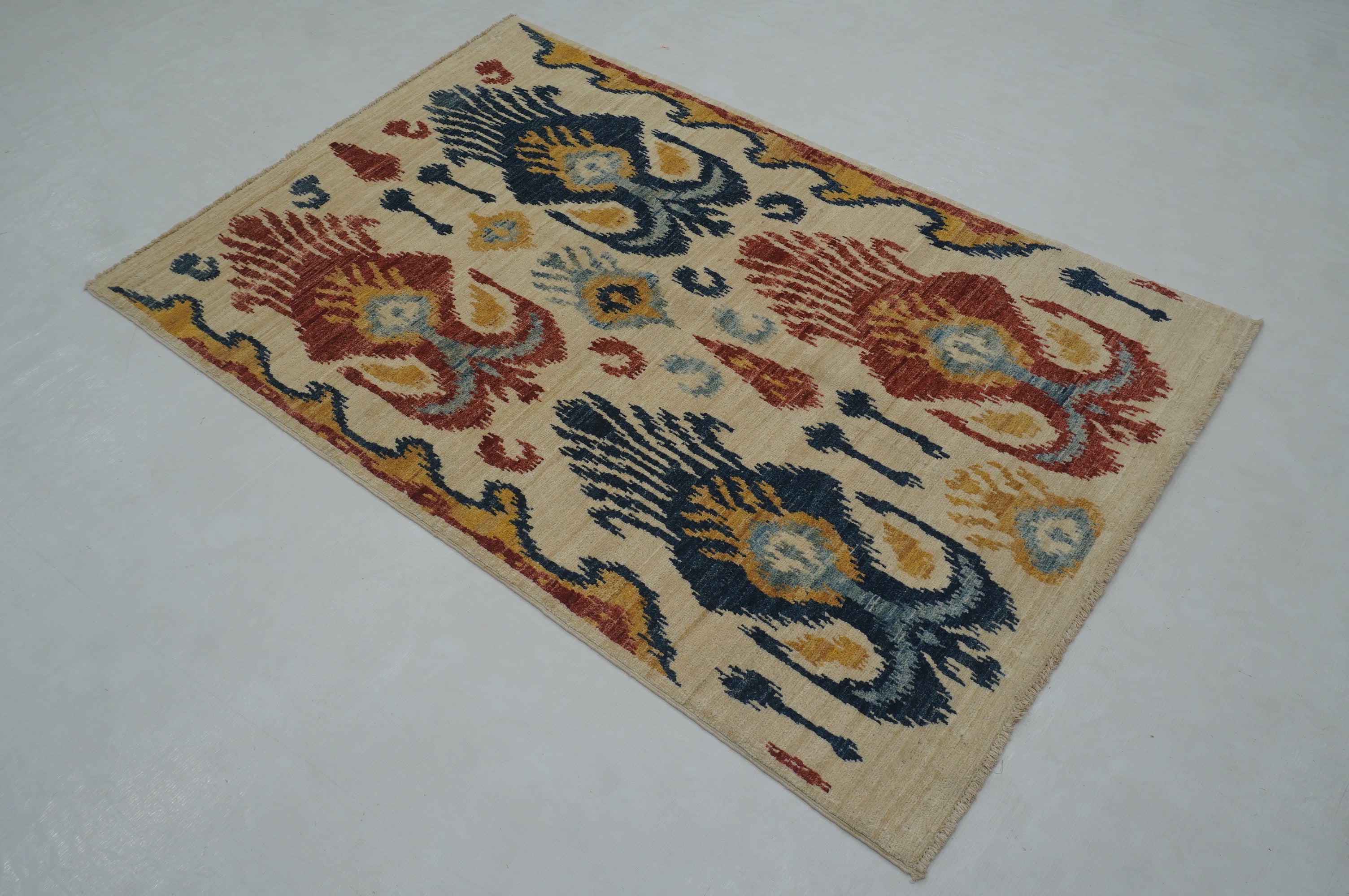 3x5 Beige Ikat Afghan Hand Knotted Rug