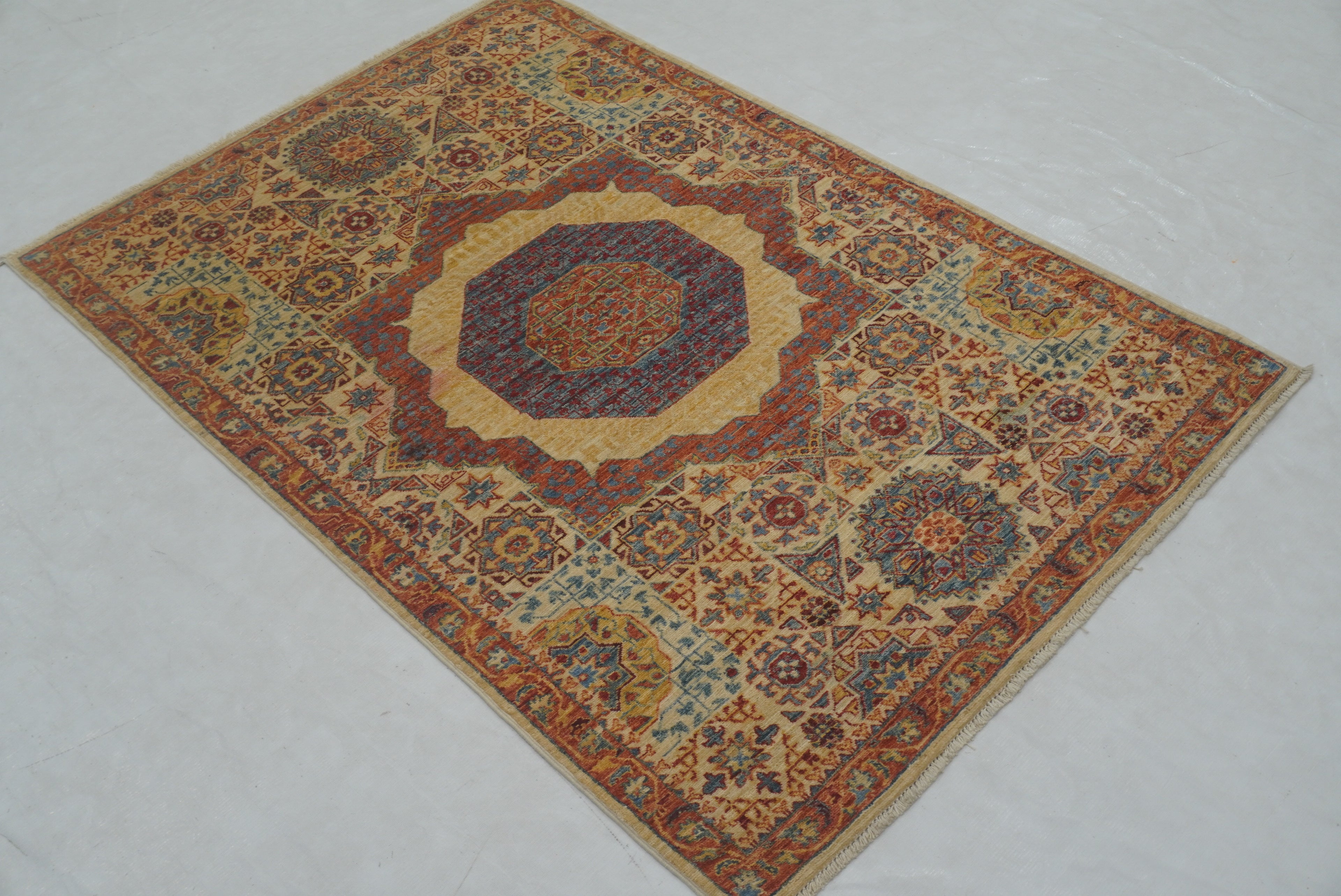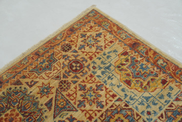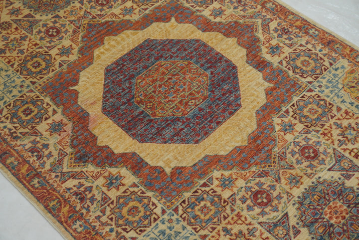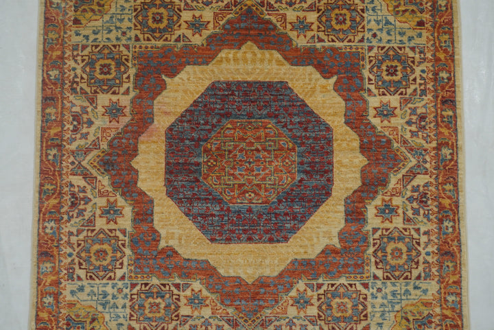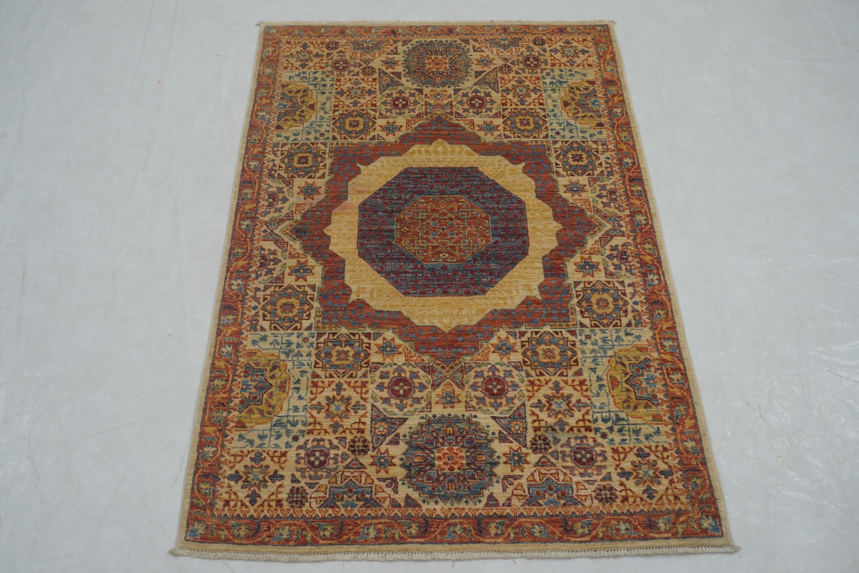 3x5 Beige Mamluk Turkish Hand knotted Geometric Medallion Rug