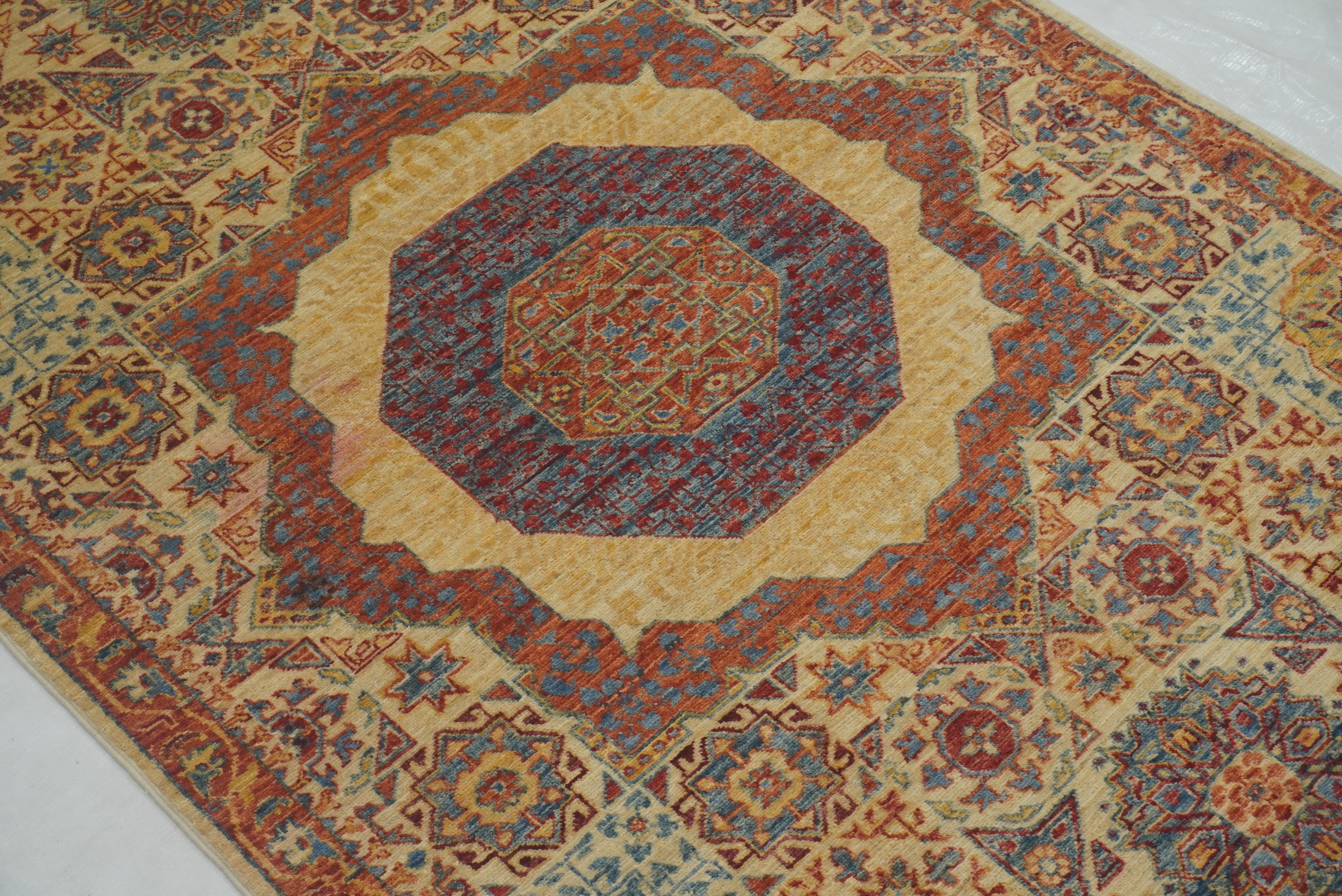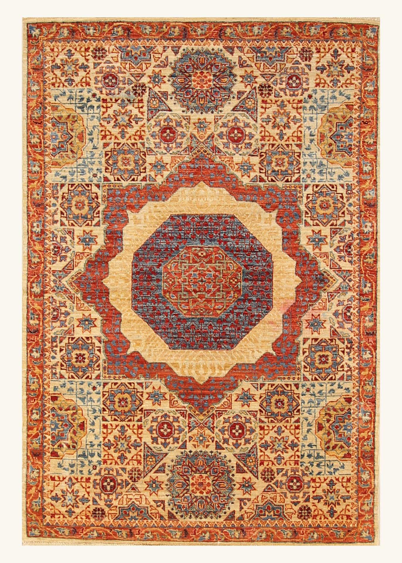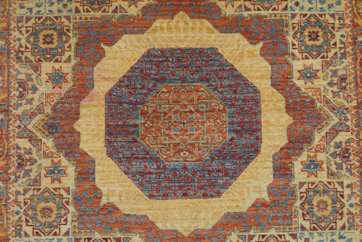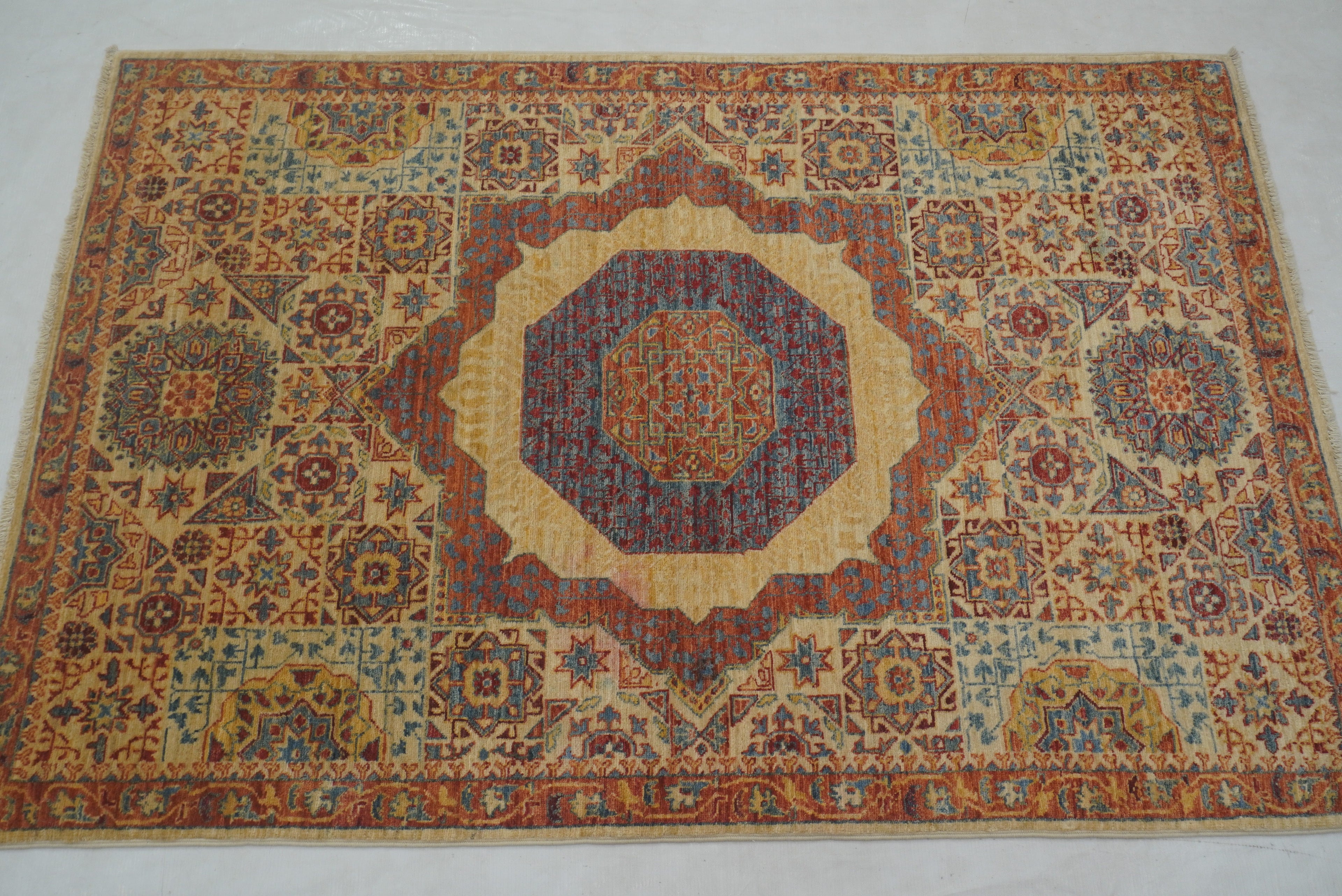 3x5 Beige Mamluk Turkish Hand knotted Geometric Medallion Rug