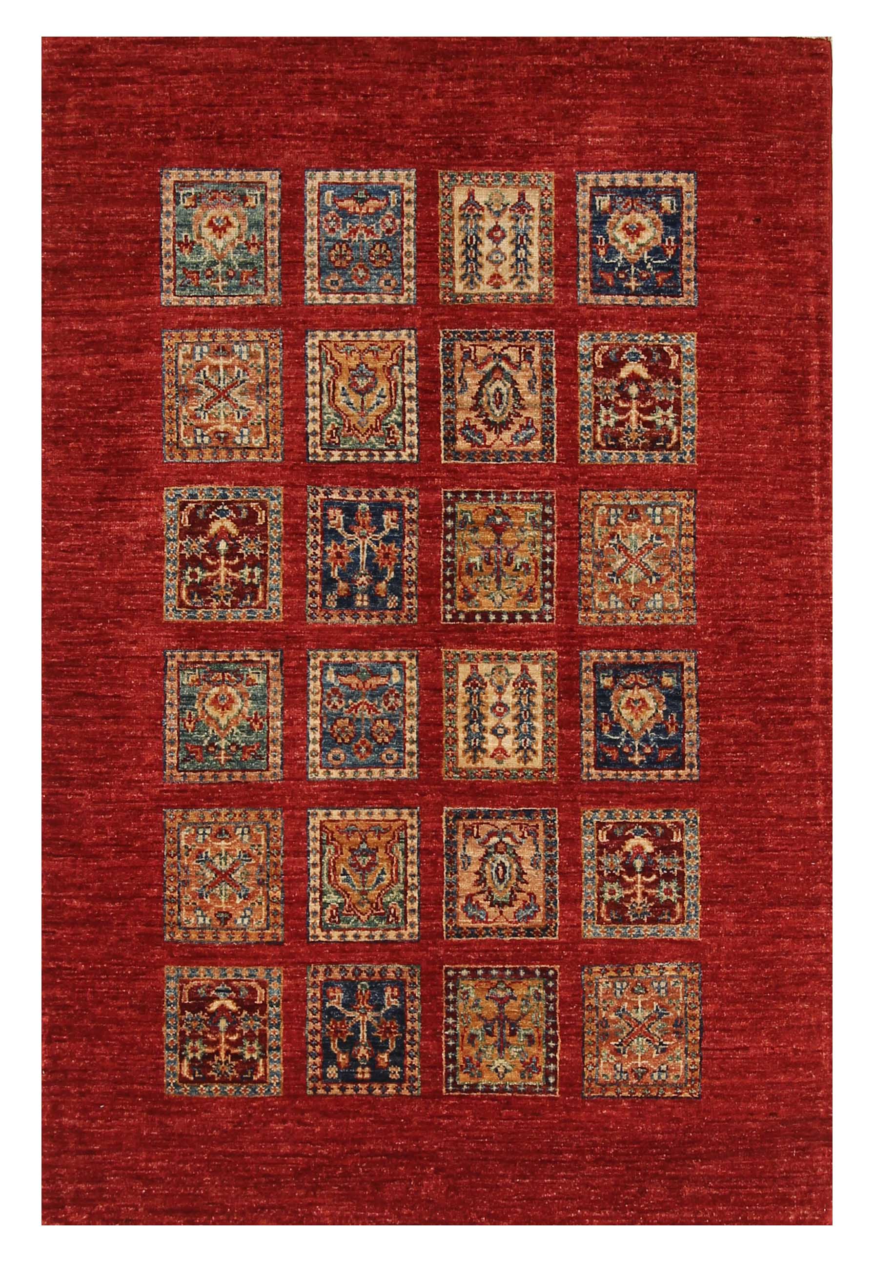 3x5 Red Bakhtiar Afghan Hand Knotted Rug