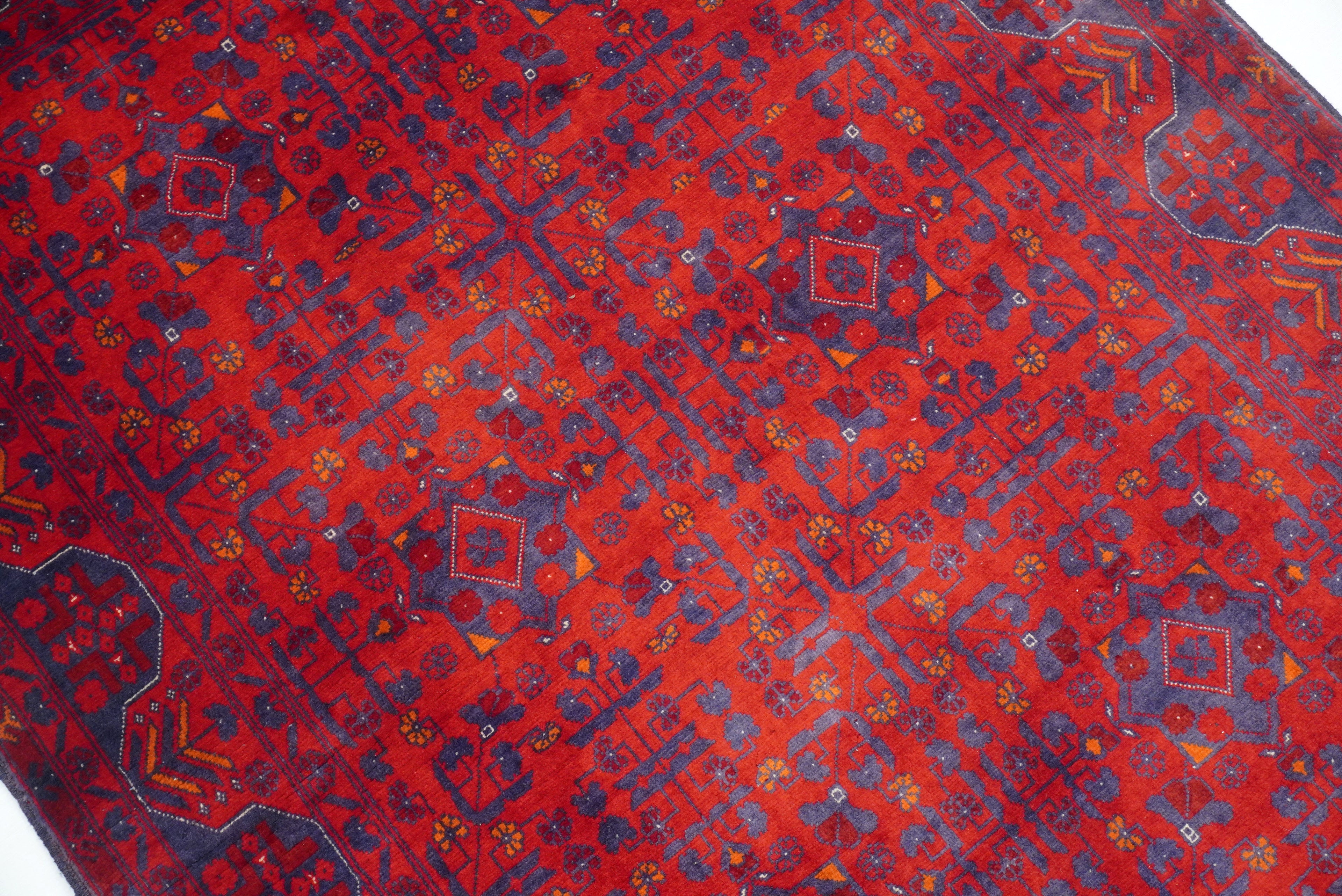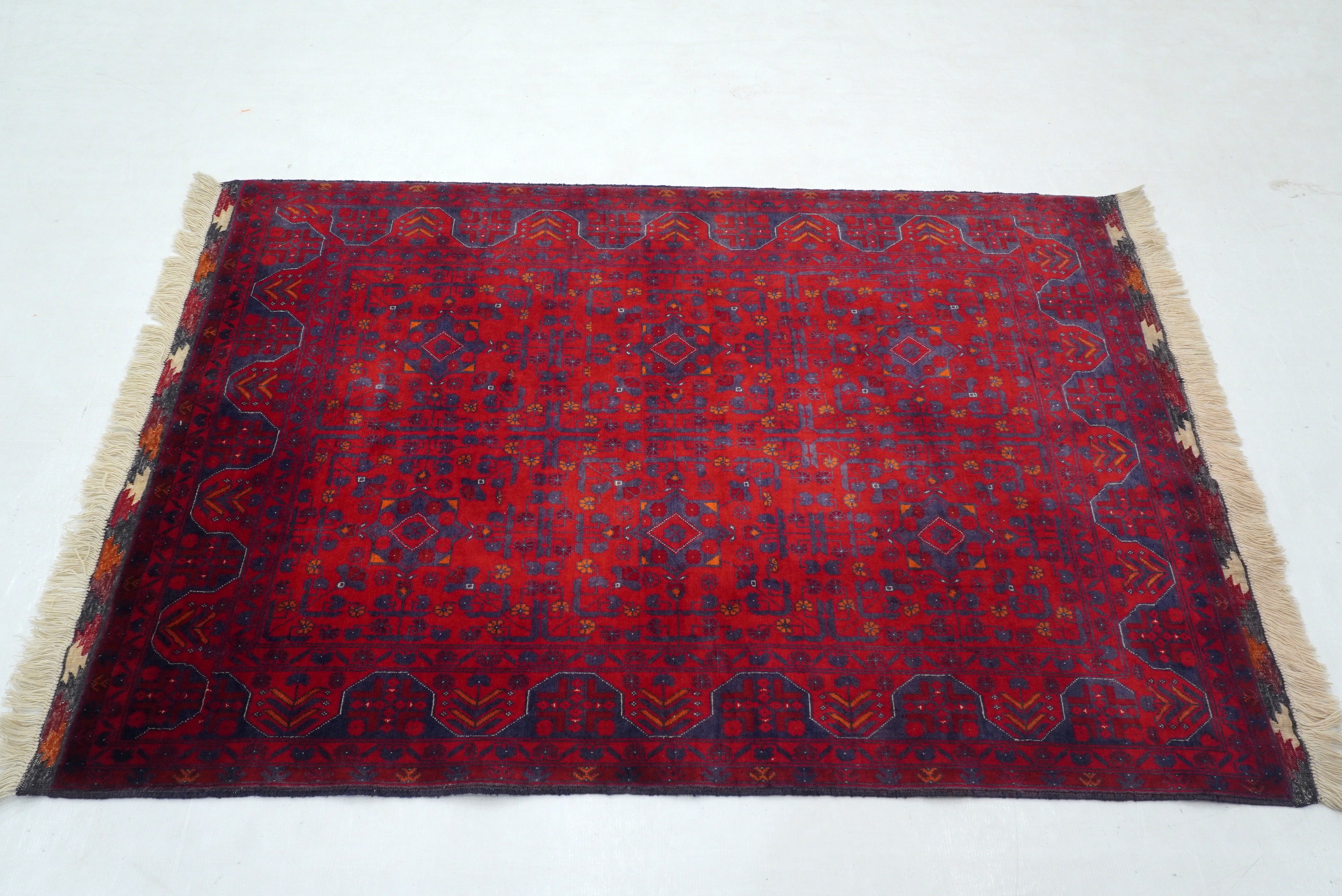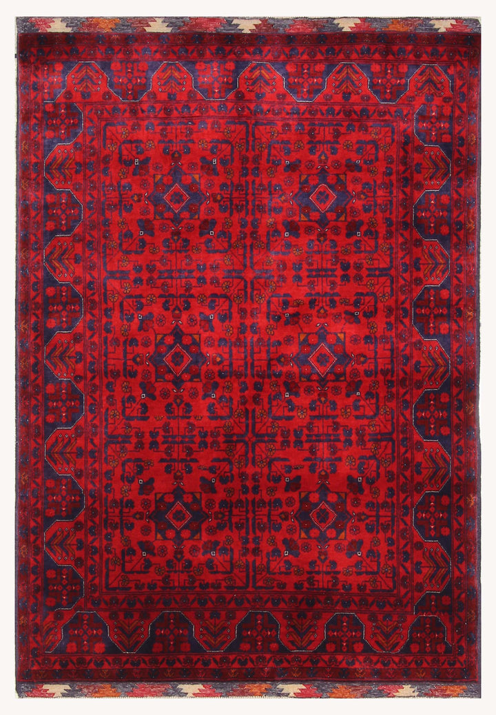Quality: The Afghan Belgic has remarkable colors, from varying shades of deep reds, blues and blacks. Belgic rugs are considered to be the finest of all tribal style rugs. They are made with finely hand spun wool and knotted into intricate geometric patterns with complex borders.