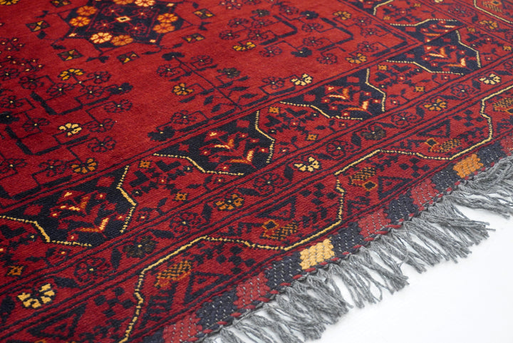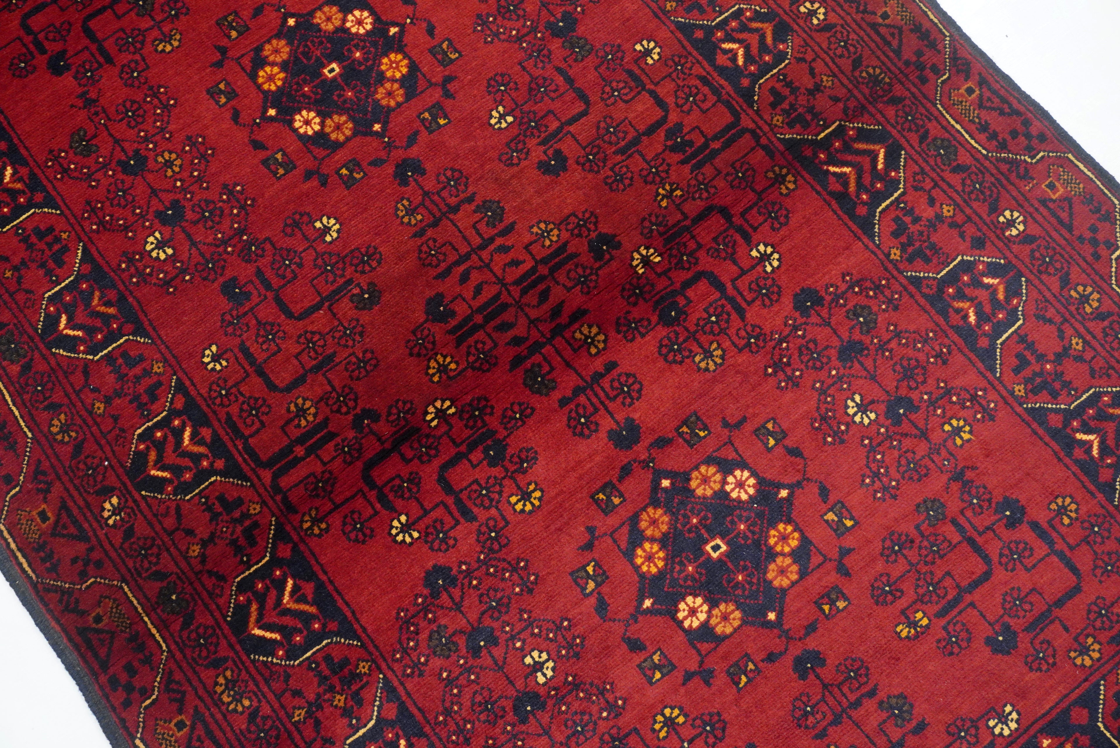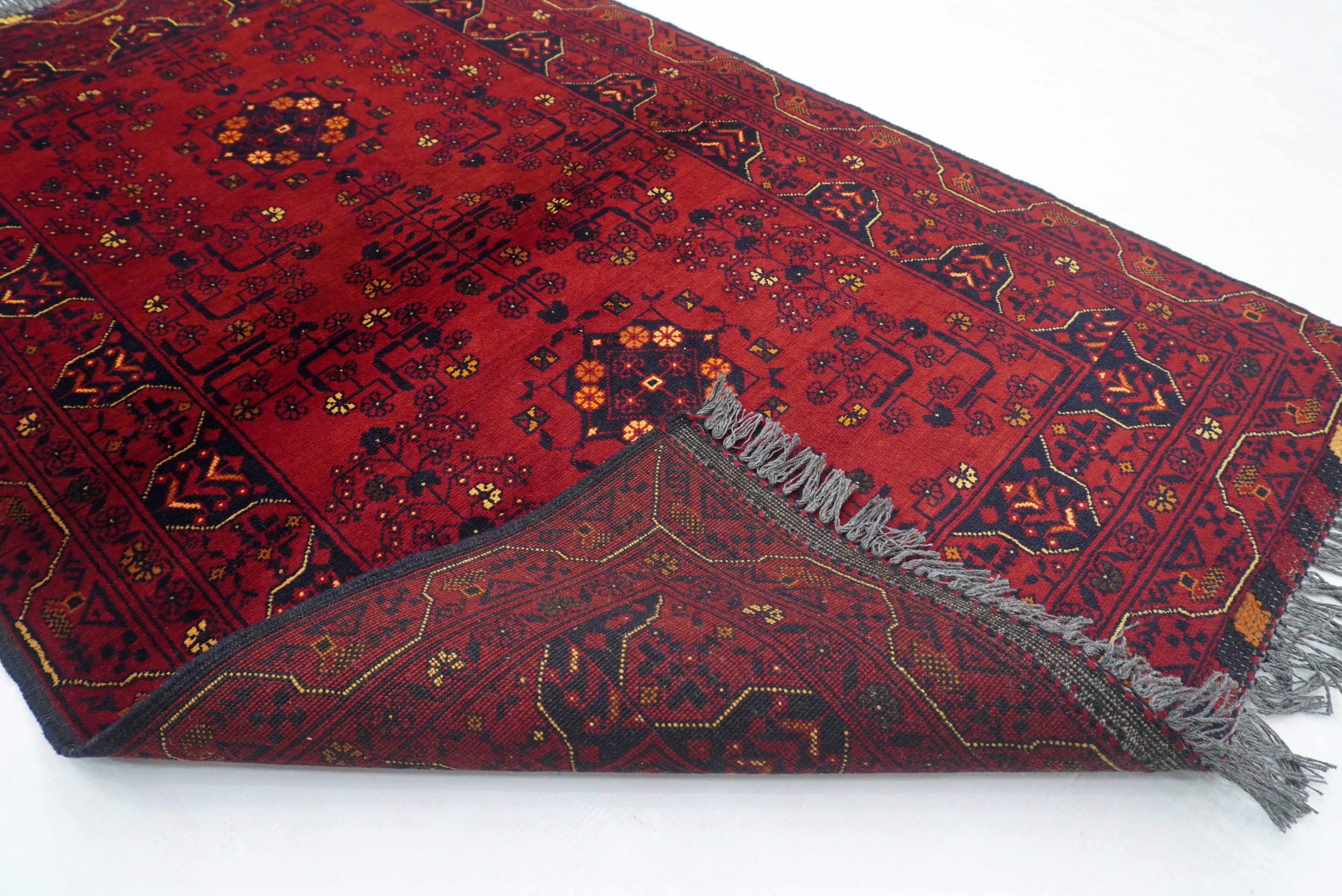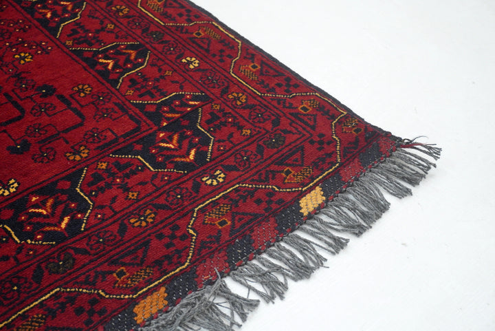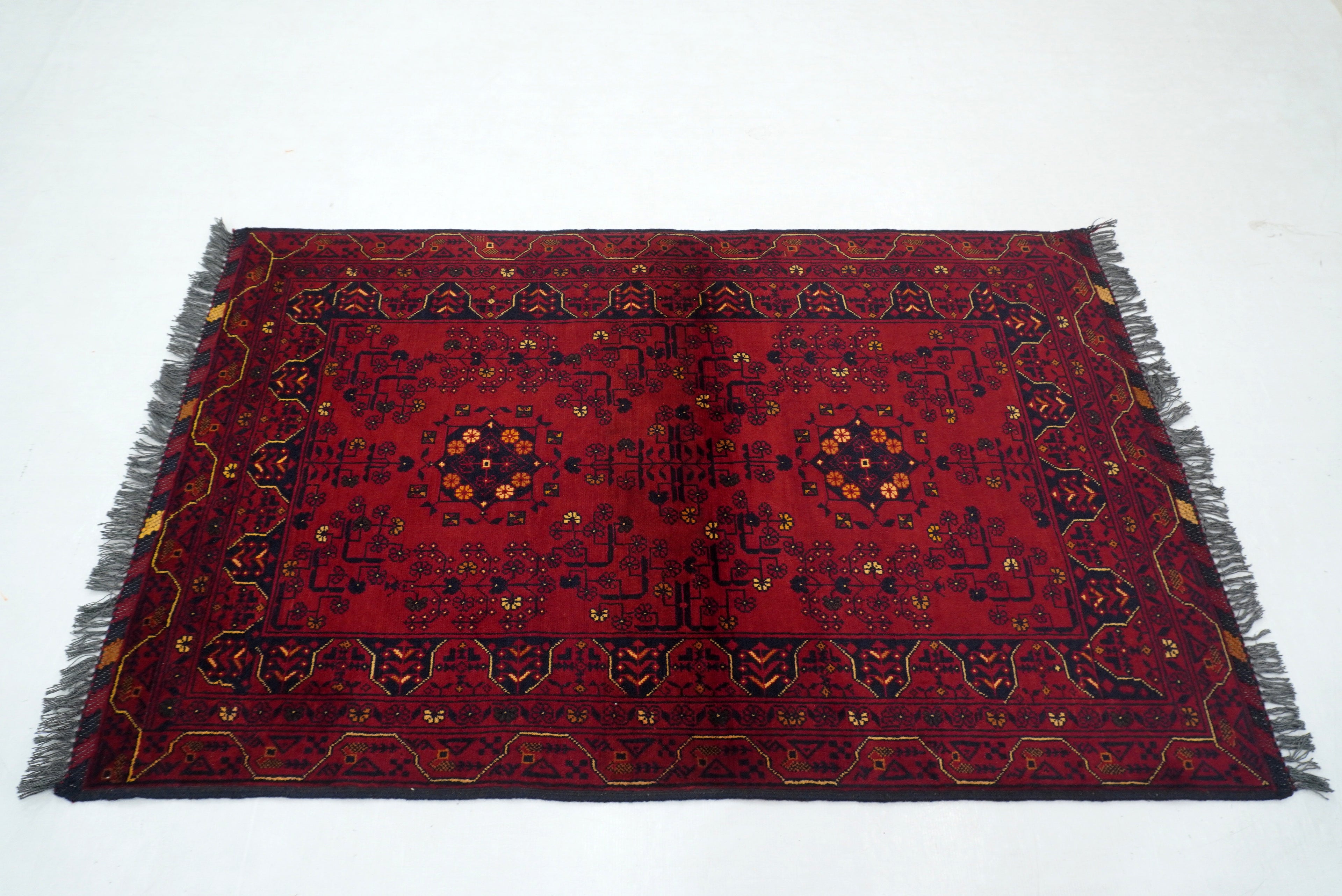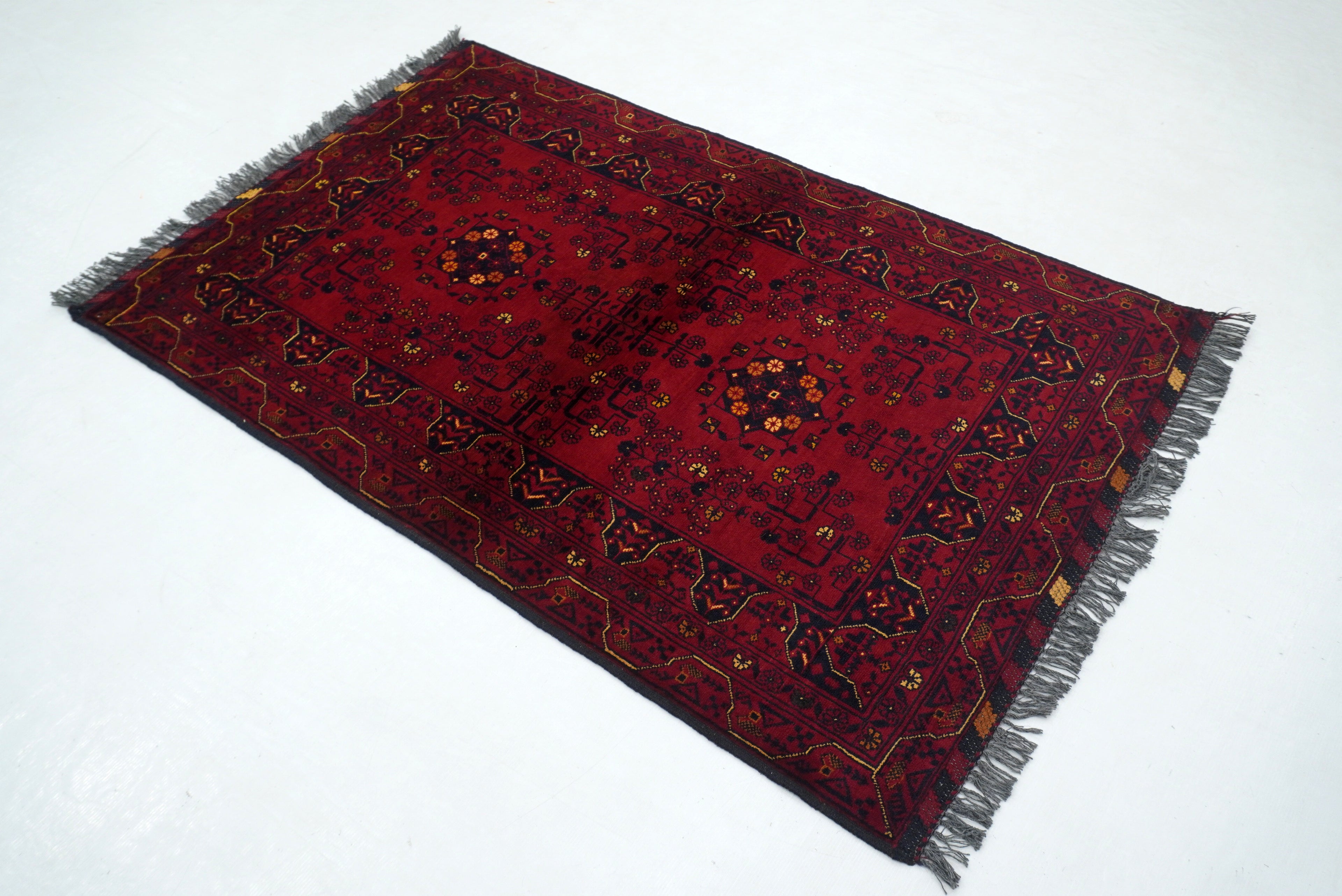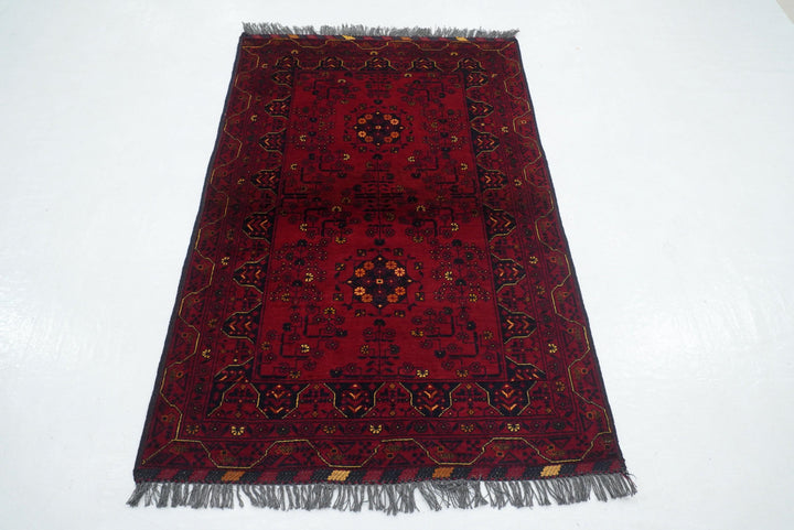 3x5 Red Kunduz Afghan hand knotted Geometric Rug