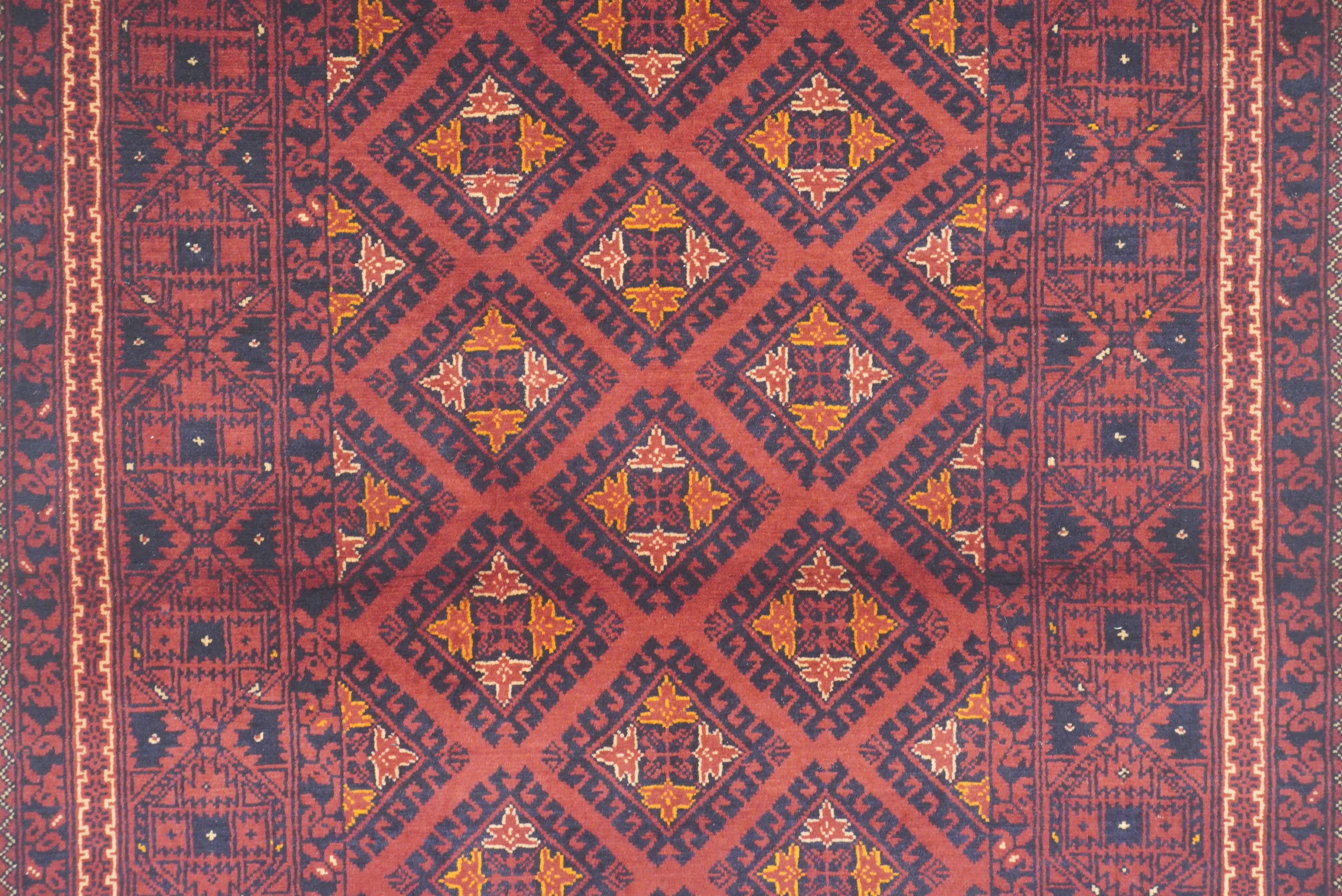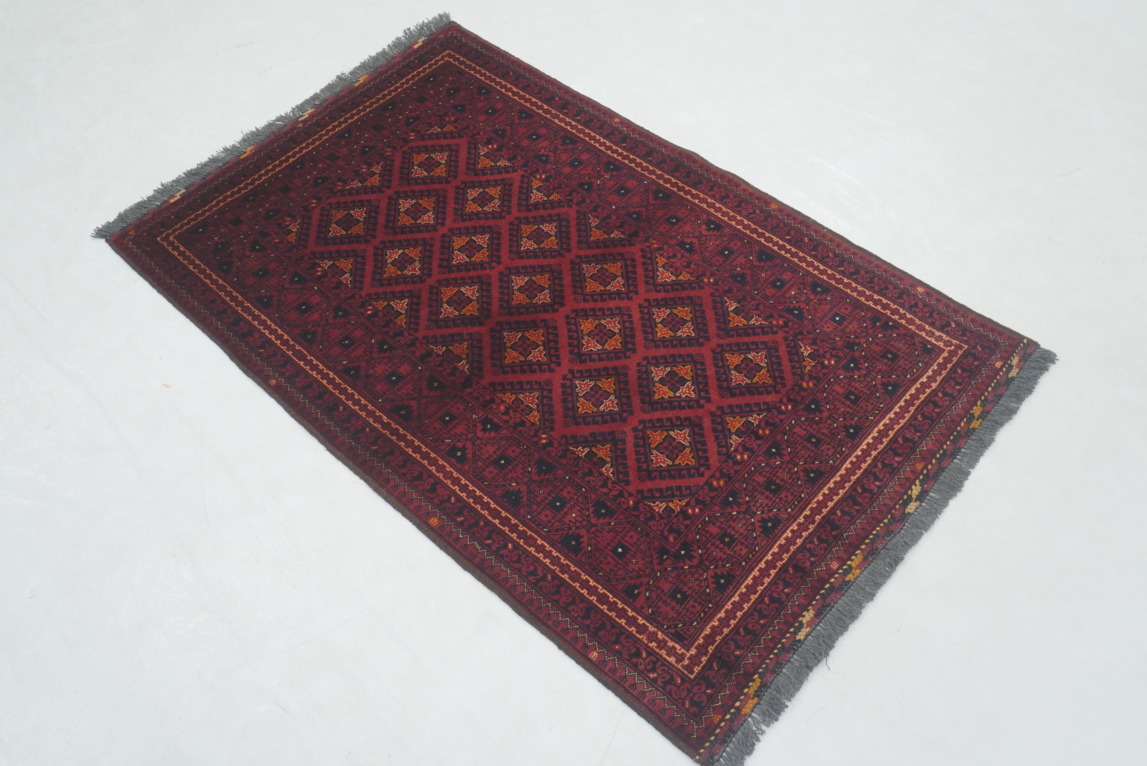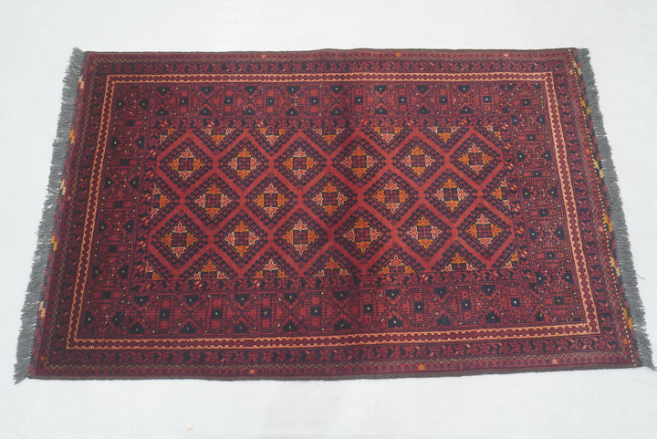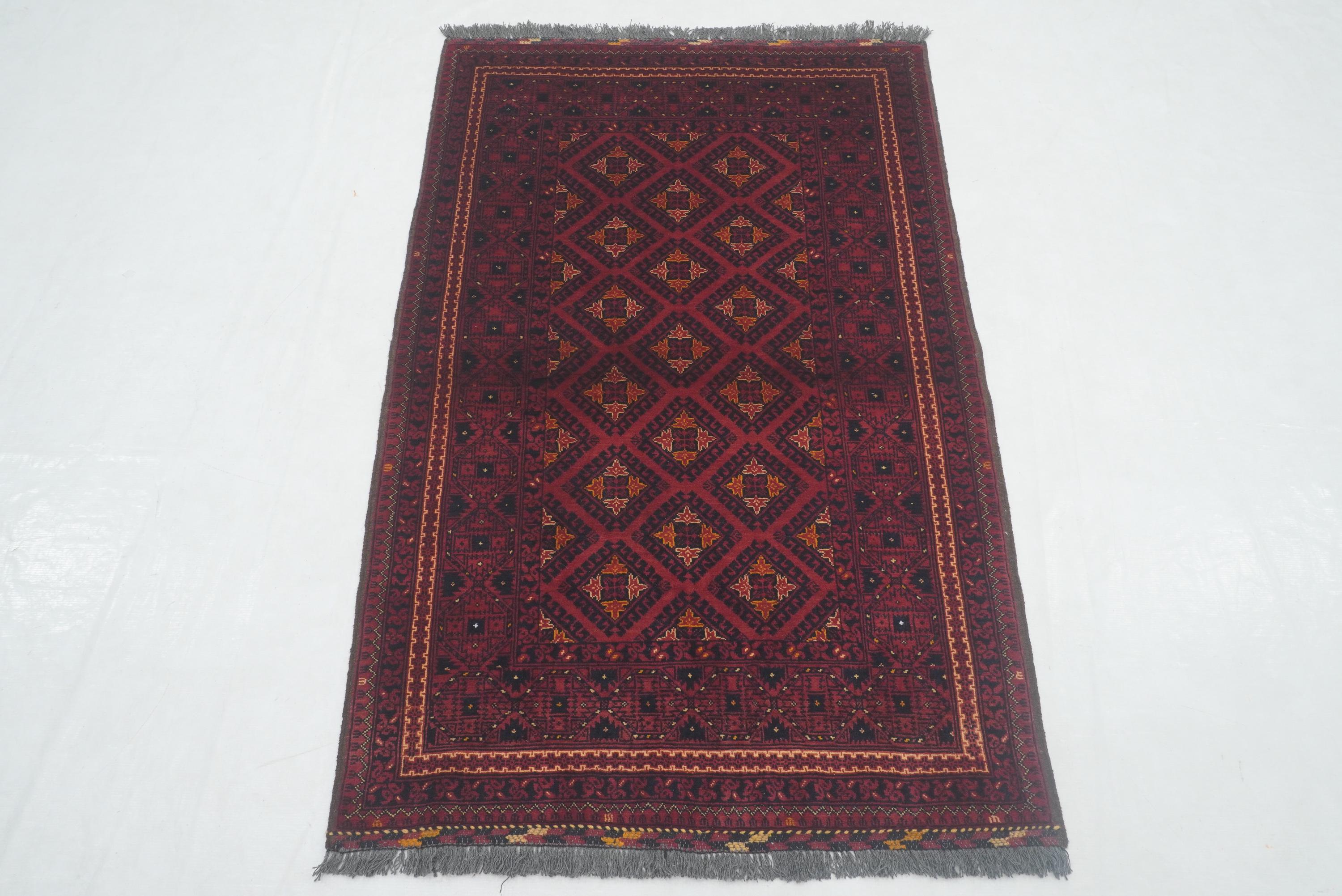 3x5 Red Kunduz Afghan hand knotted Tribal Geometric Rug