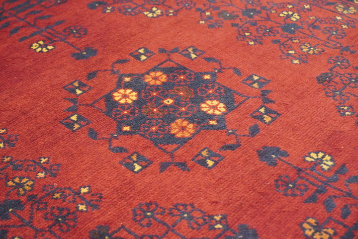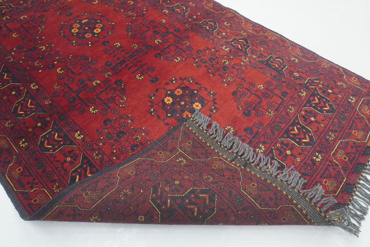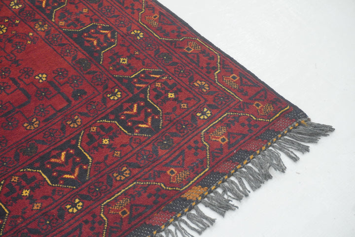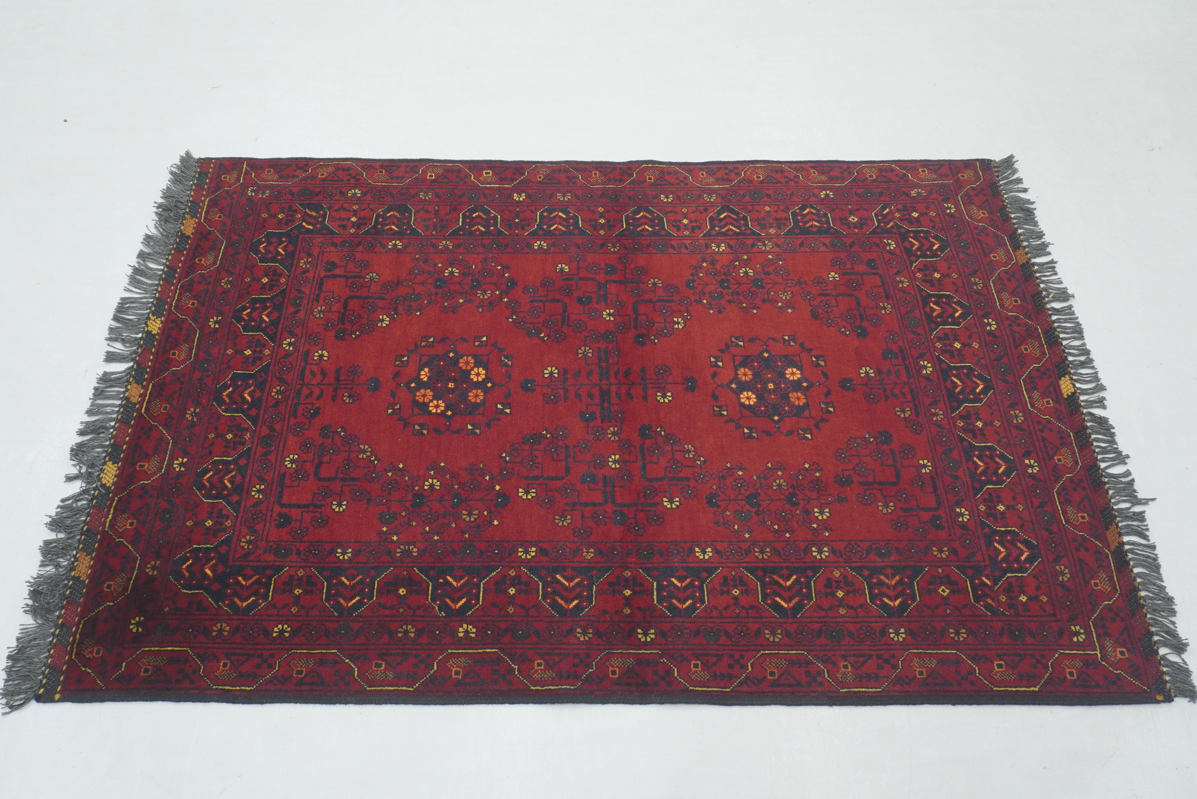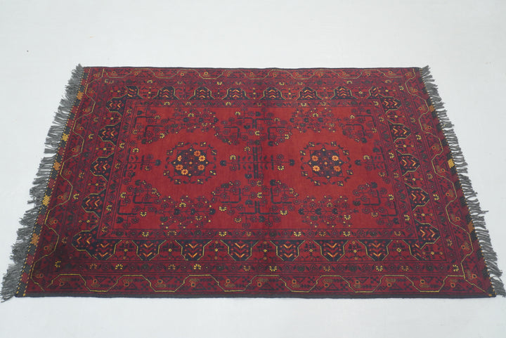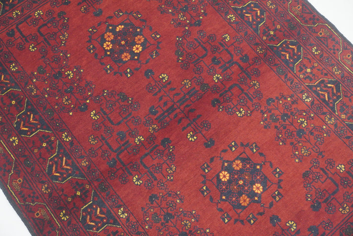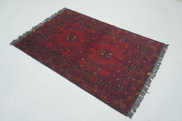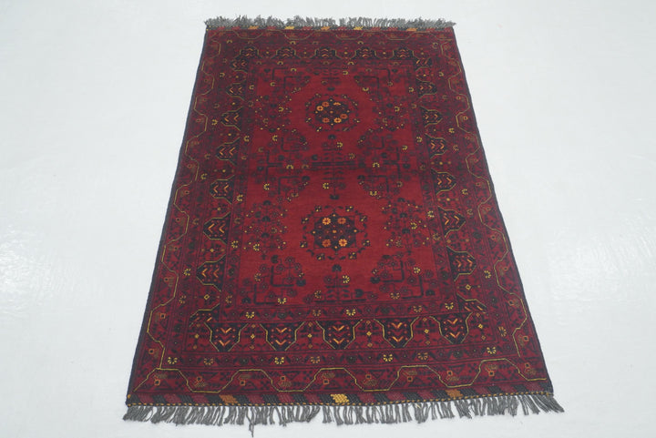 3x5 Red Kunduz Afghan hand knotted Geometric Rug