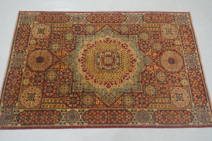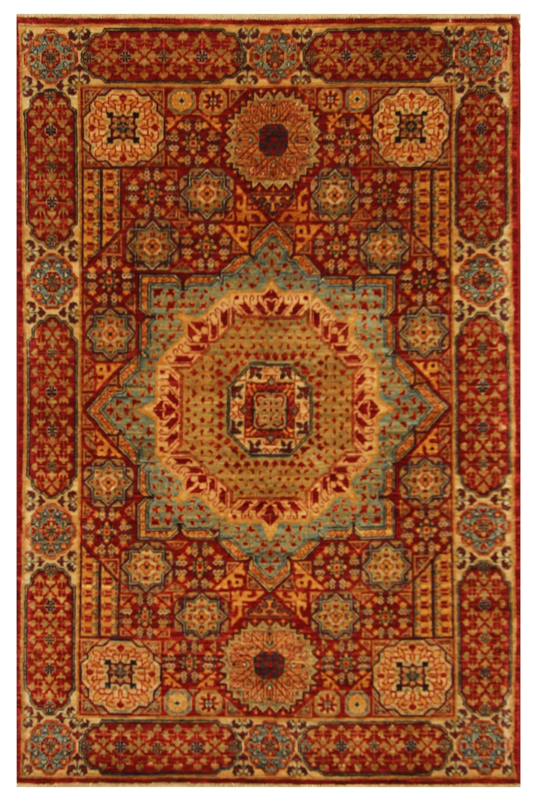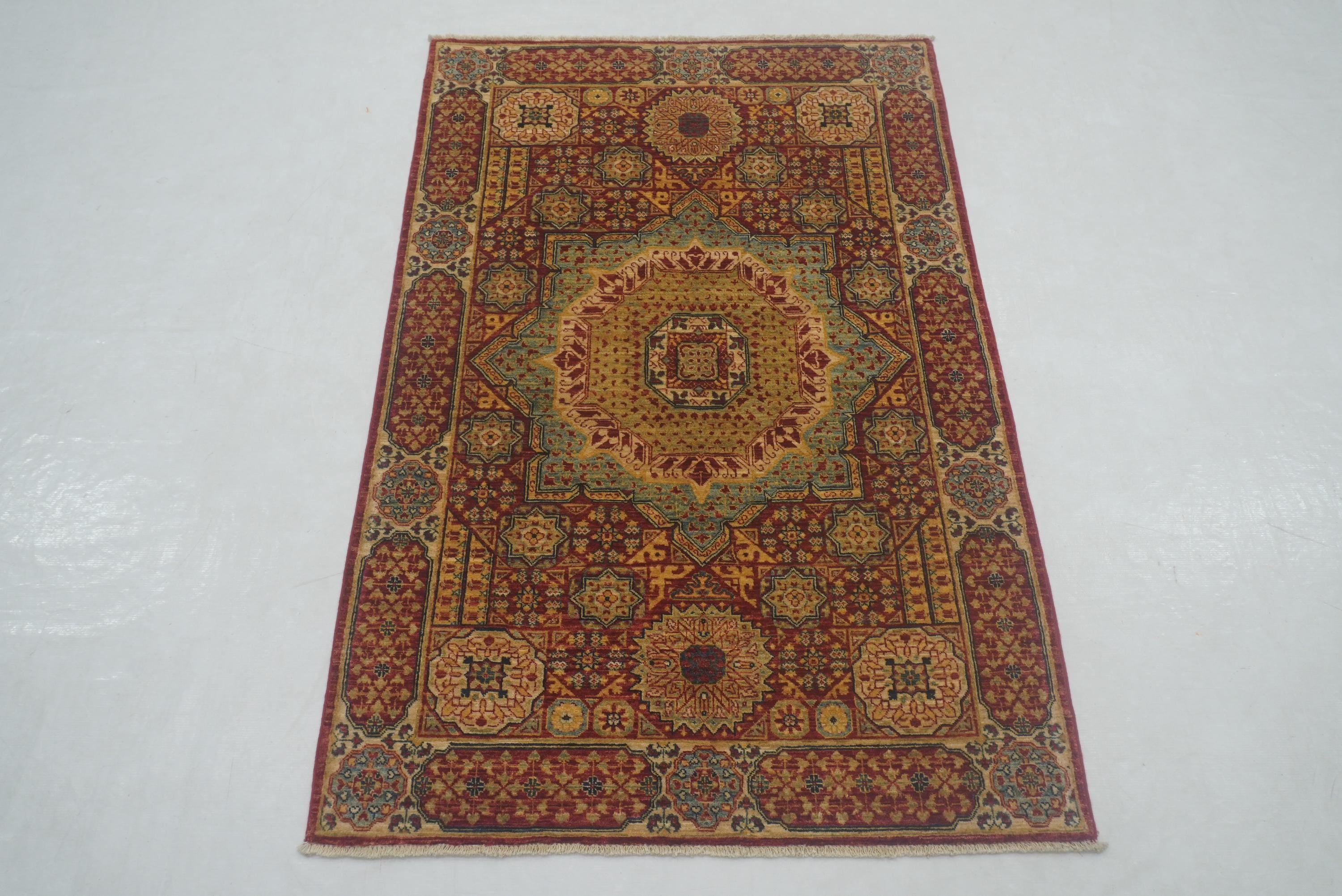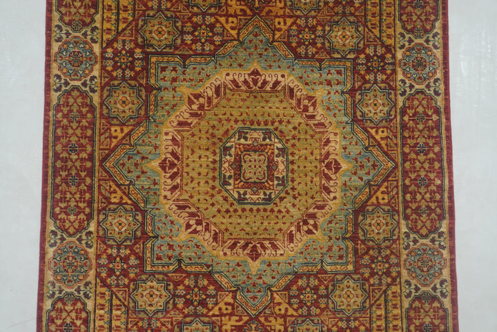 3x5 Red Mamluk Hand Knotted Geometric Medallion Rug