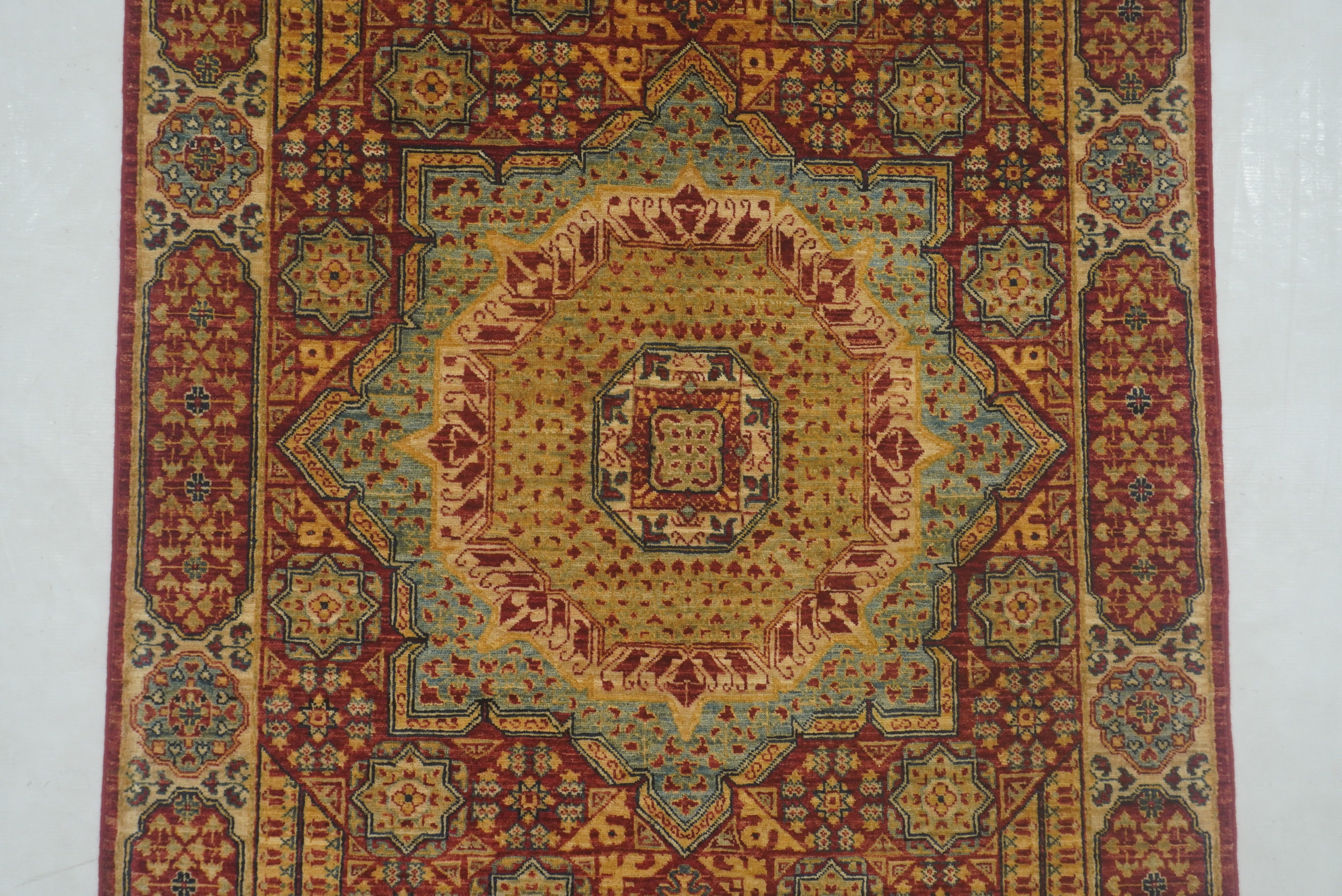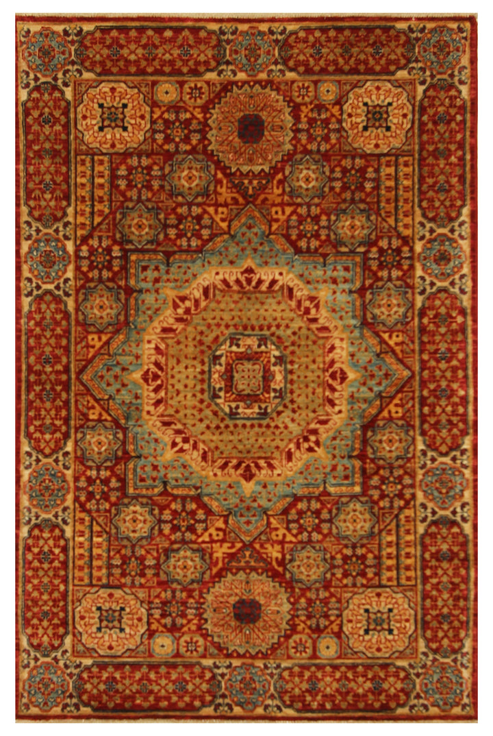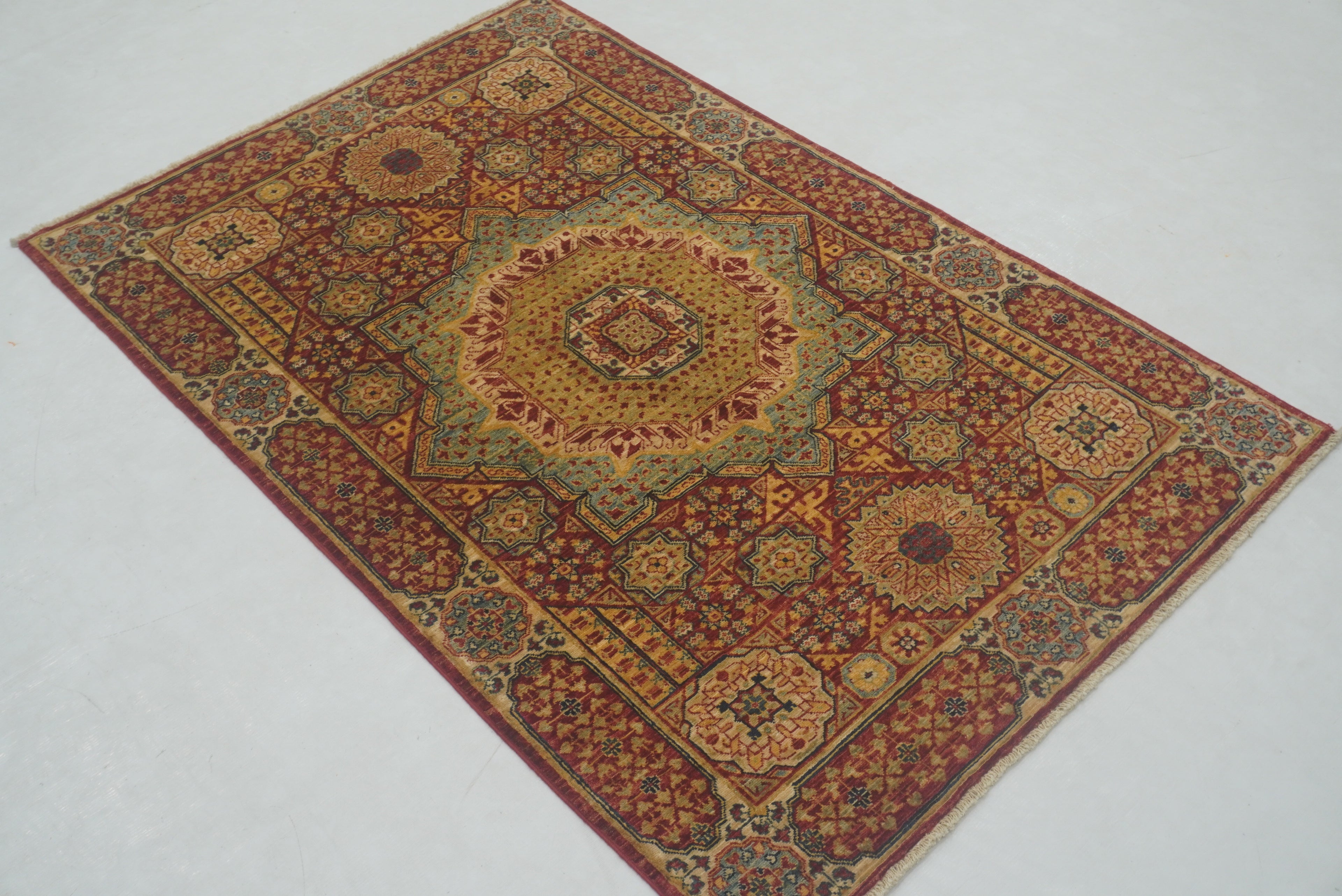 3x5 Red Mamluk Hand Knotted Geometric Medallion Rug