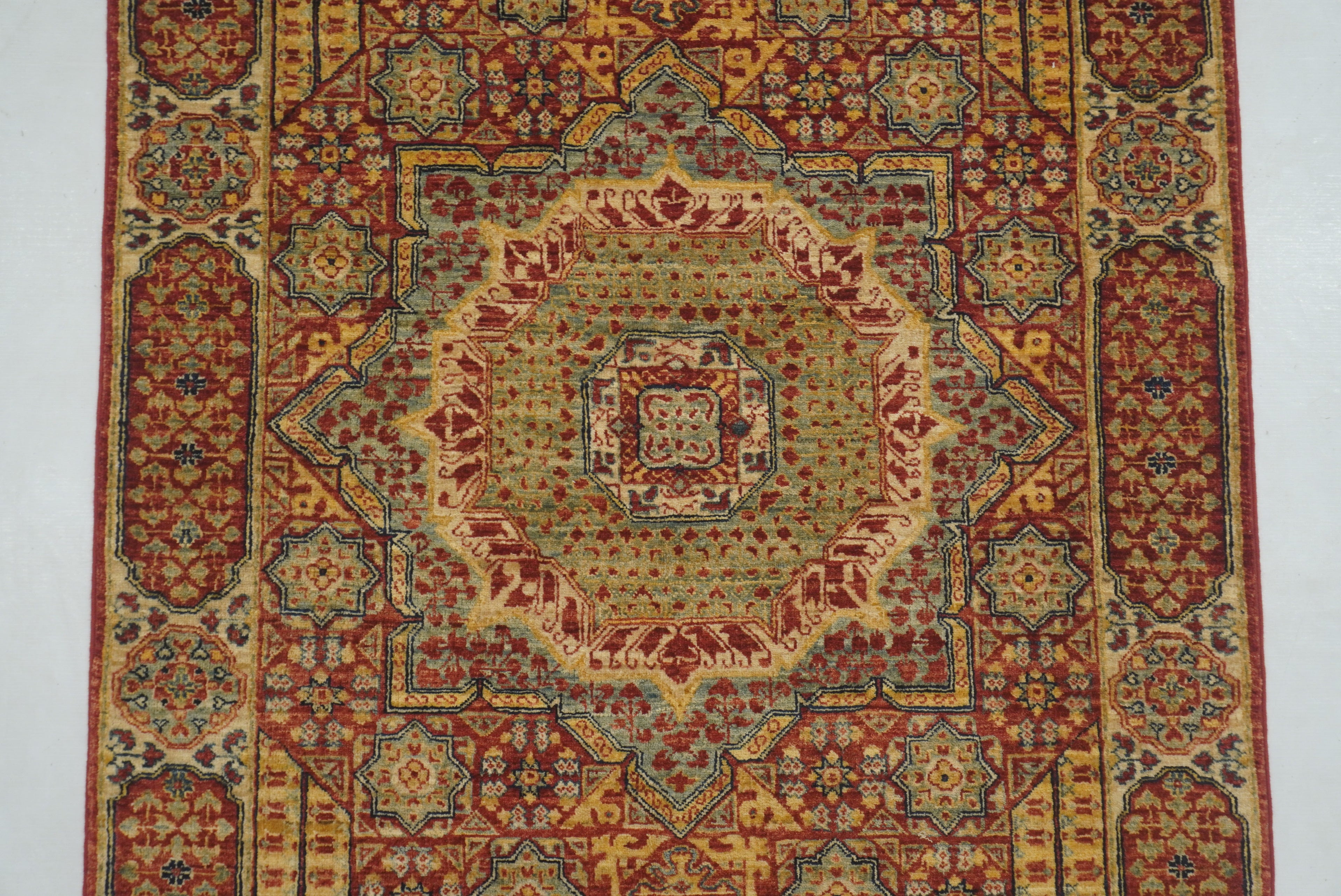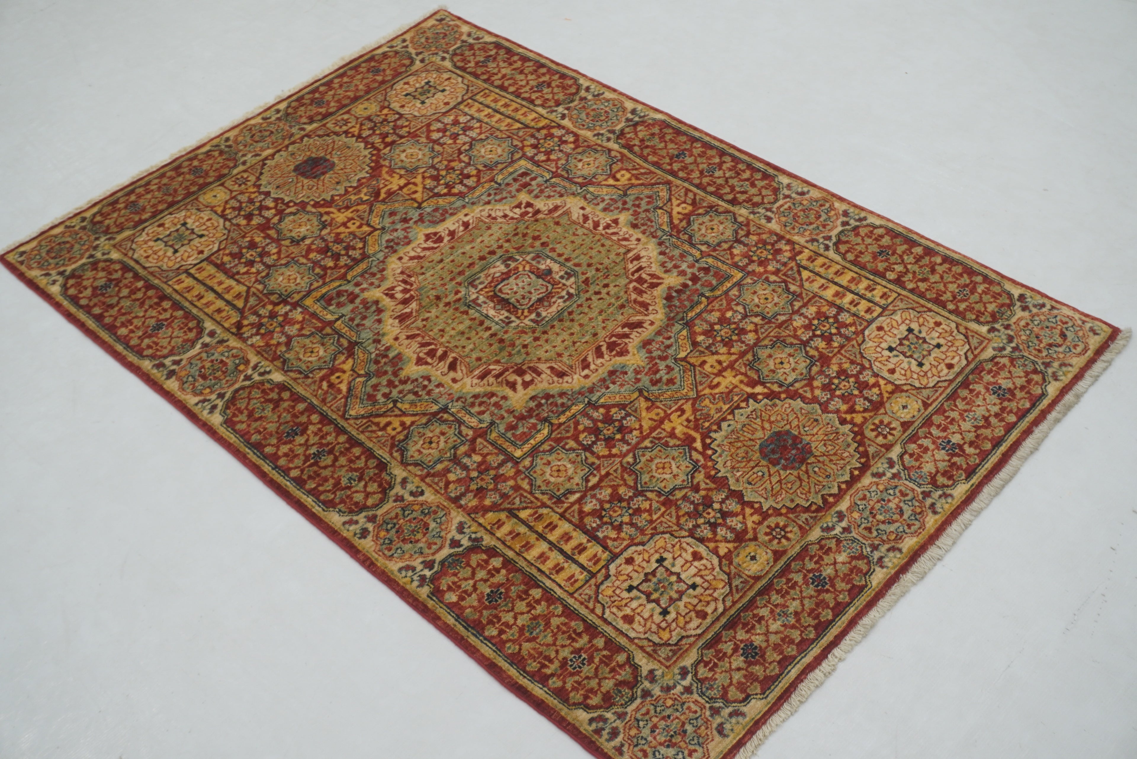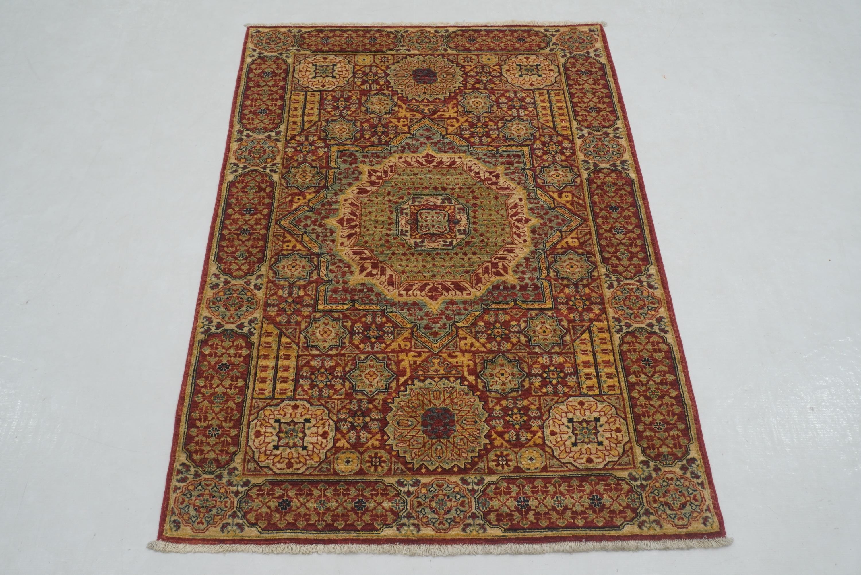 3x5 Red Mamluk Hand Knotted Medallion Turkish Rug