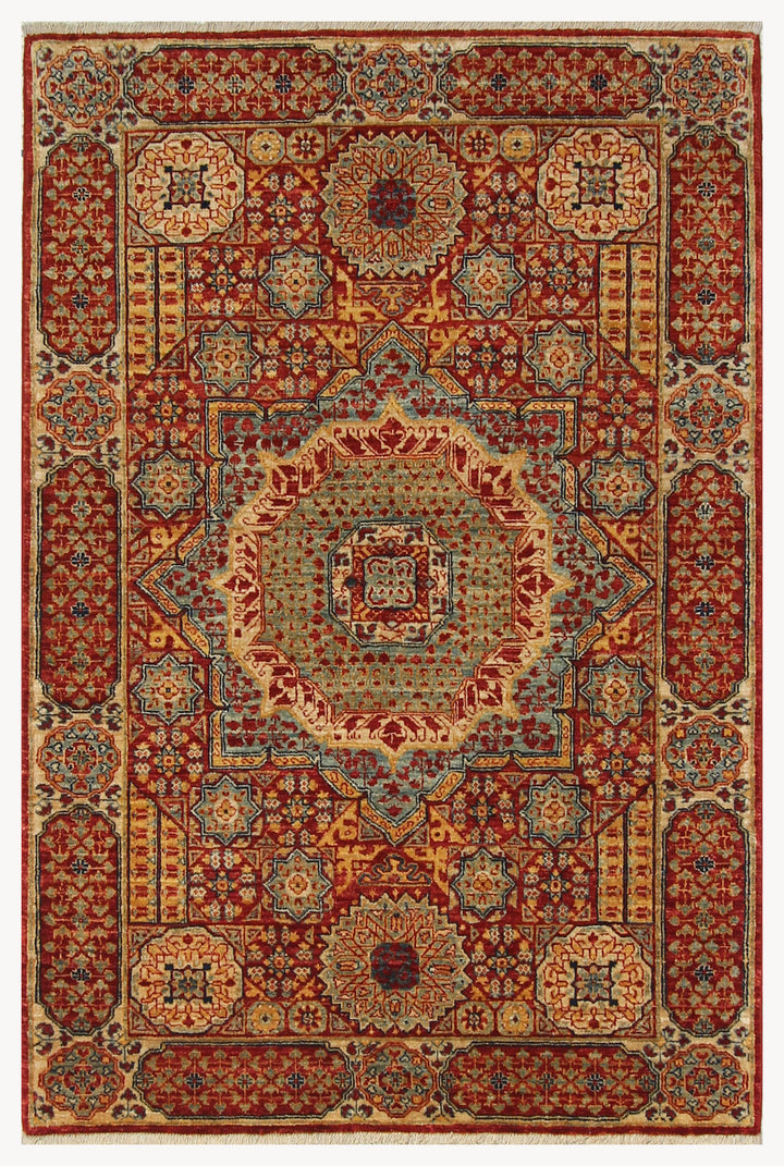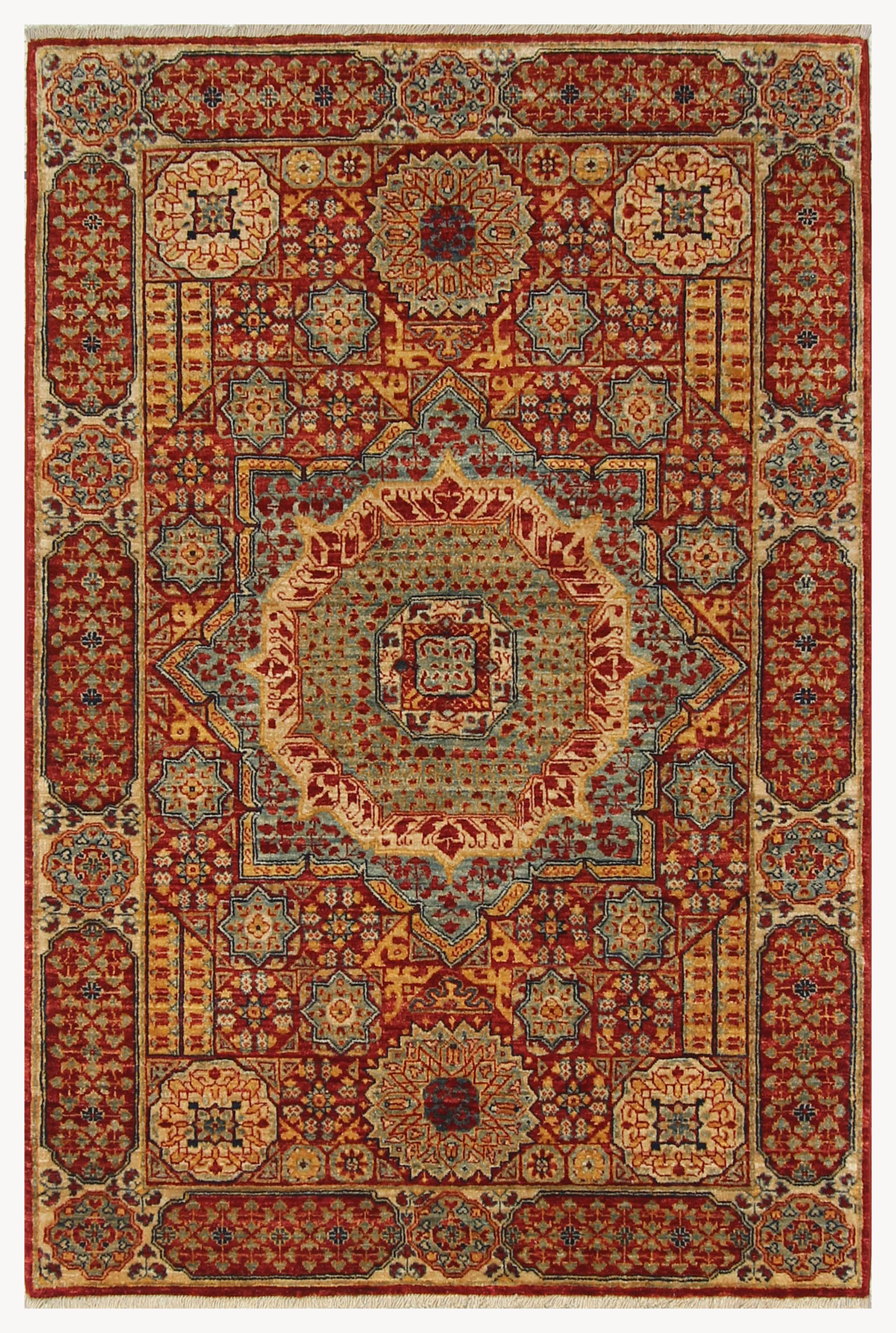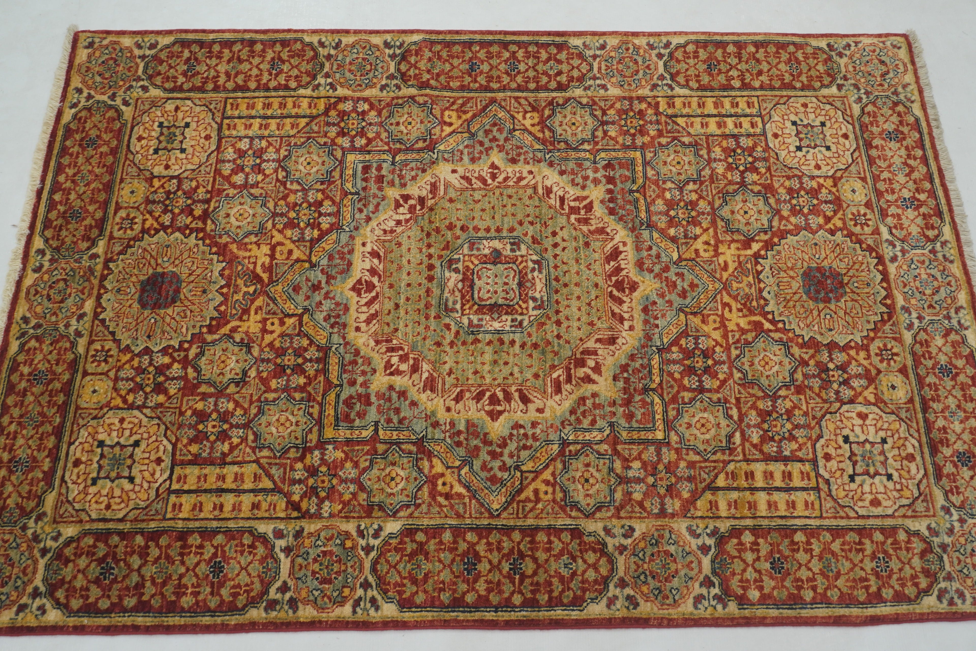 3x5 Red Mamluk Hand Knotted Medallion Turkish Rug