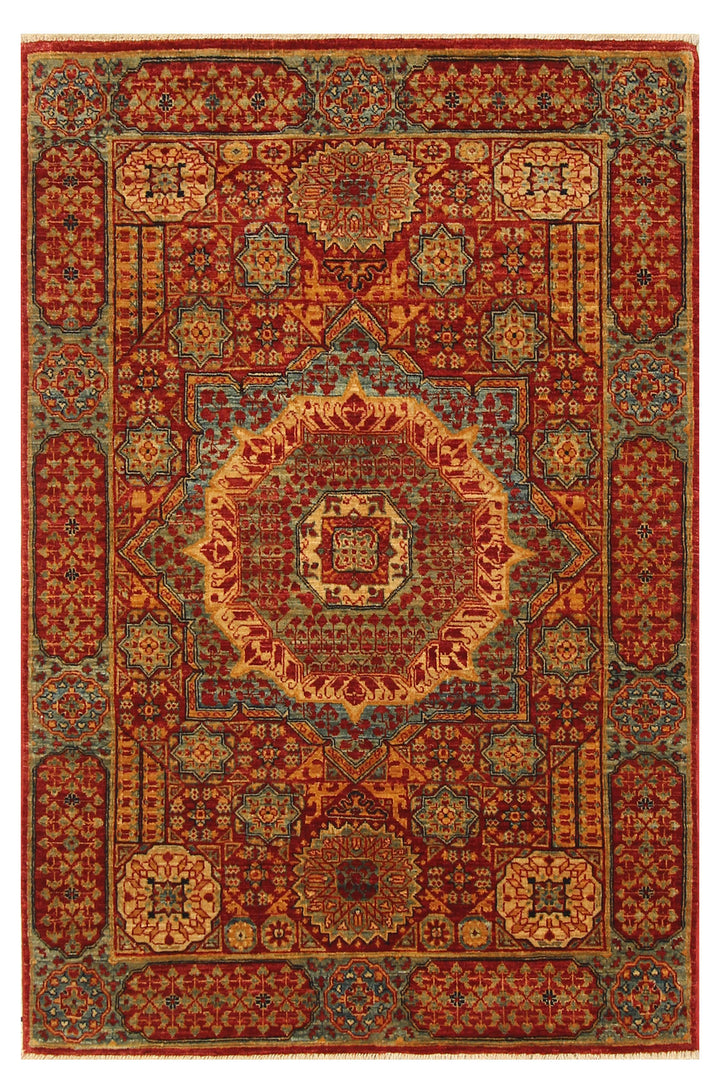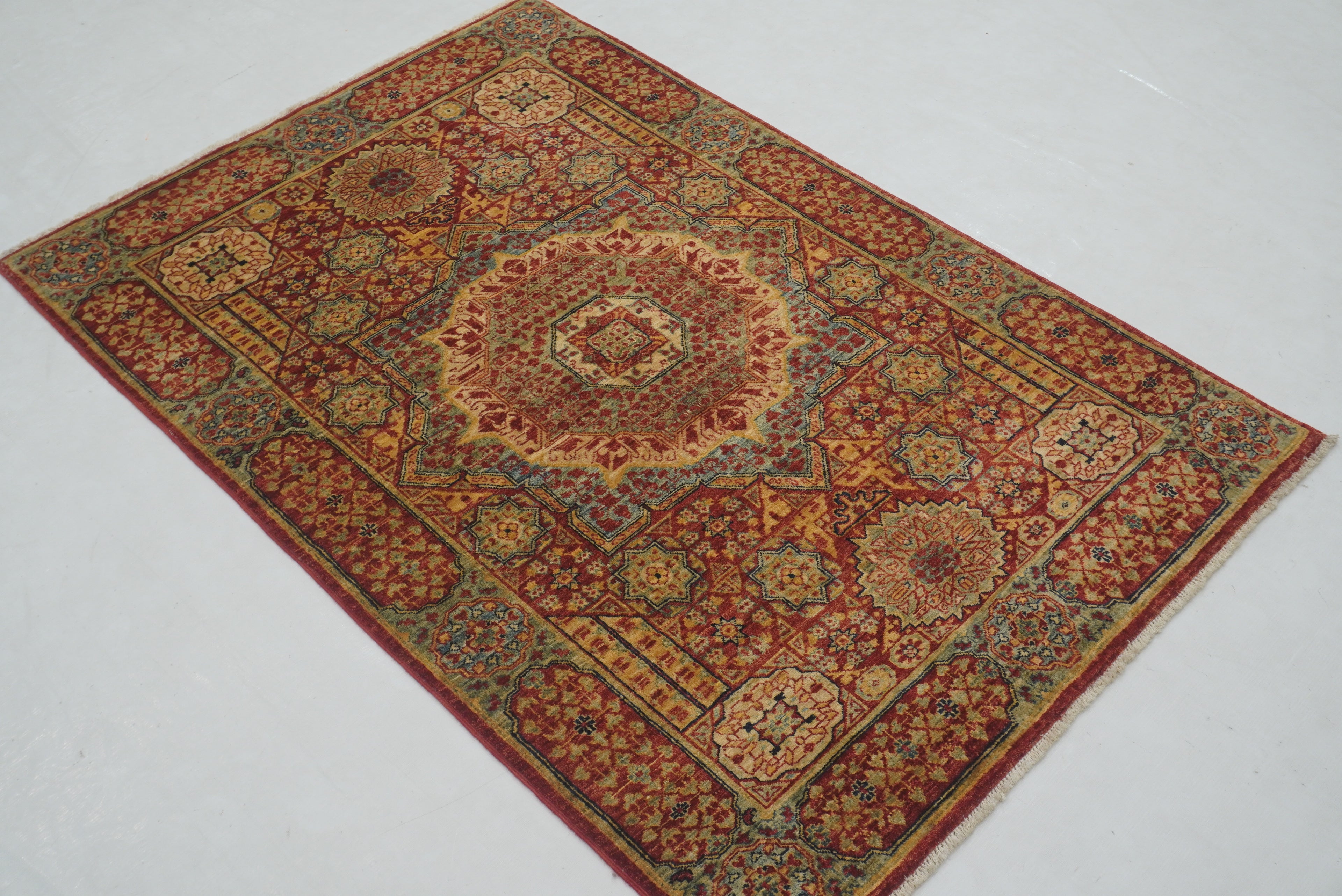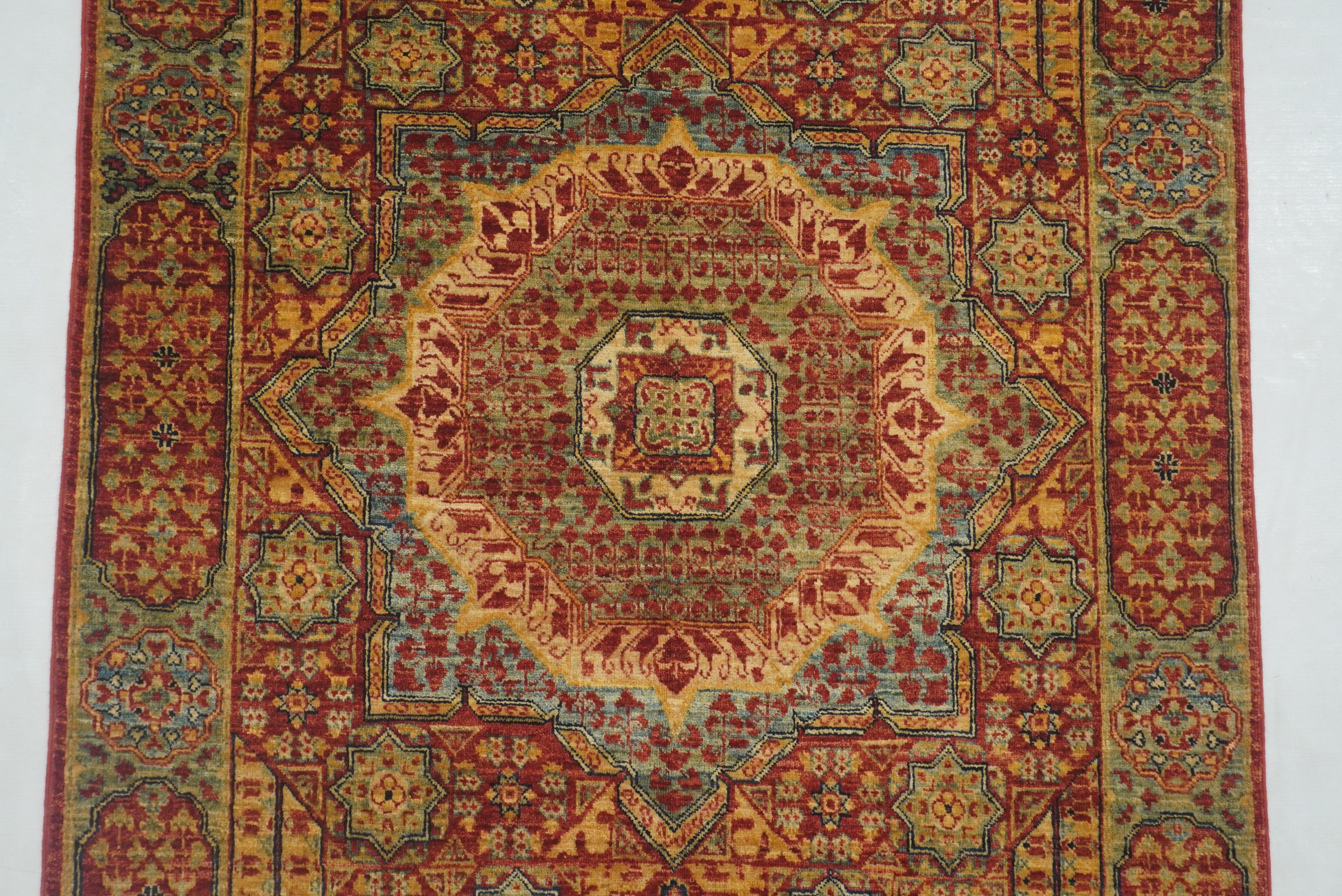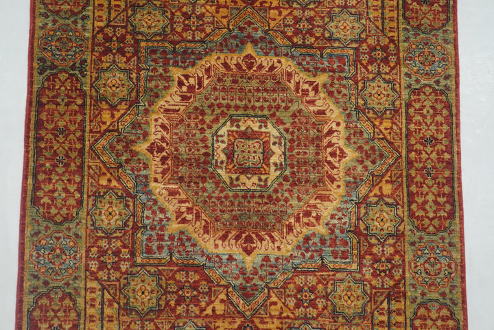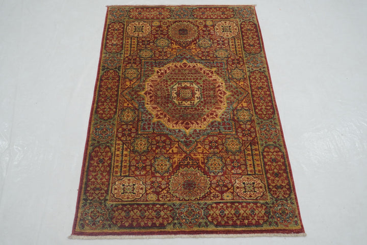 3x5 Red Mamluk Hand Knotted Medallion Turkish Rug