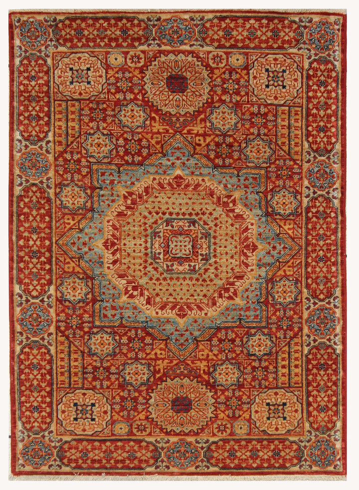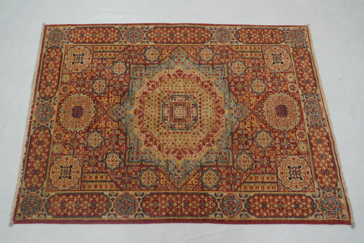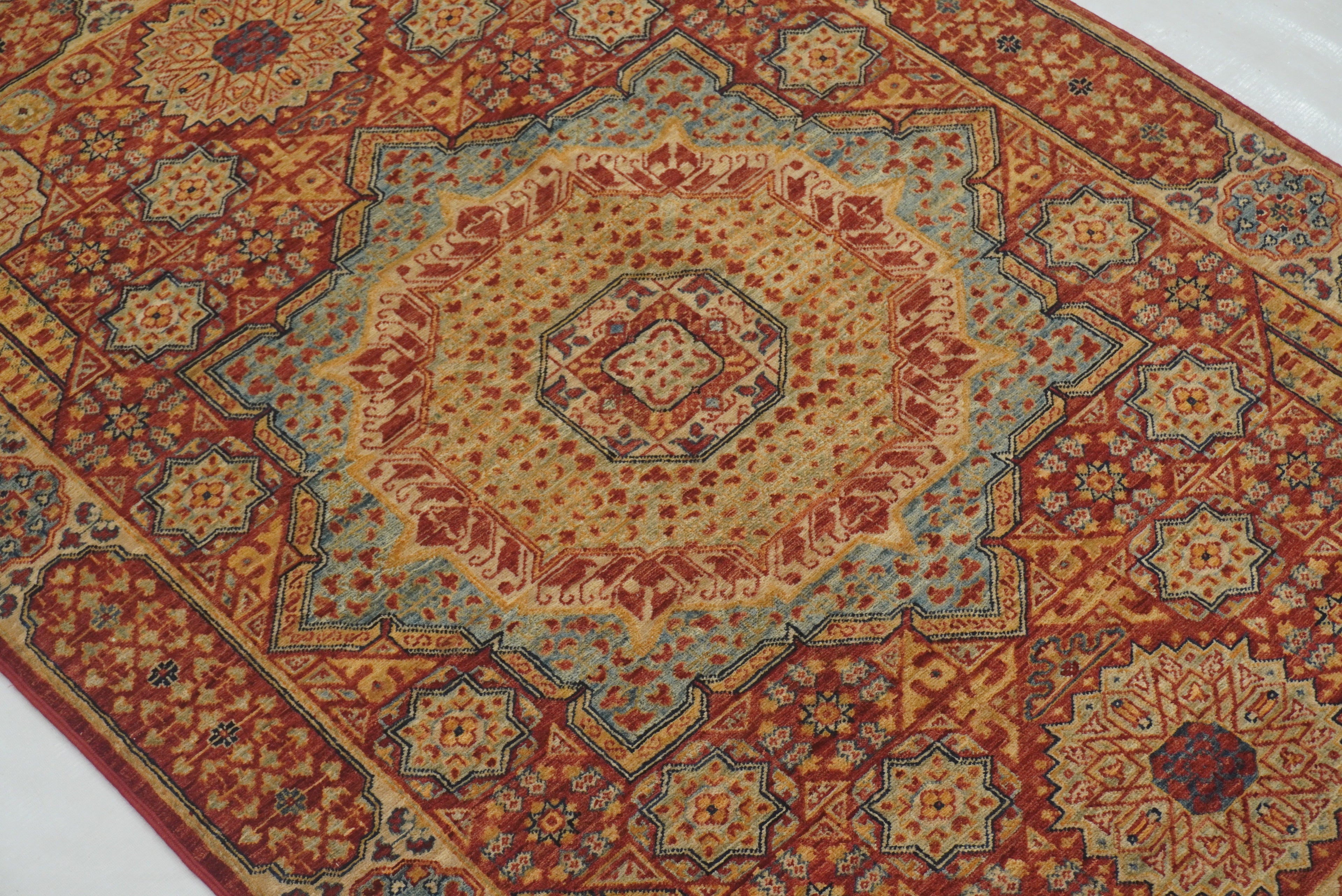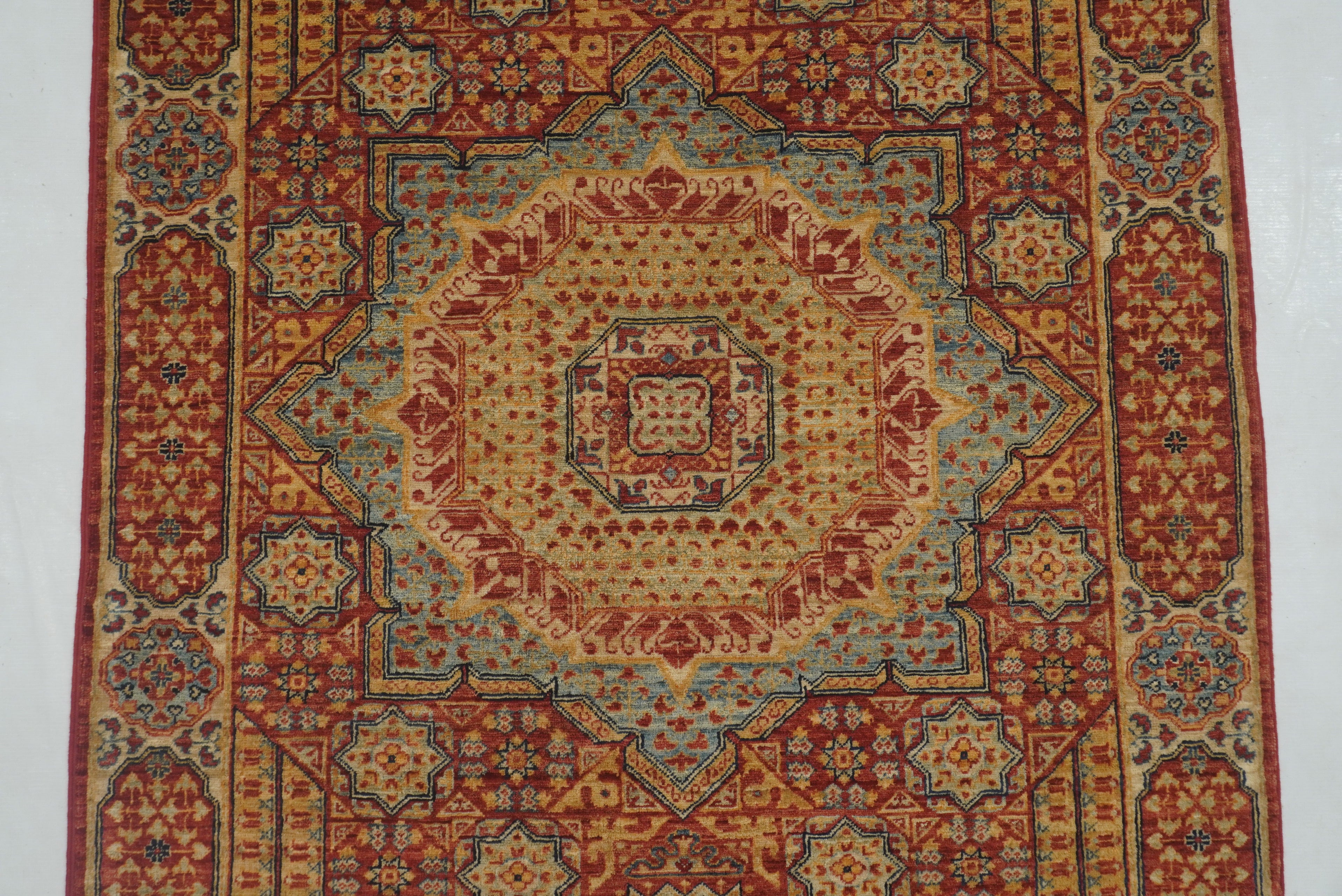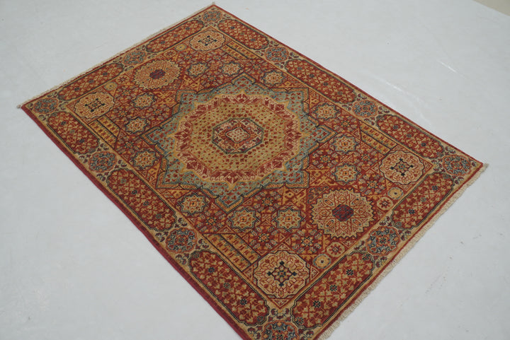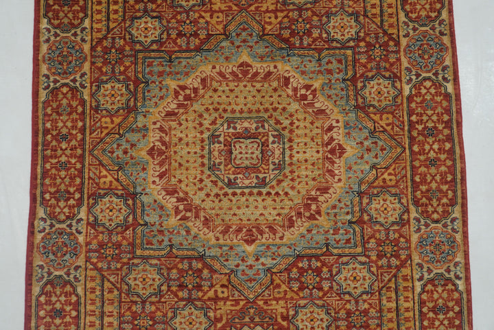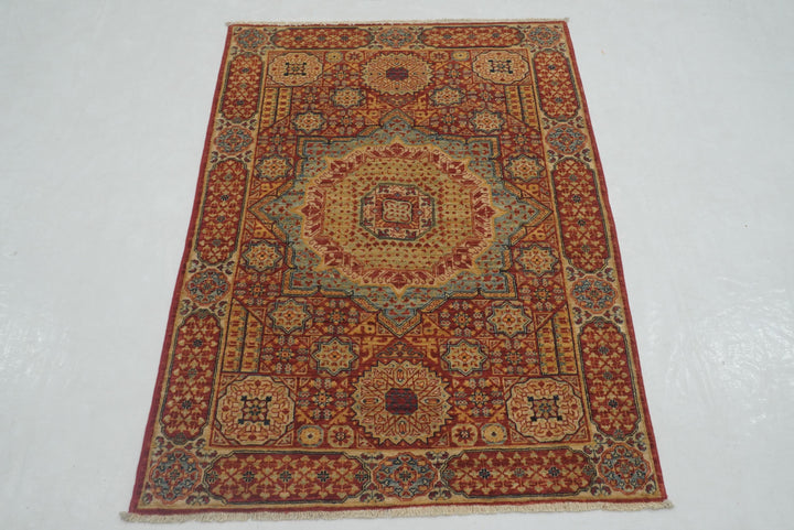3x5 Red Mamluk Hand Knotted Medallion Turkish Rug