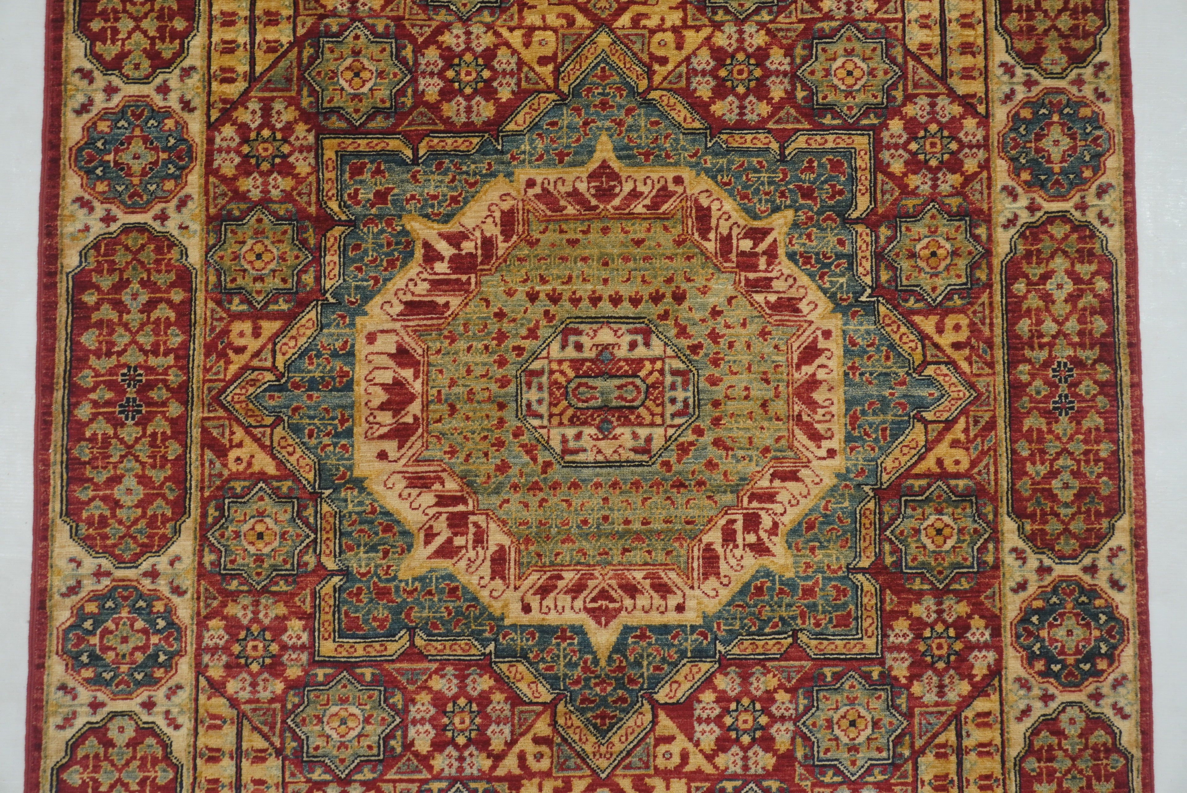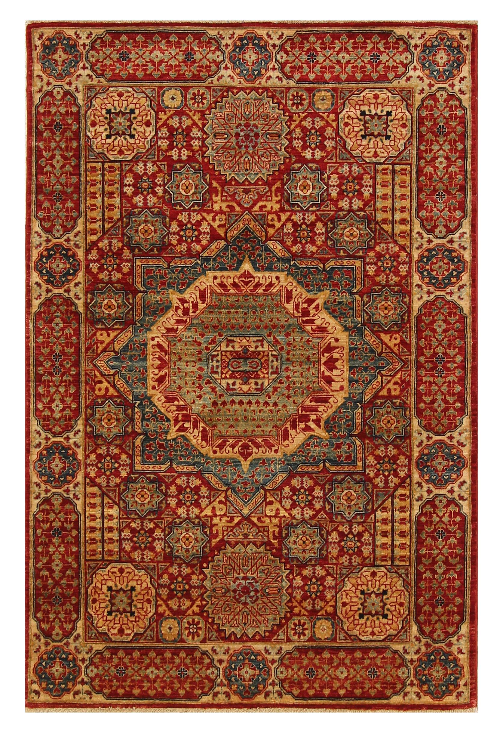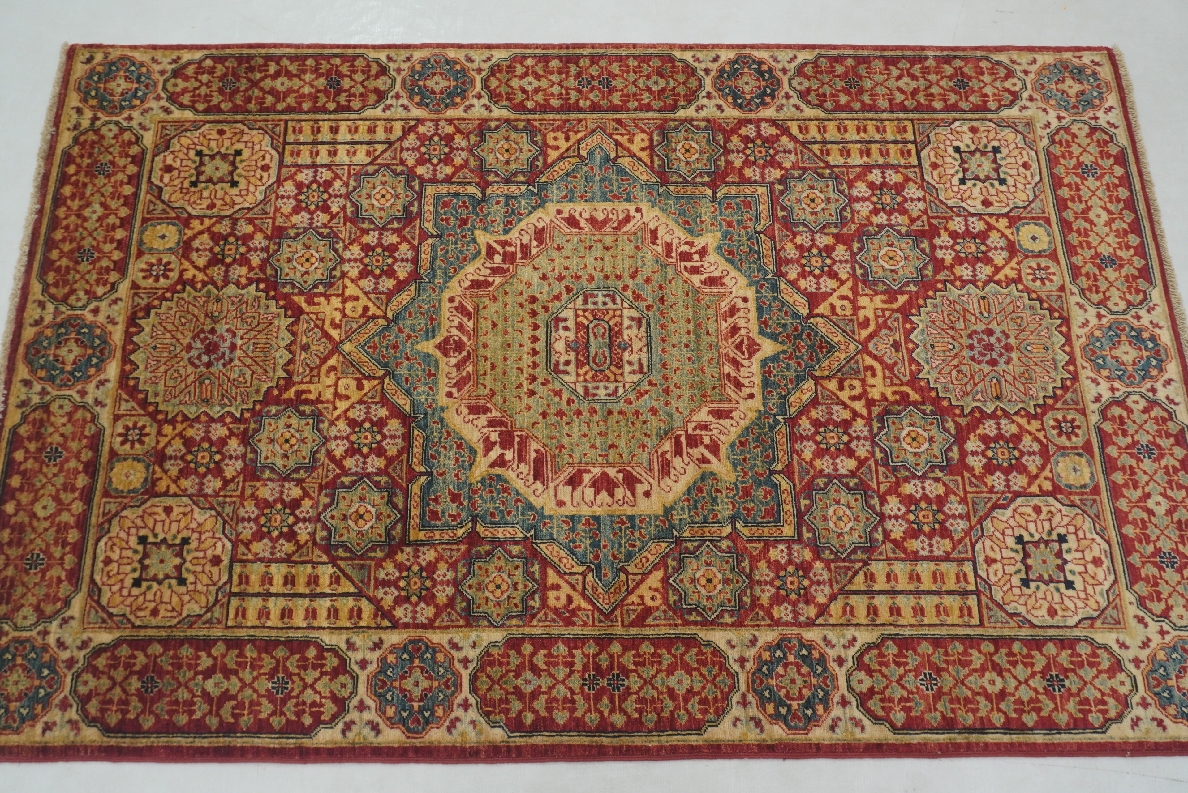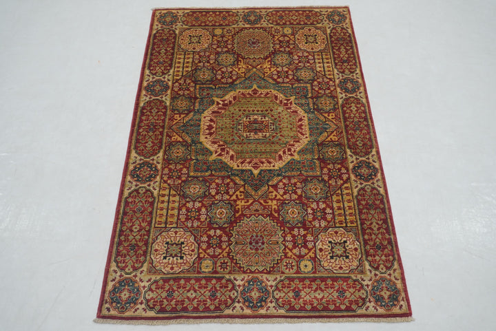 3x5 Red Mamluk Hand Knotted Rug Medallion Turkish Rug