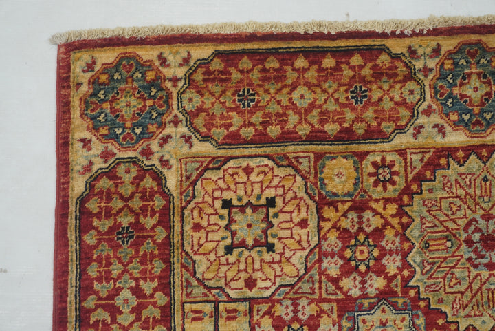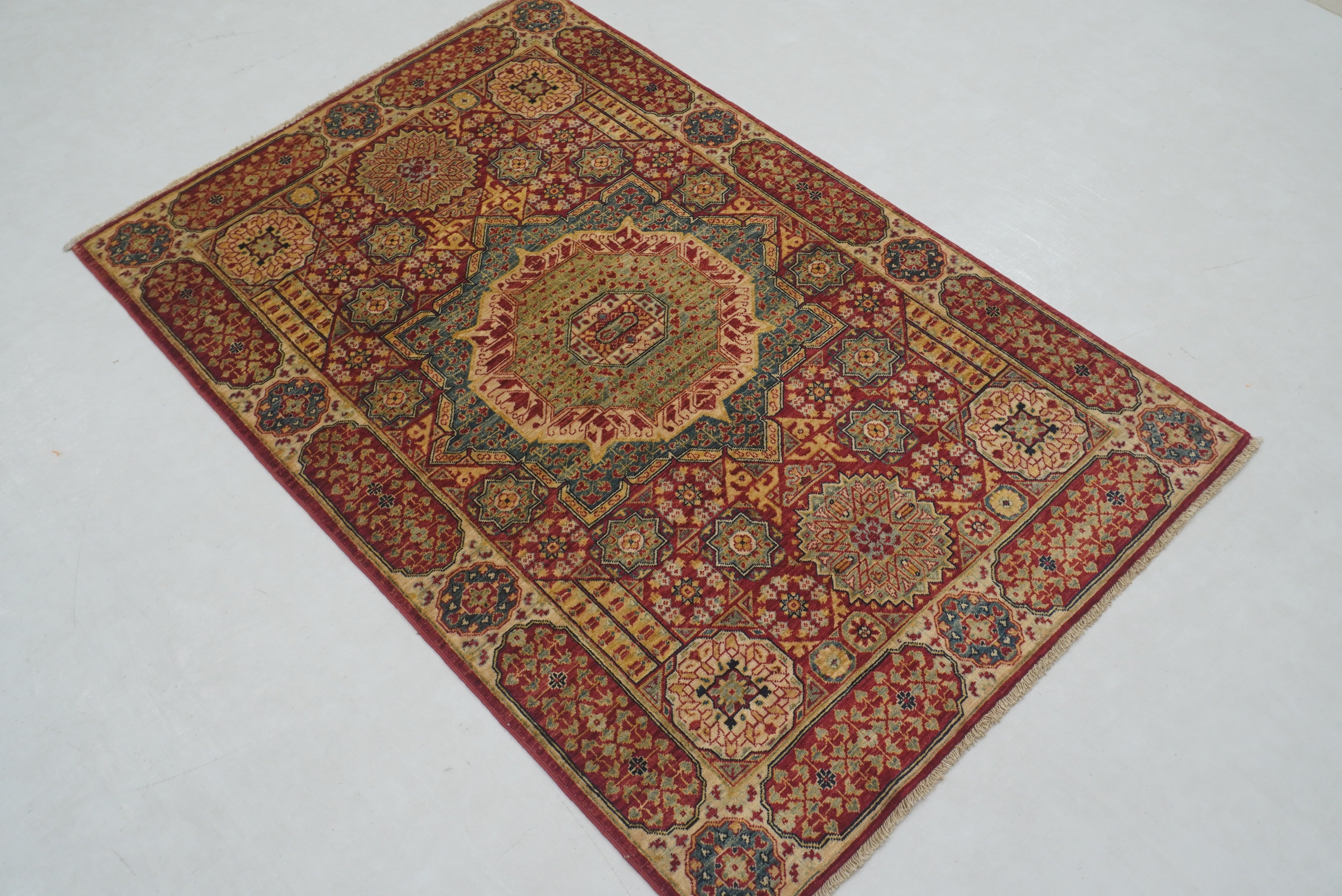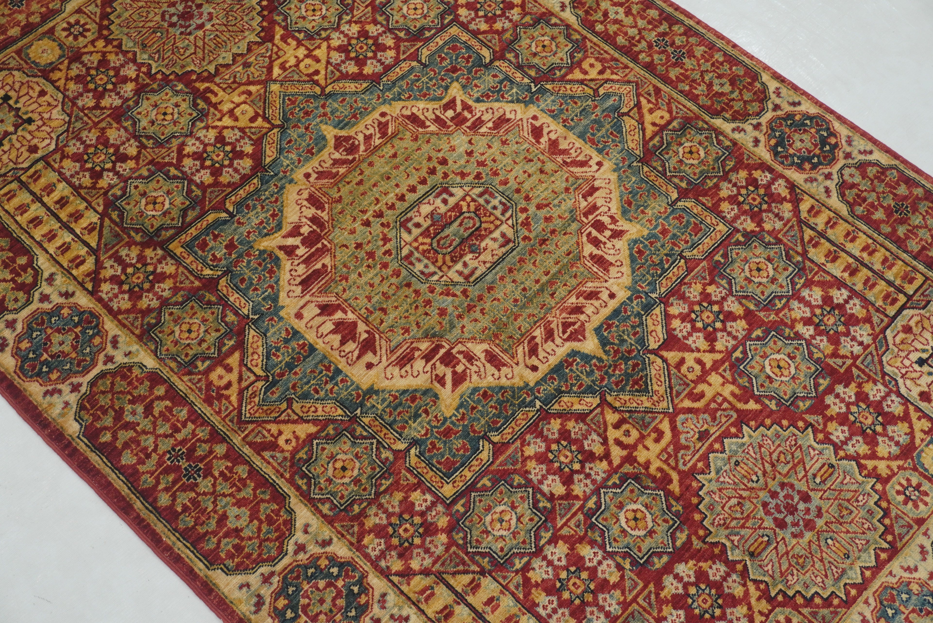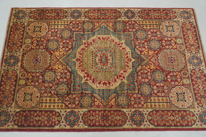 3x5 Red Mamluk Hand Knotted Rug Medallion Turkish Rug