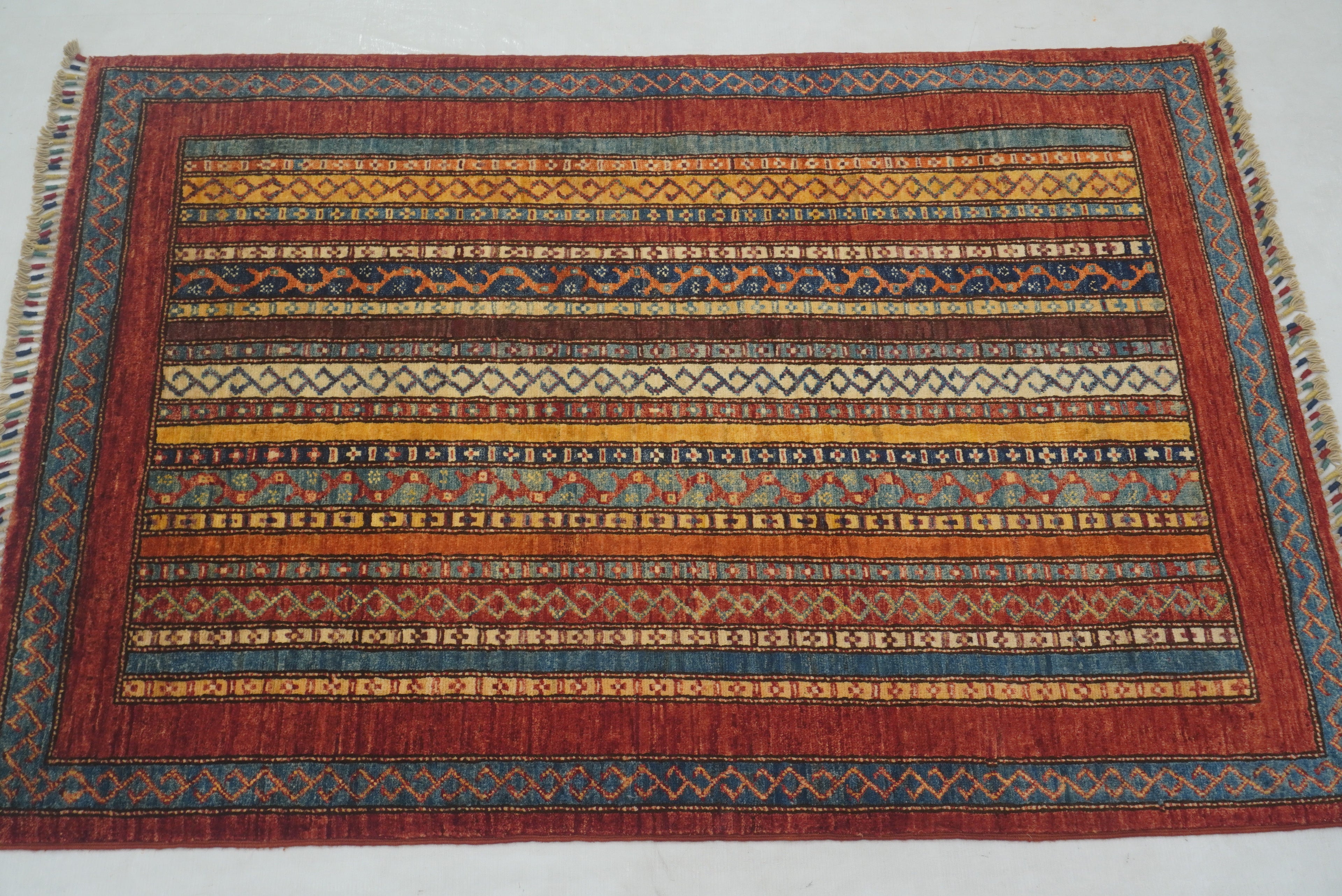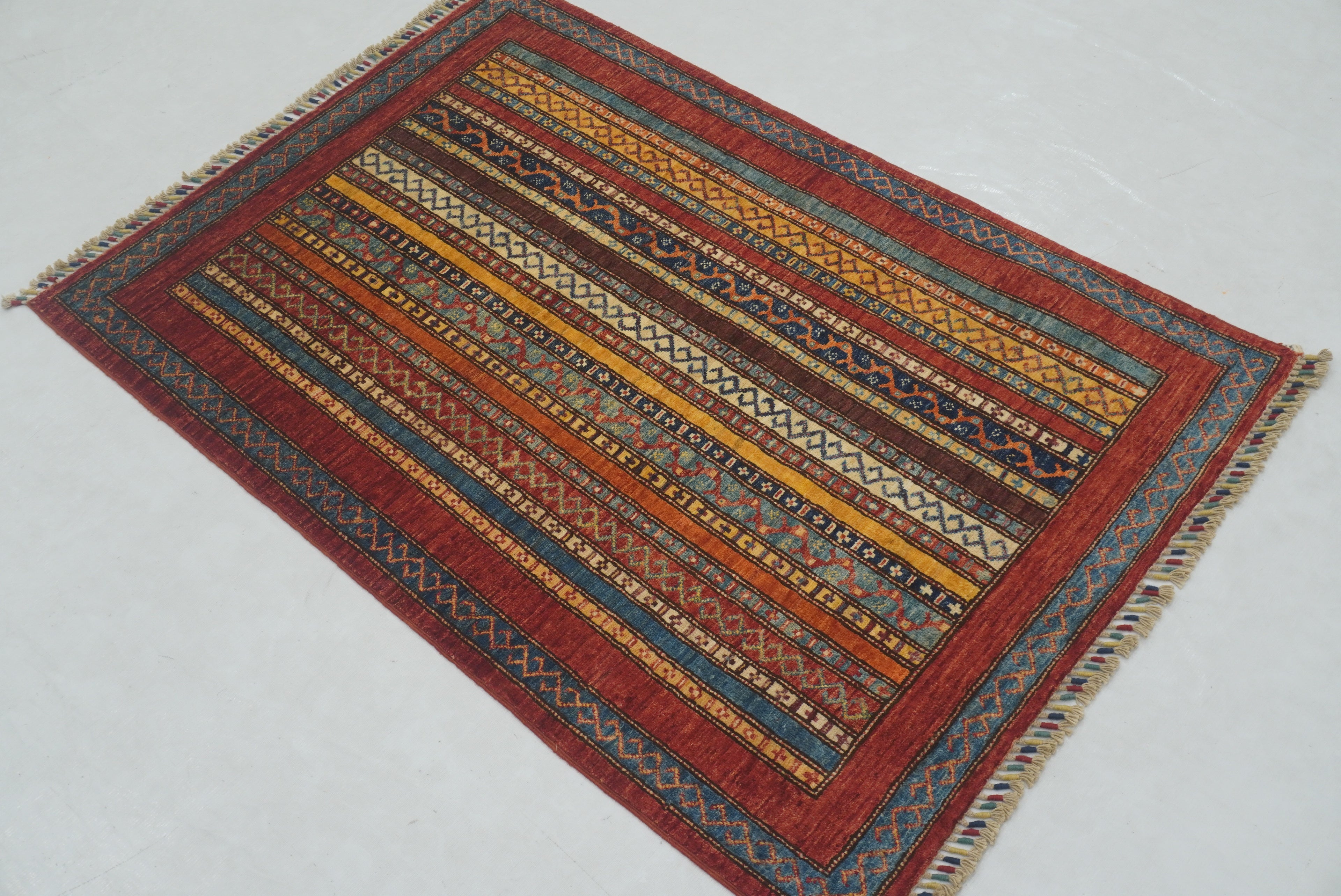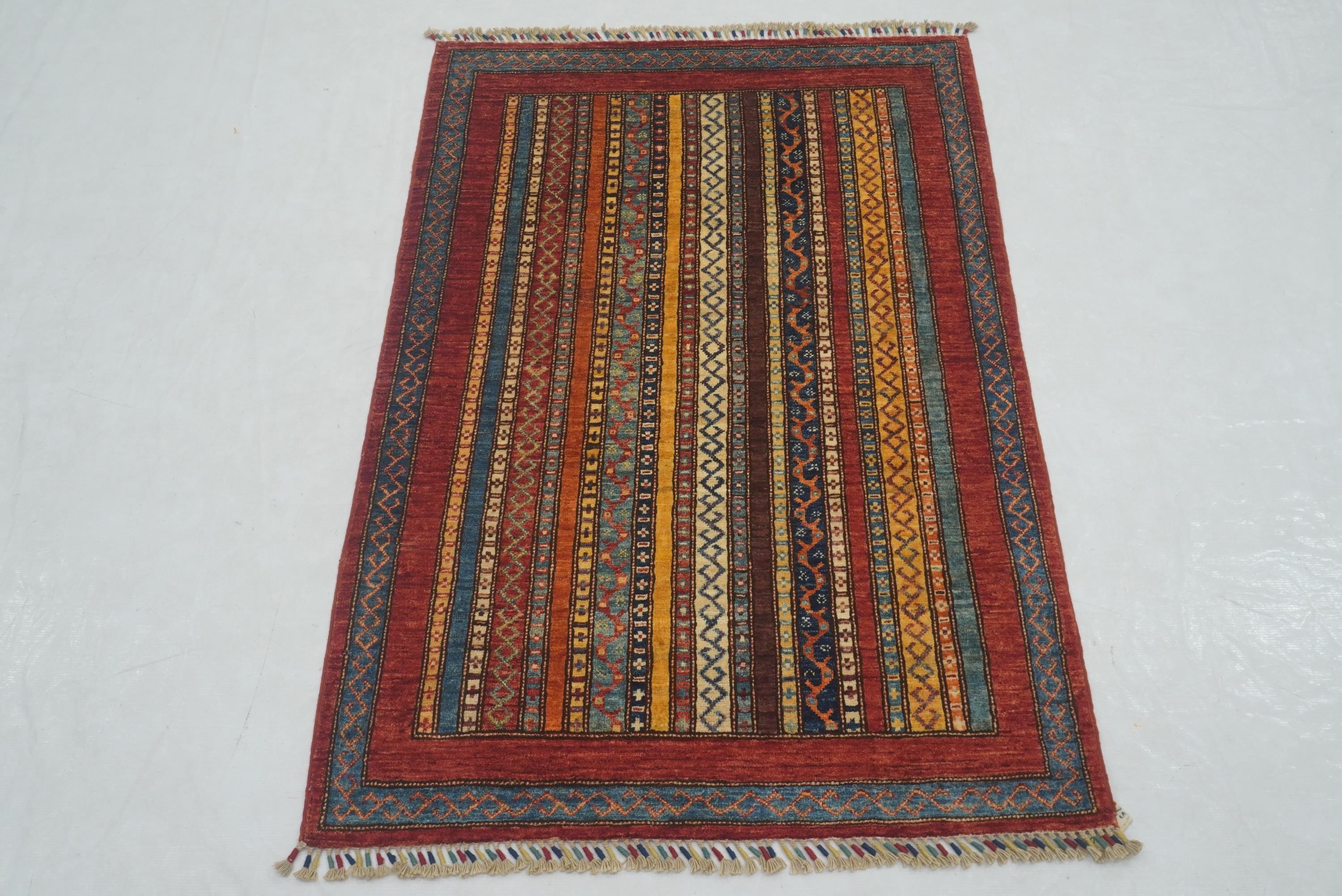 3x5 Red Turkish Shawl Pattern Hand Knotted Oriental Rug