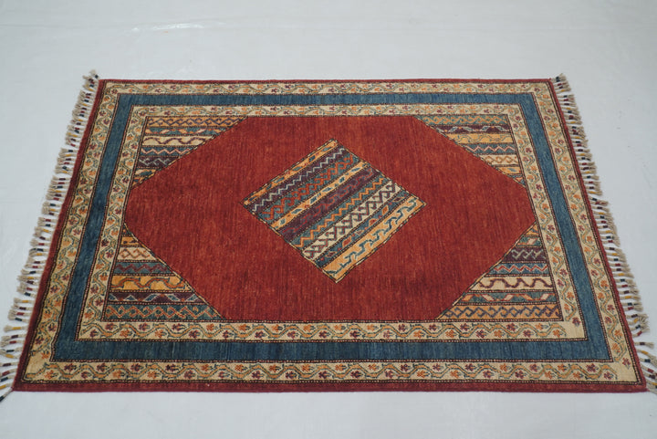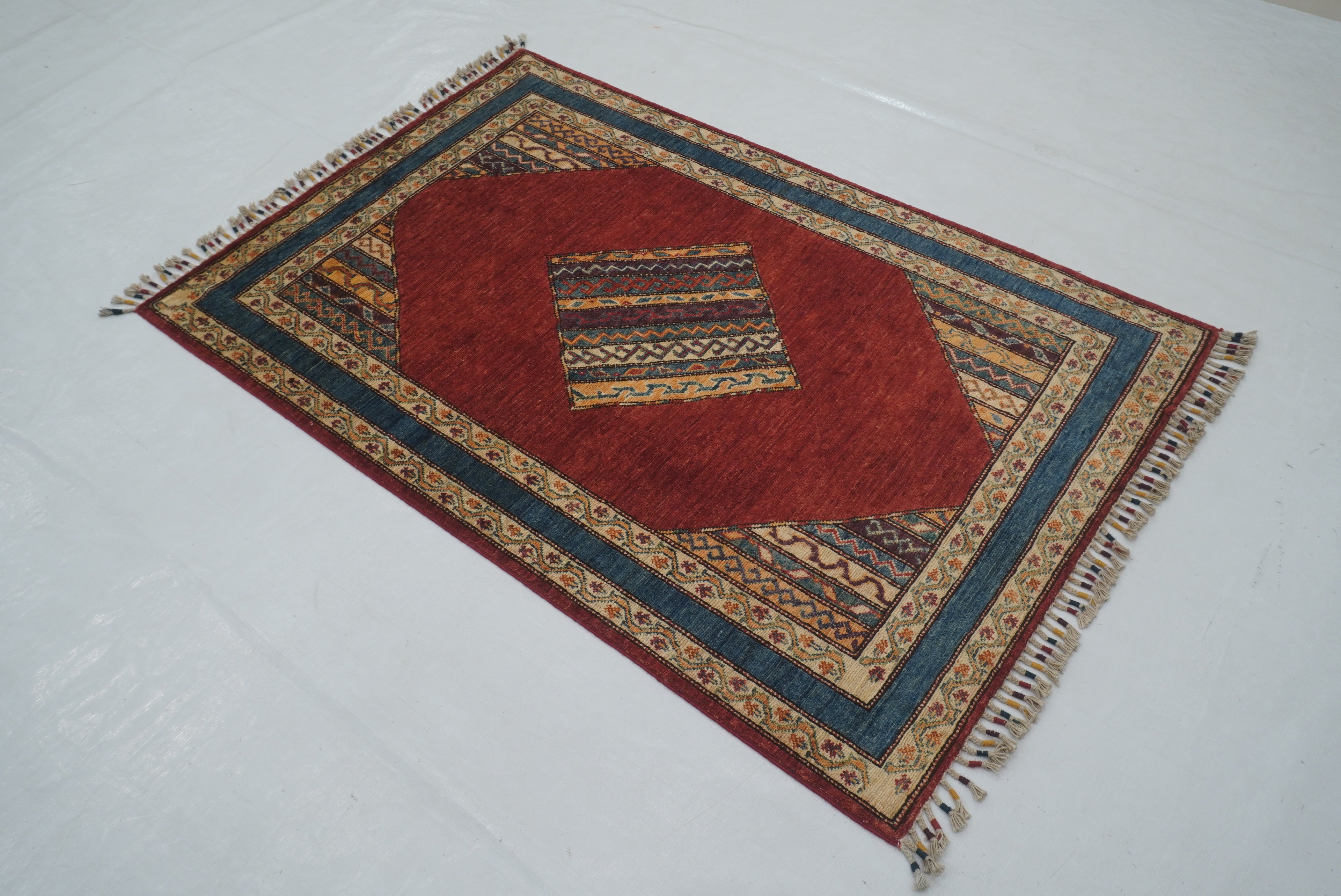 3x5 Red Turkish Shawl Pattern Hand Knotted Rug